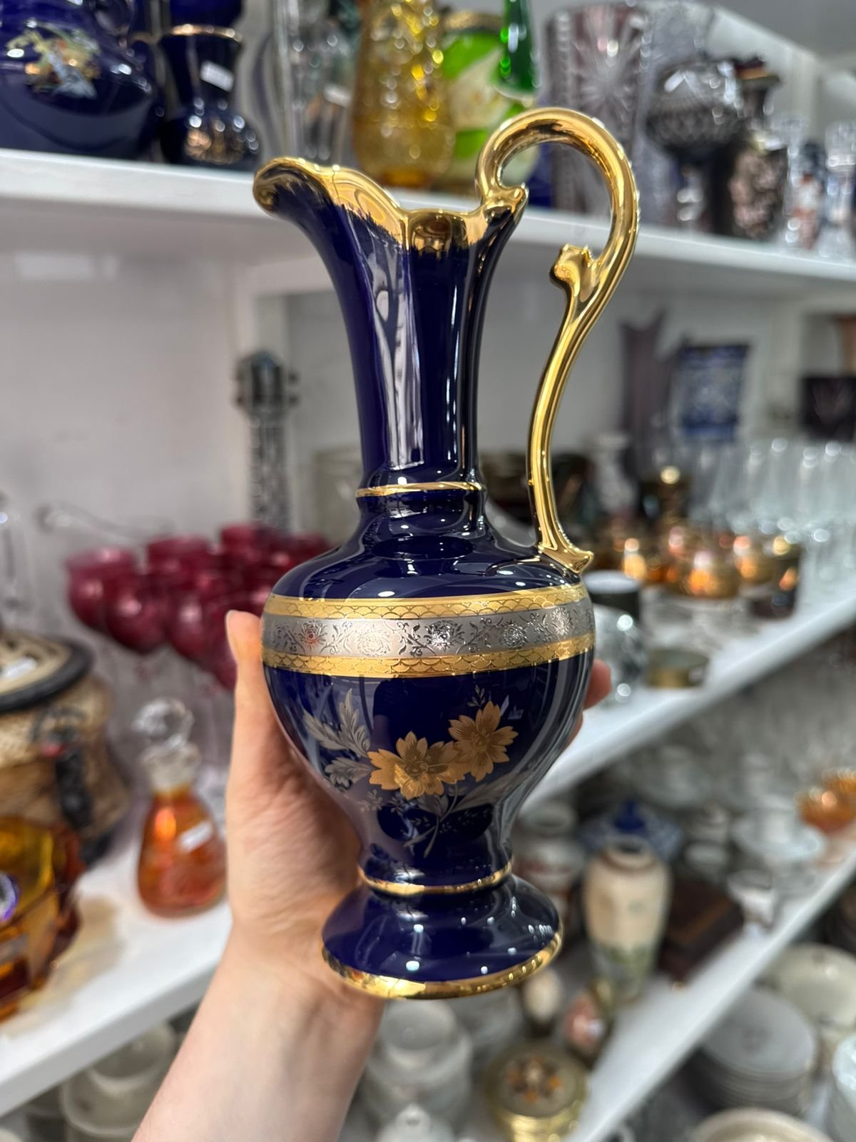 Anfora azul cobalto con oro