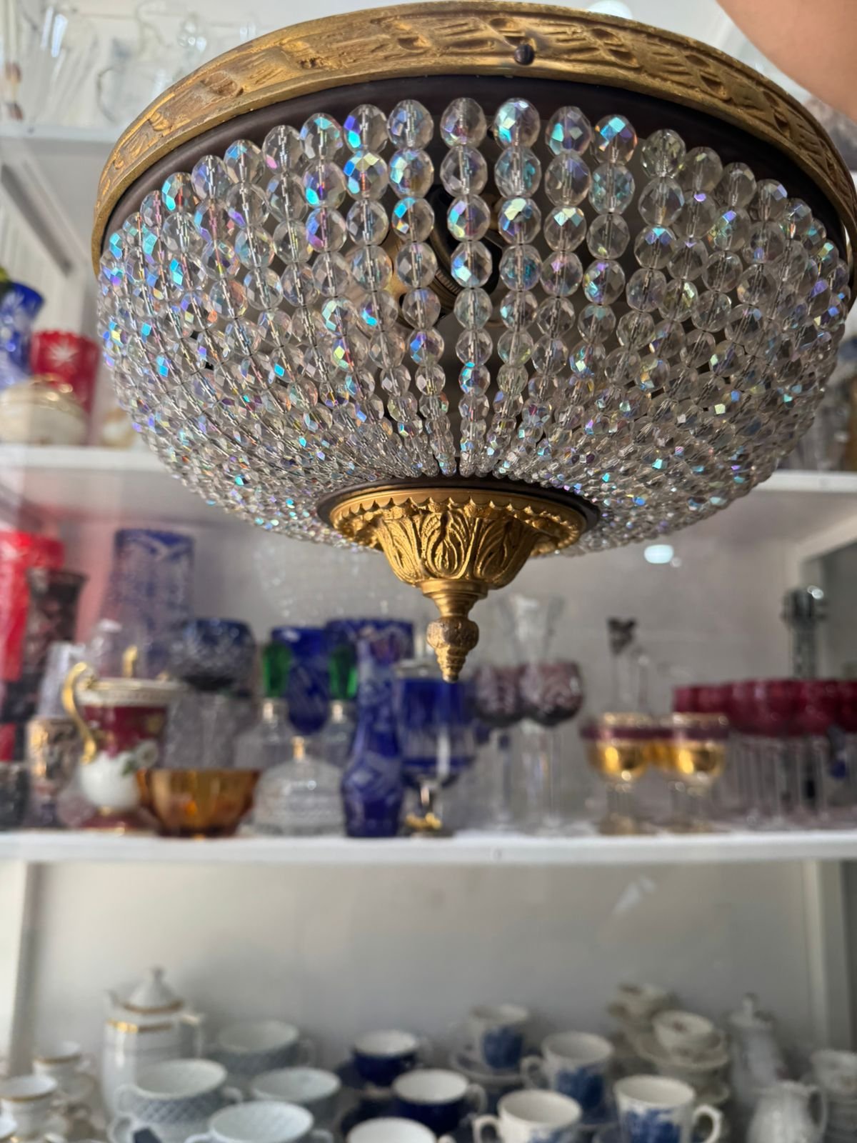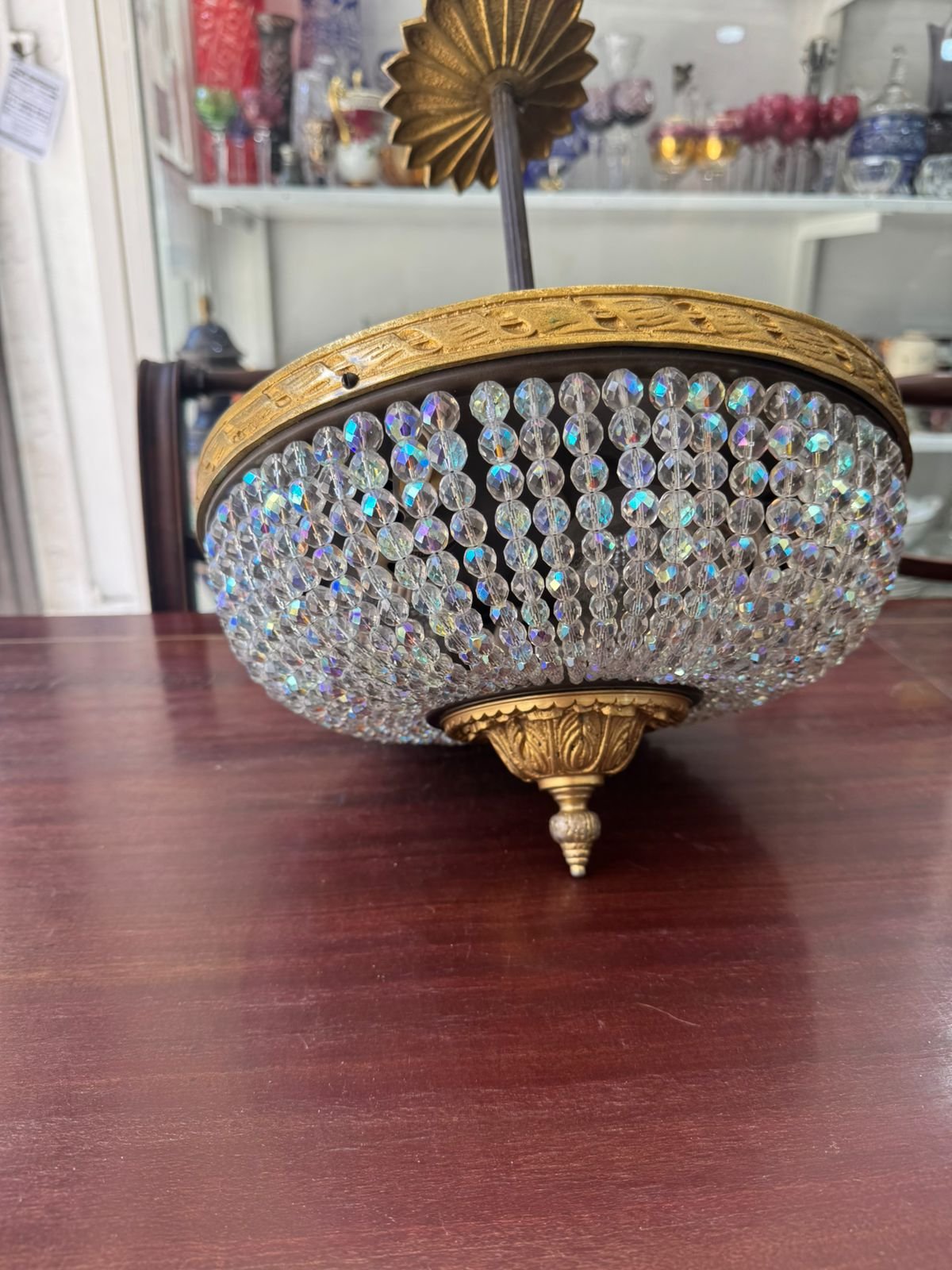Araña de techo cristal de roca con bronce
