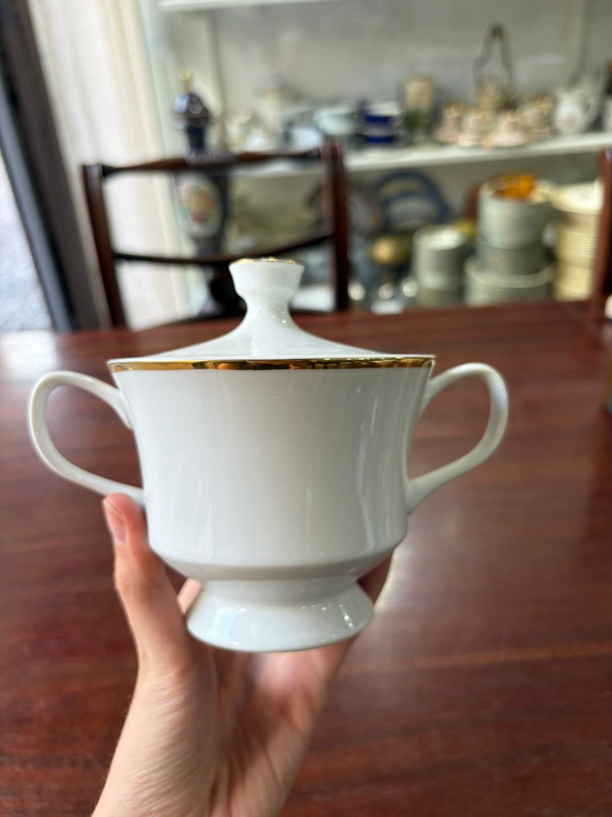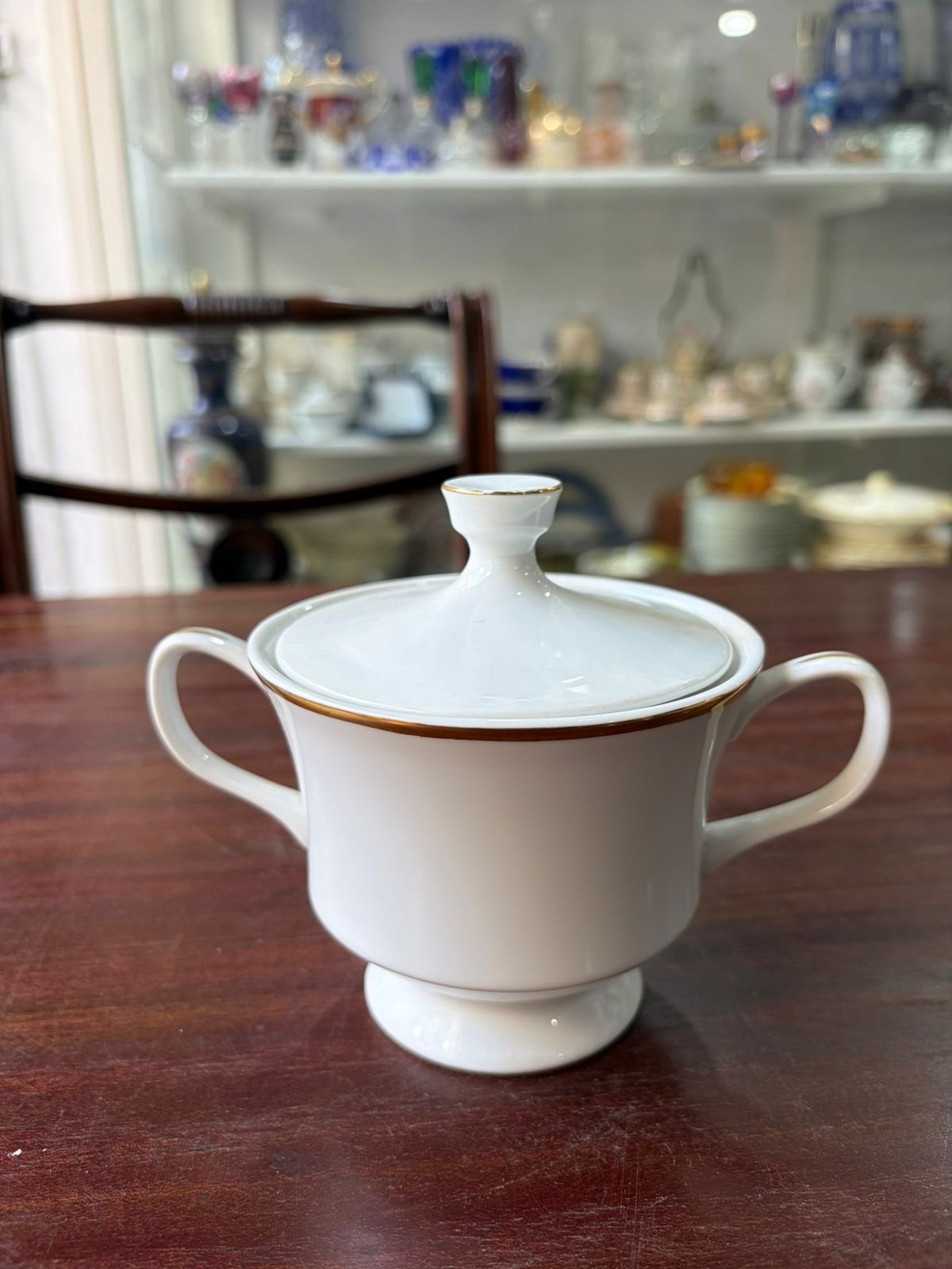 Azucarera porcelana con guarda en oro