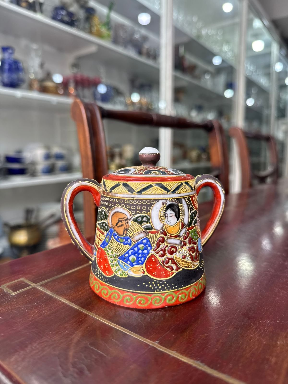 Azucarera porcelana oriental satsuma pintado a mano con oro