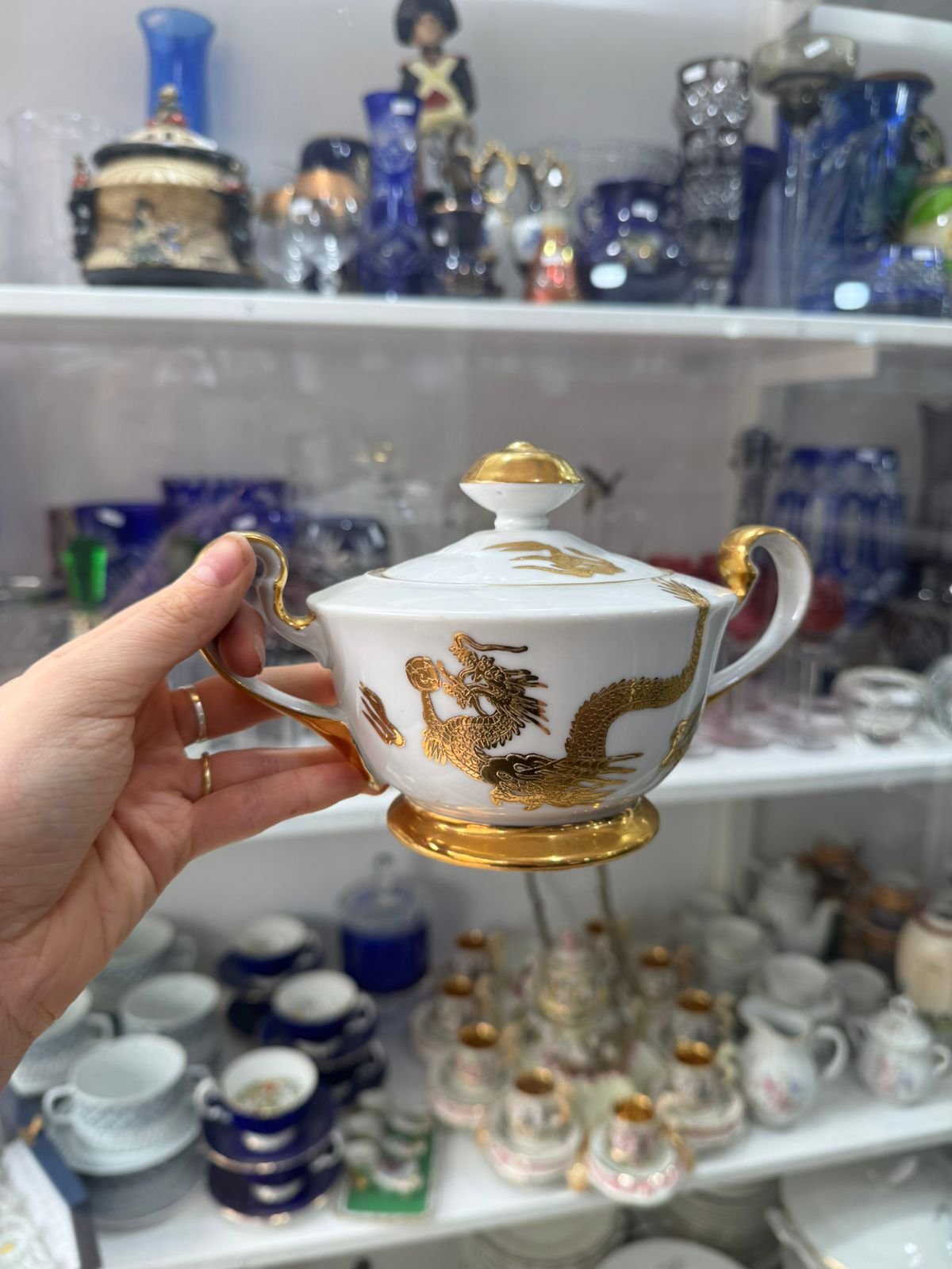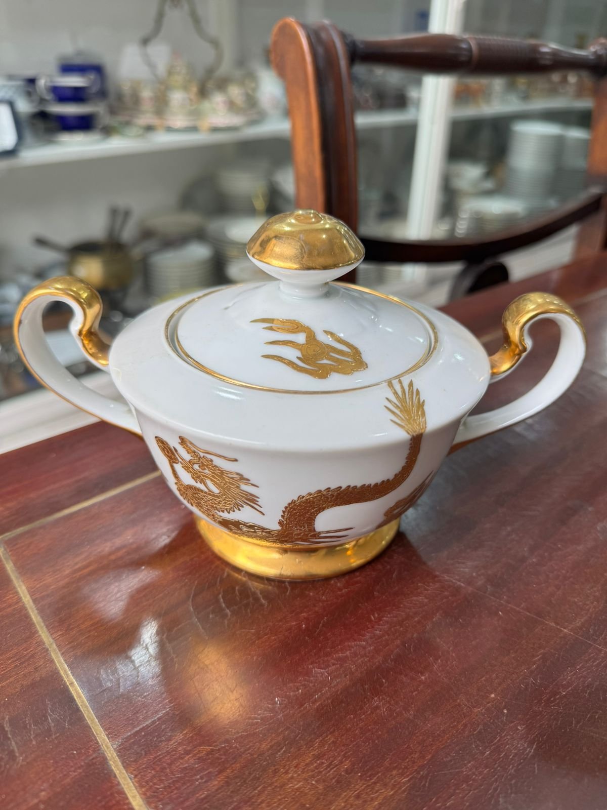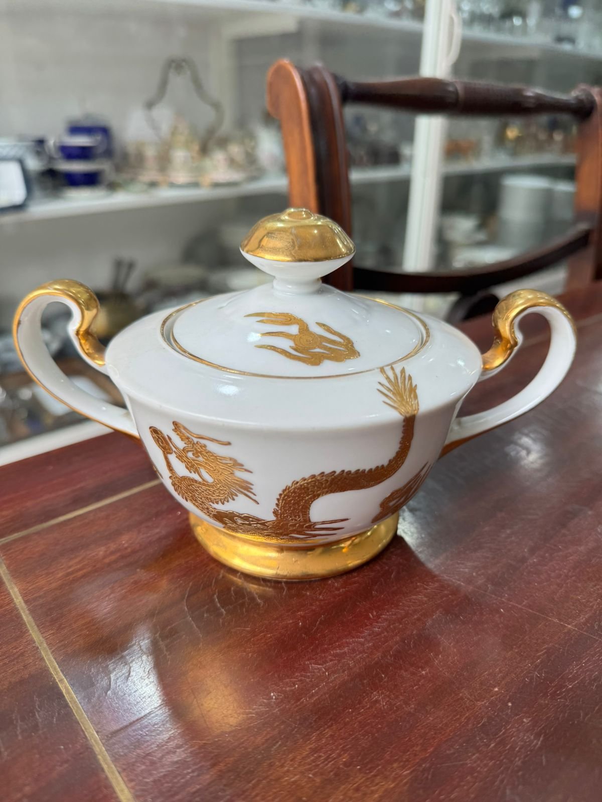 Azucarera porcelana tsuji pintada a mano con oro