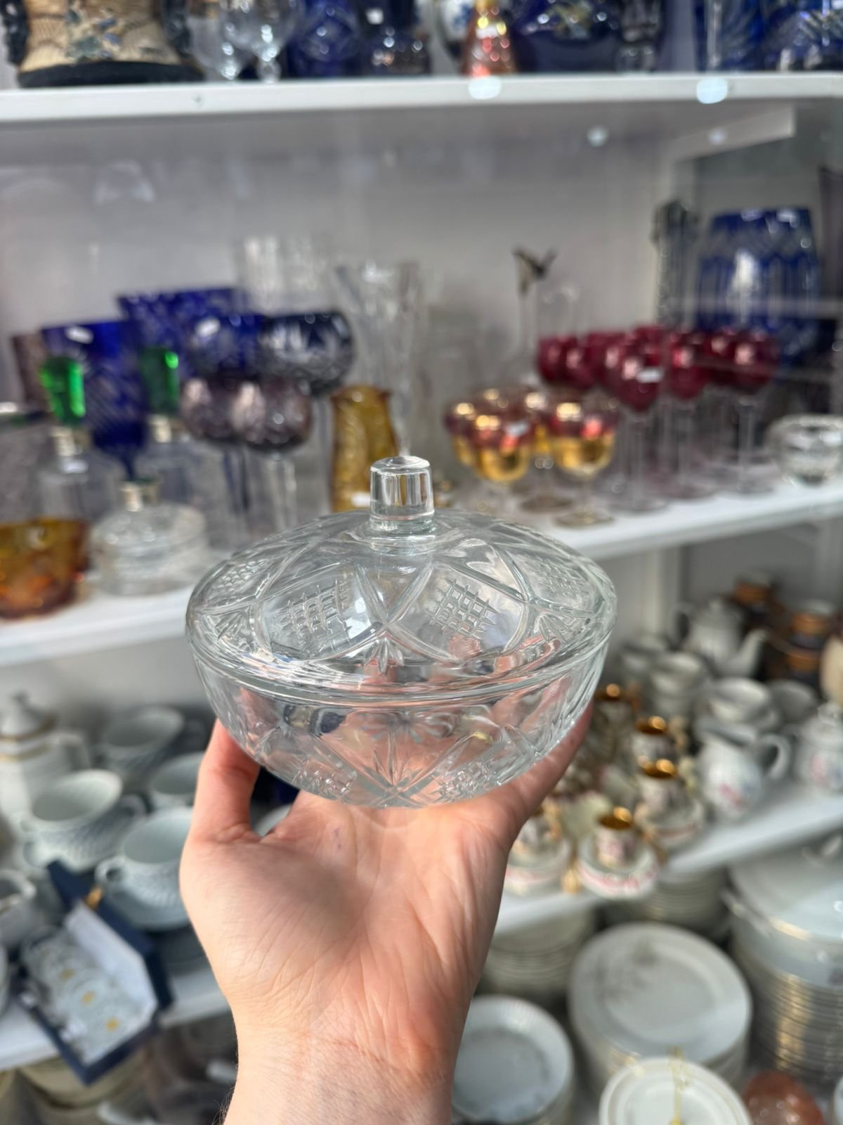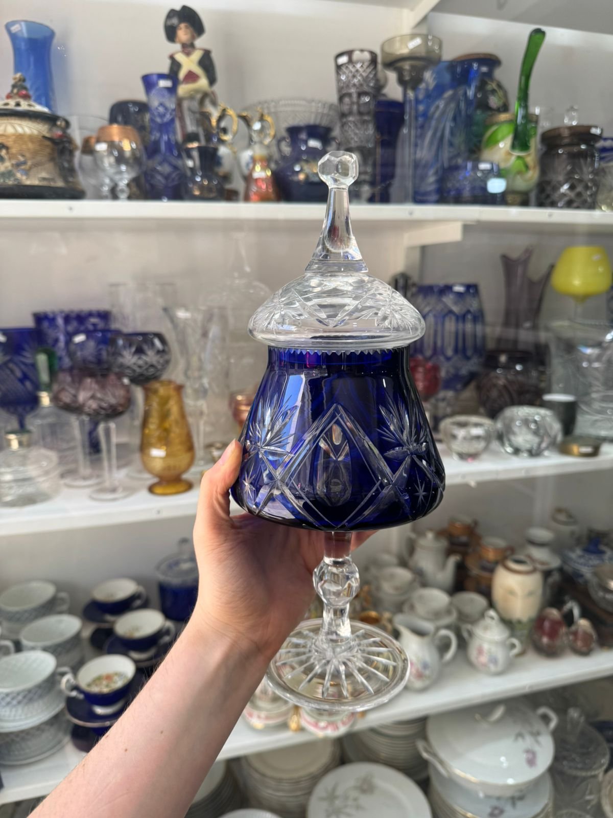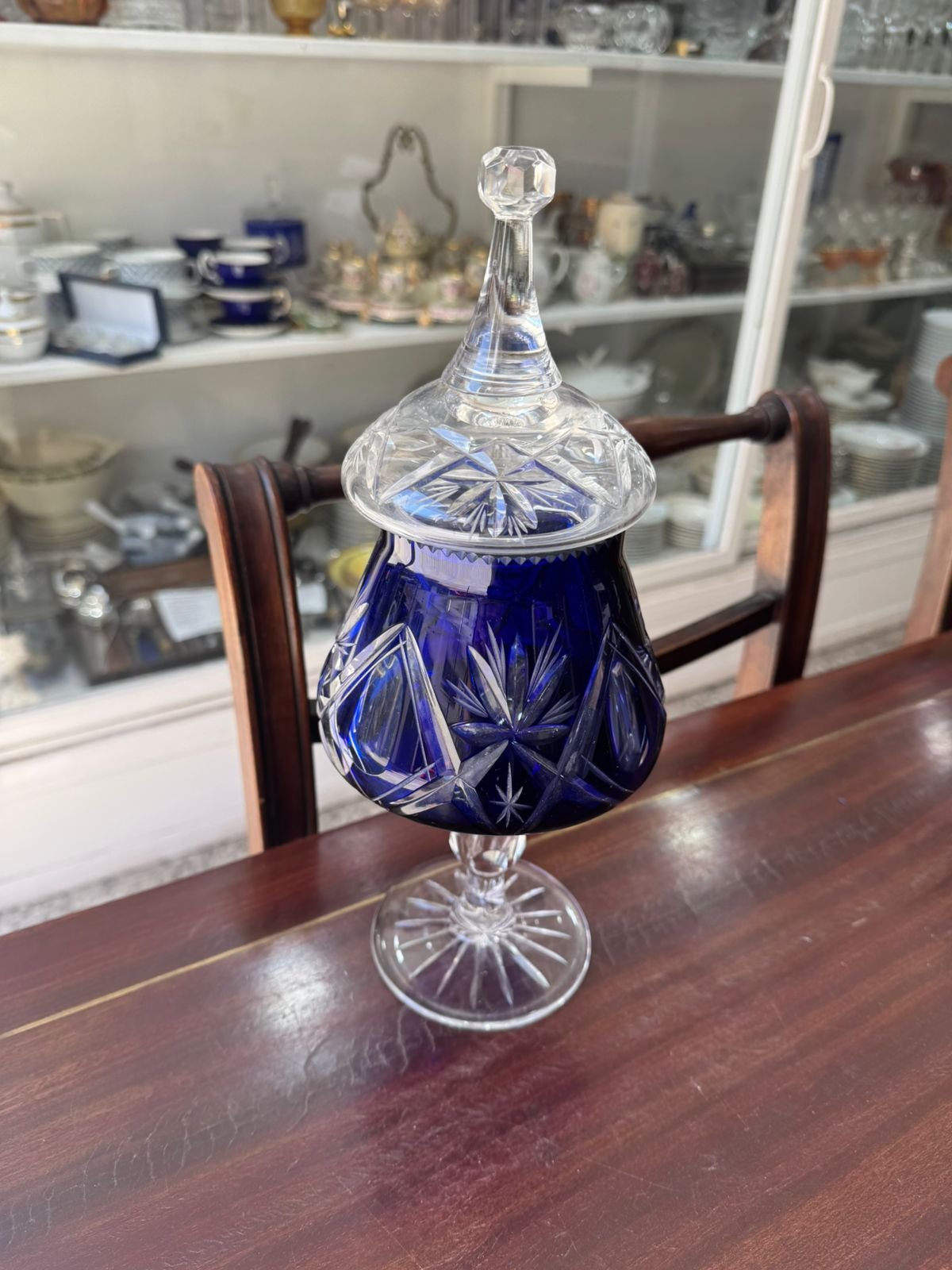 Bombonera o caramelera de cristal súper tallado azul