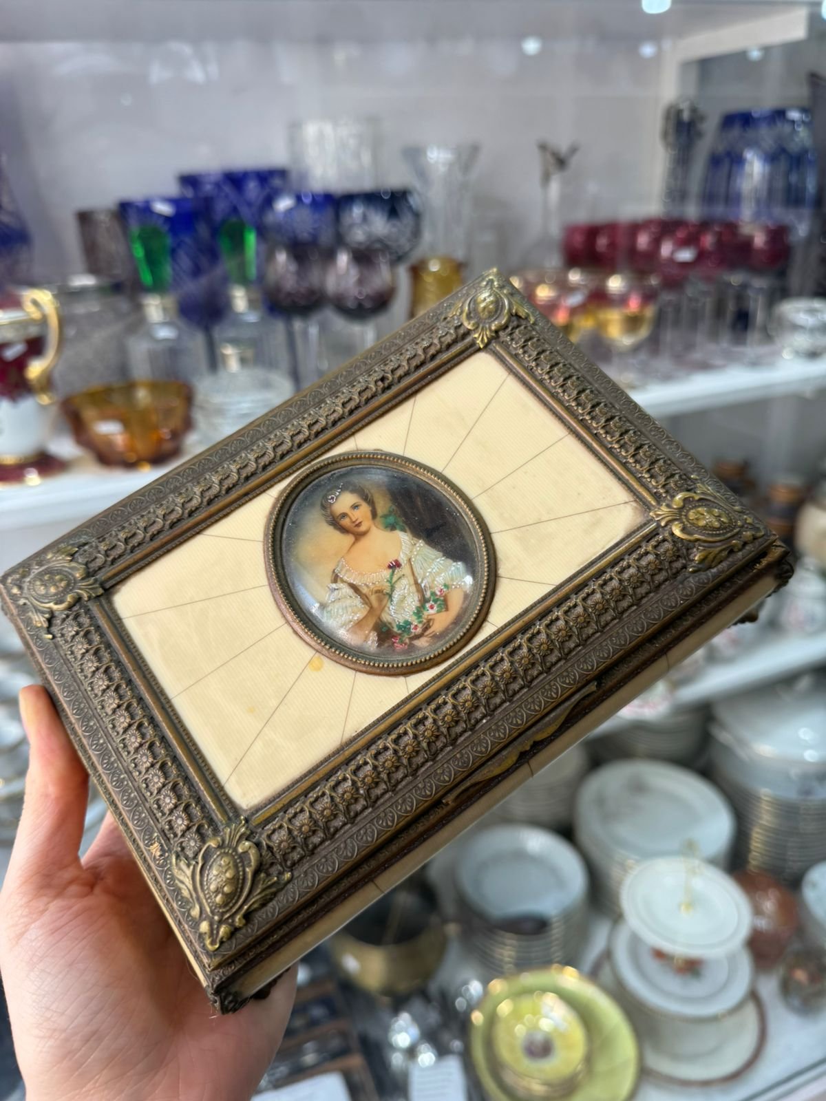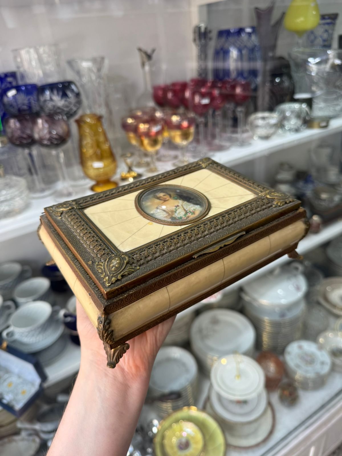 Caja musical nacar con bronce