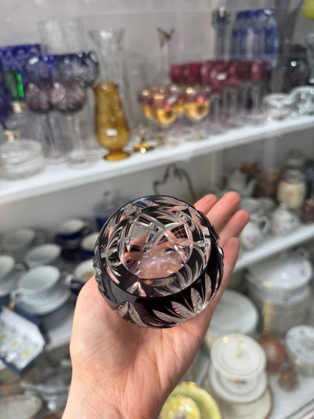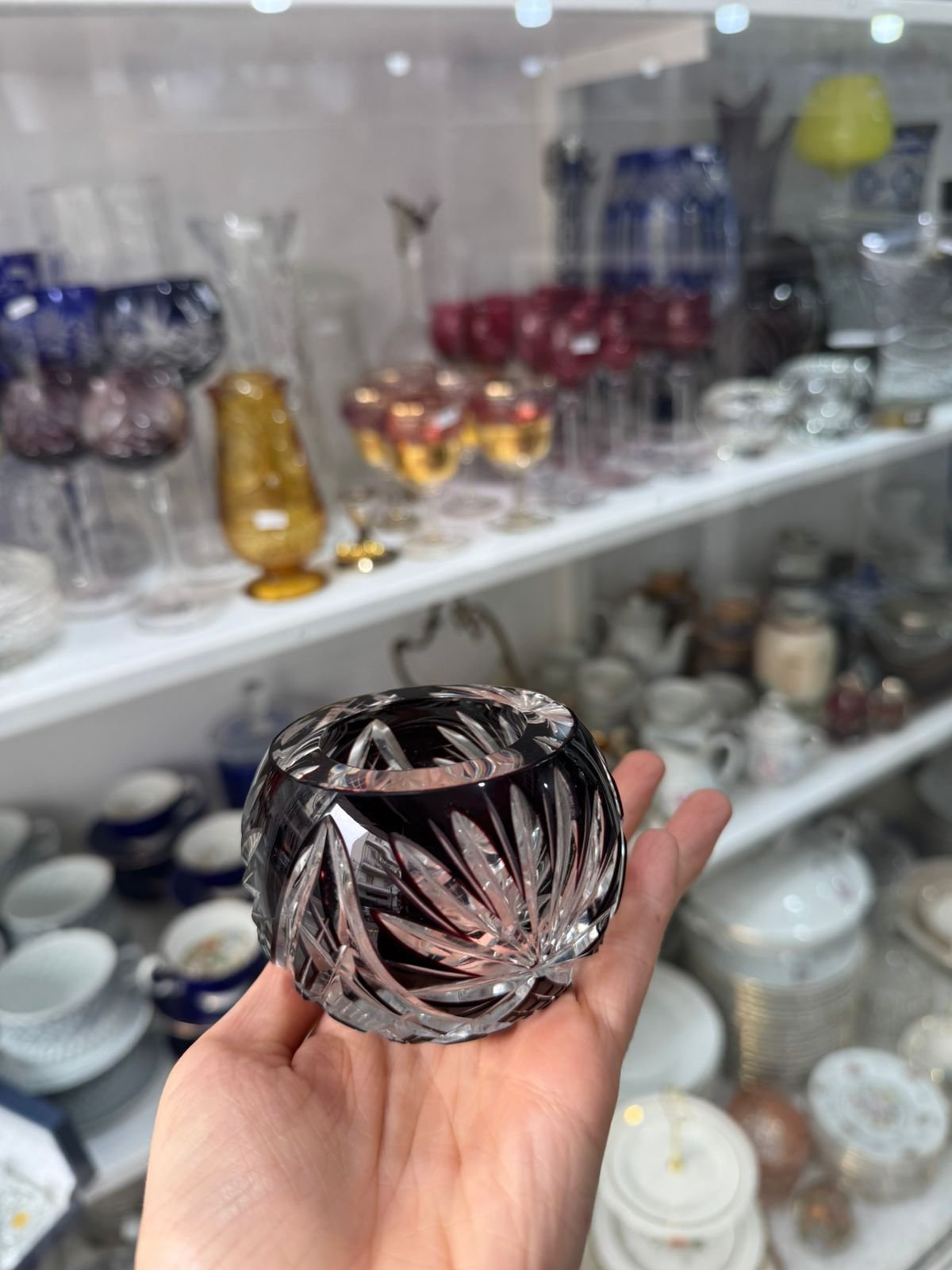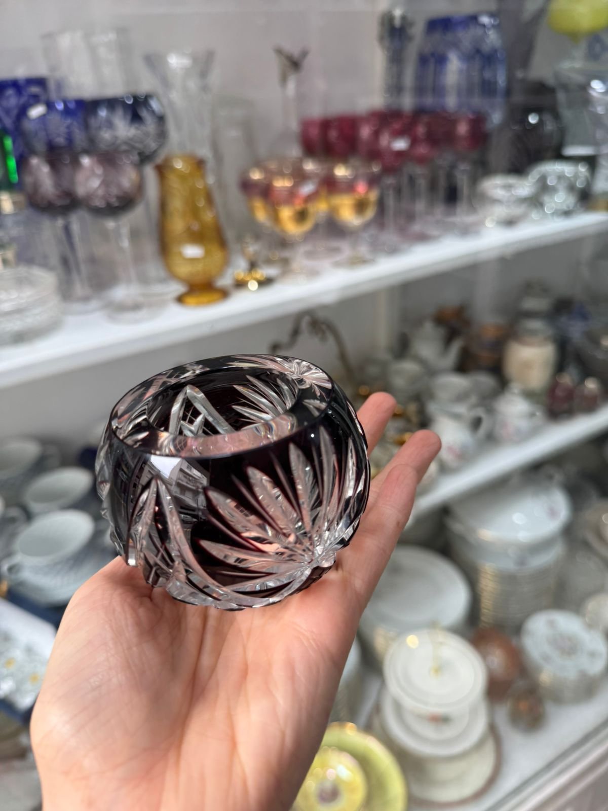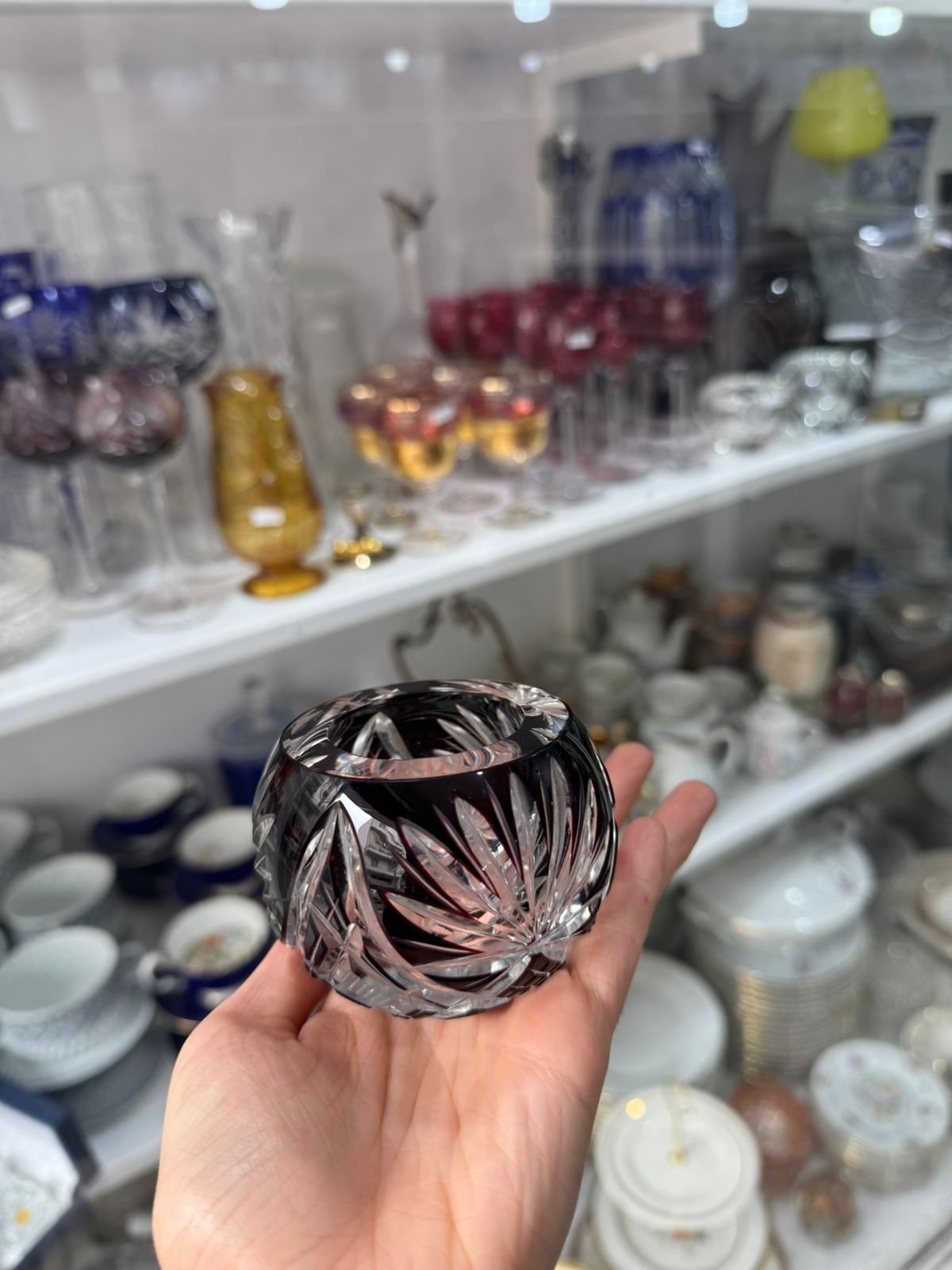Candelabro / violetero de cristal súper tallado rubi
