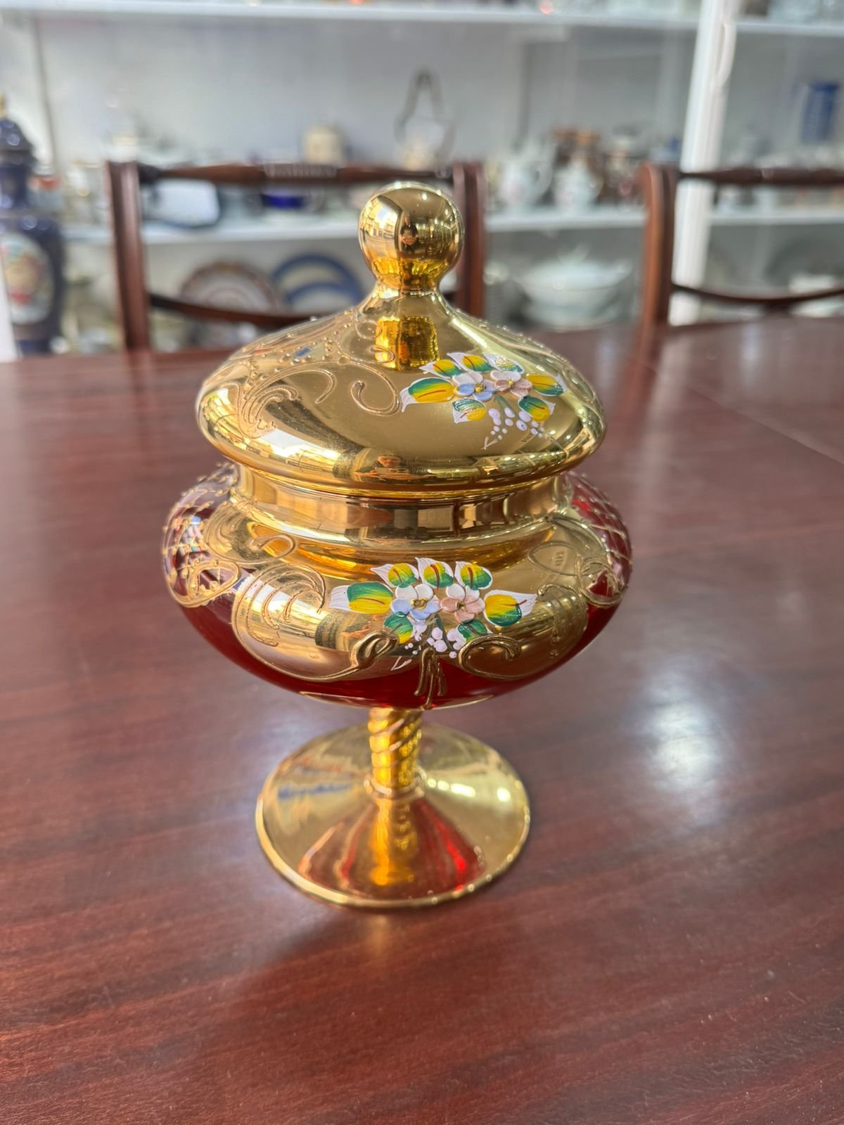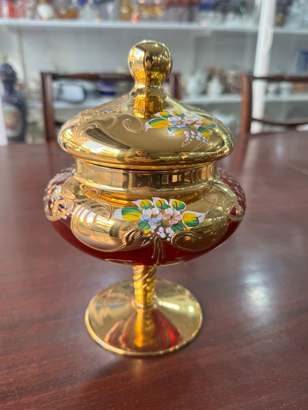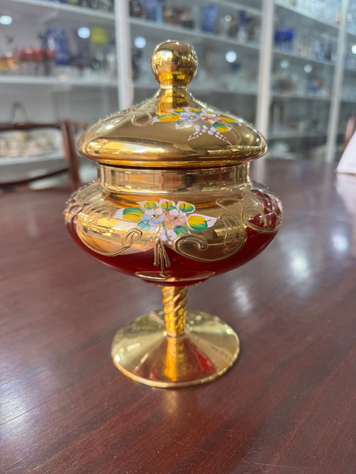 Caramelera de cristal de murano veneciano pintado a mano con oro