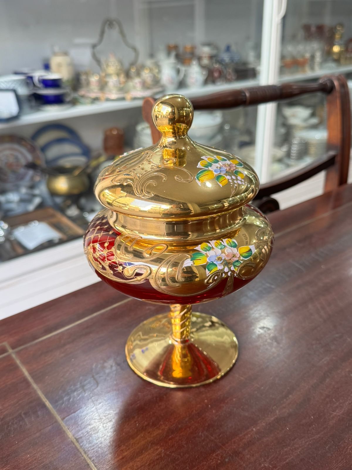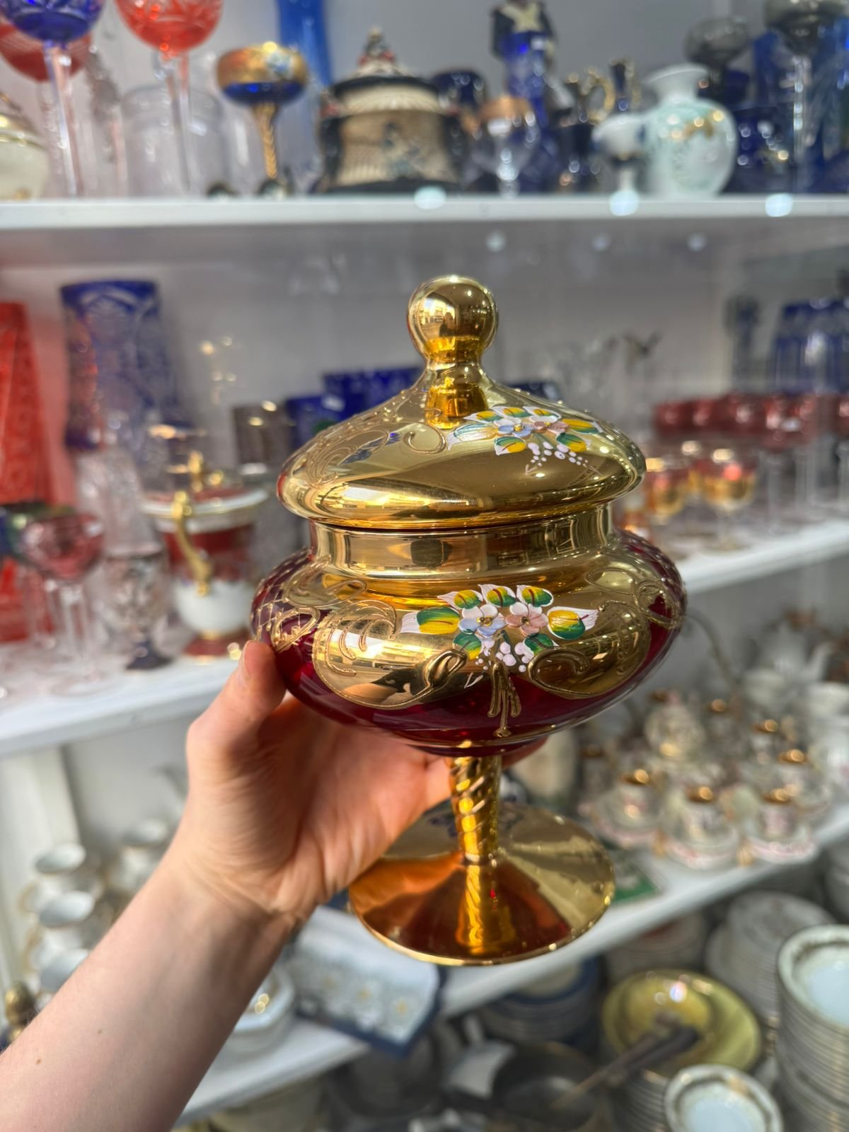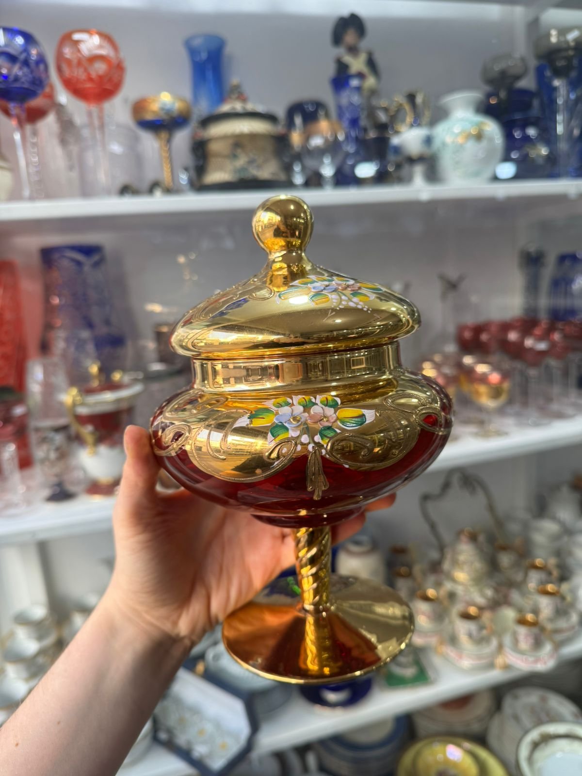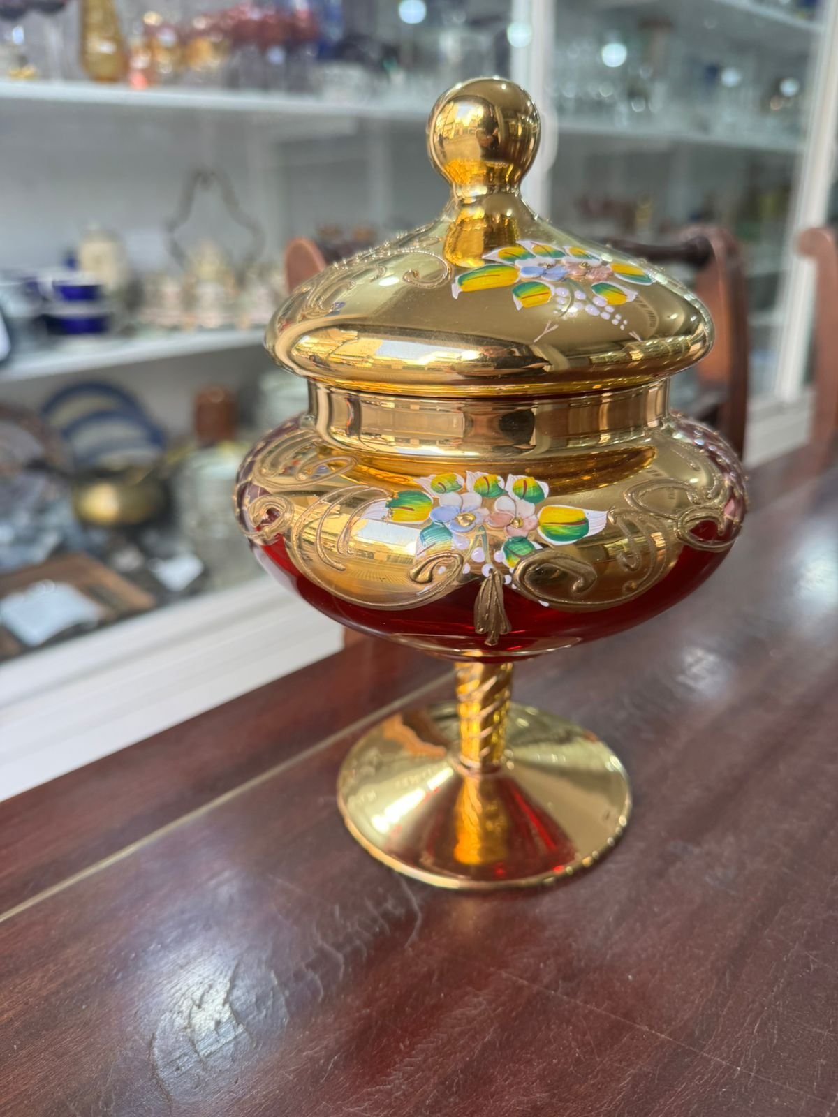 Caramelera de cristal de murano veneciano pintado a mano con oro