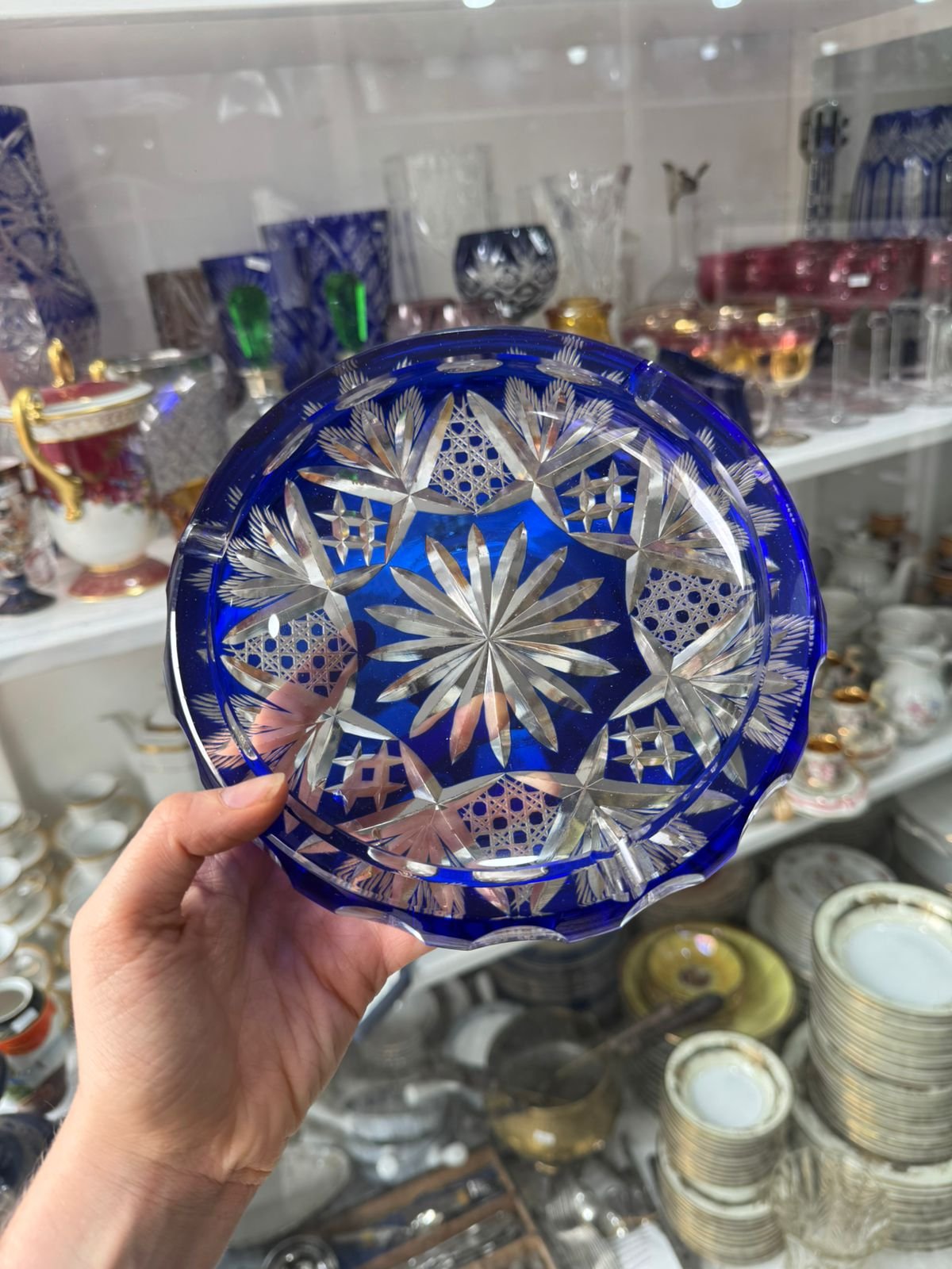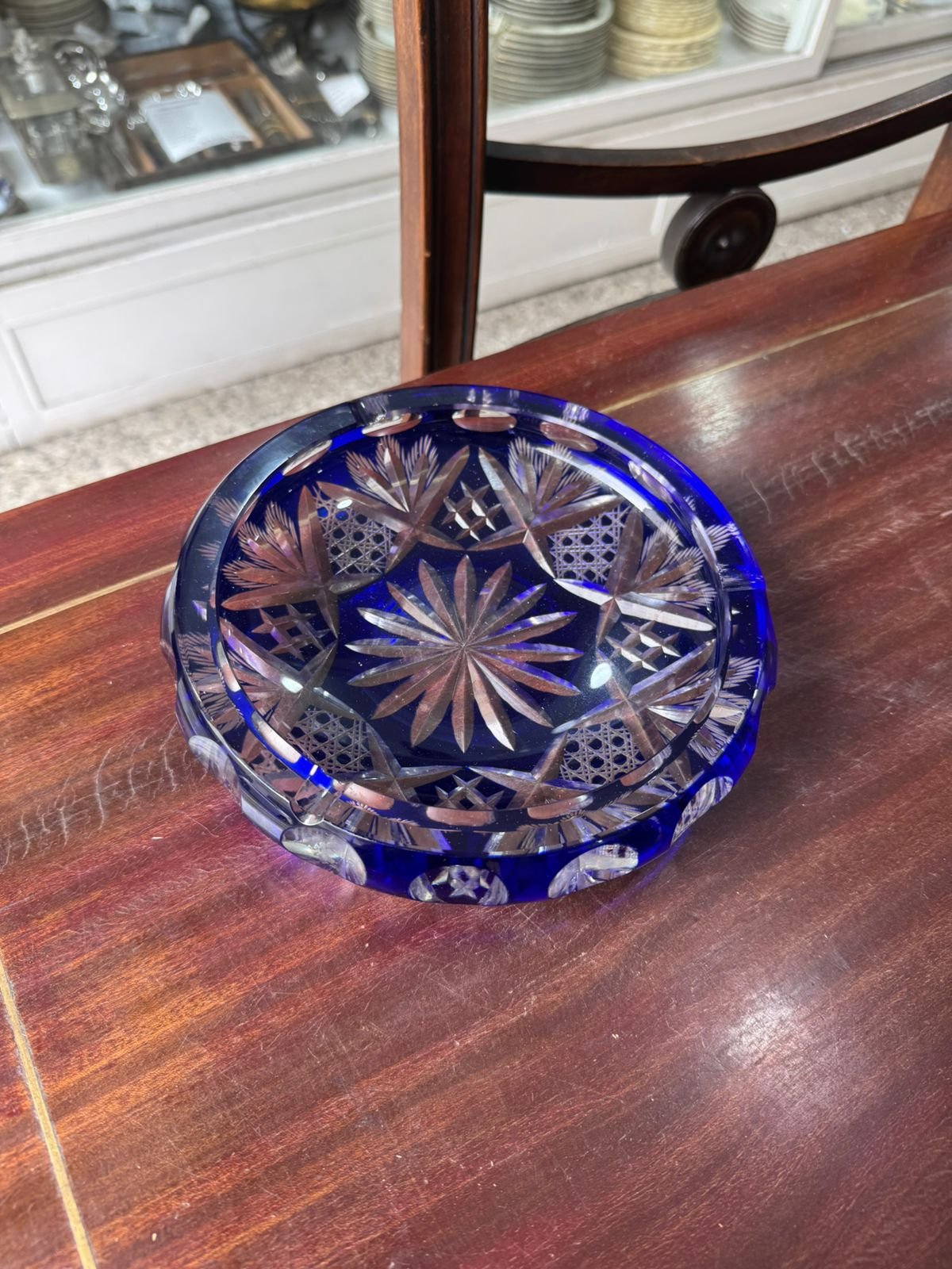 Cenicero de cristal súper tallado azul