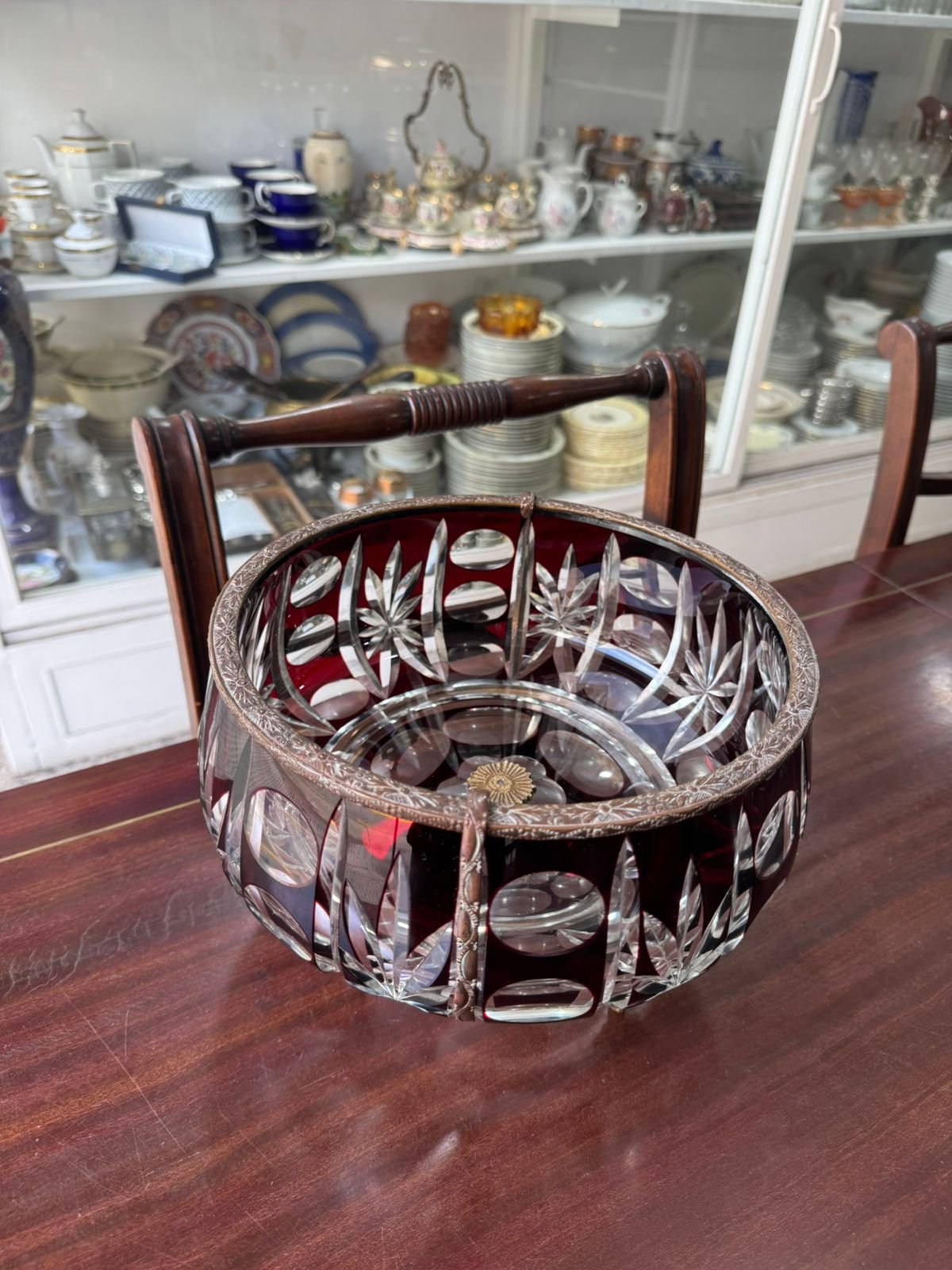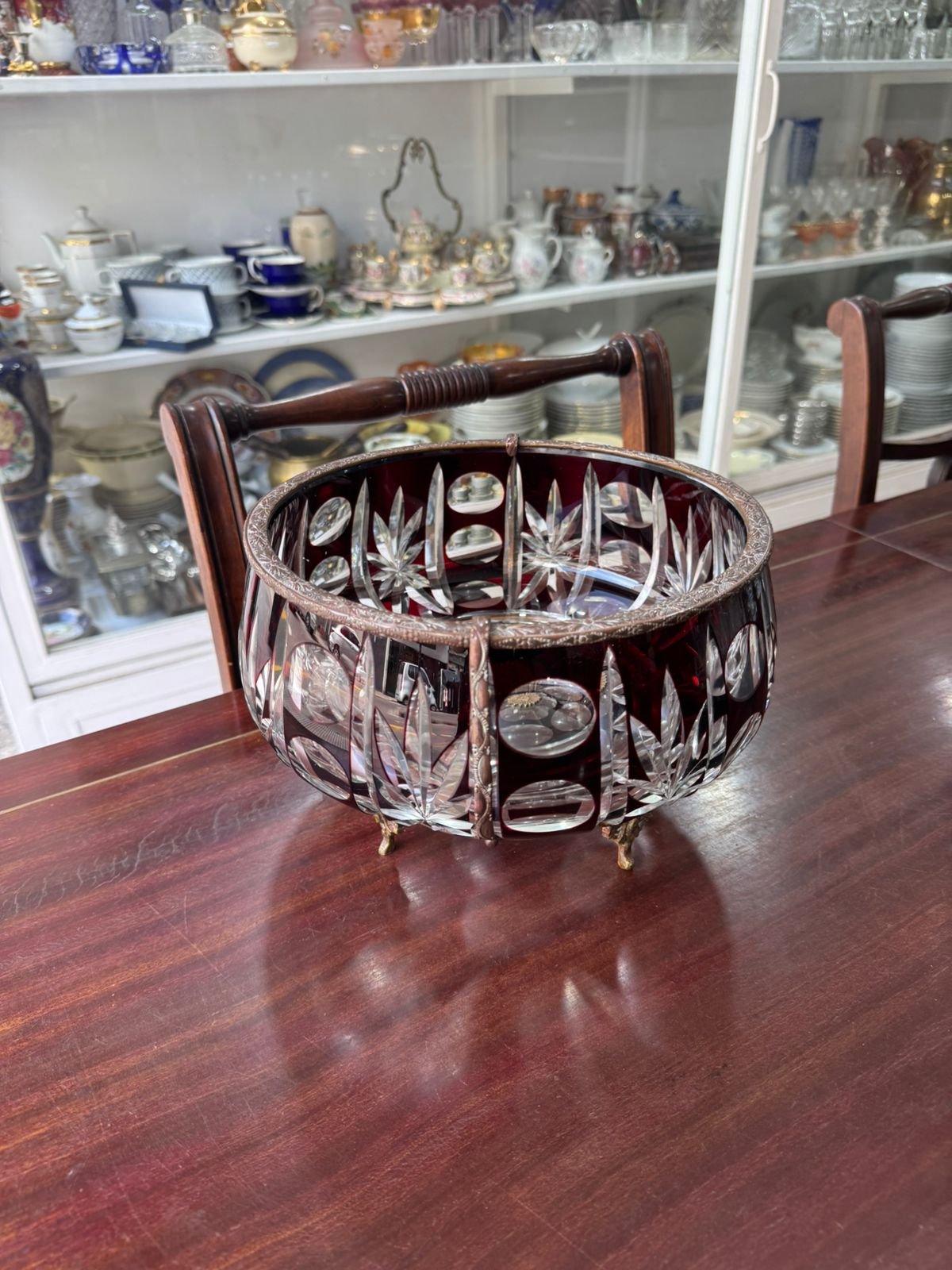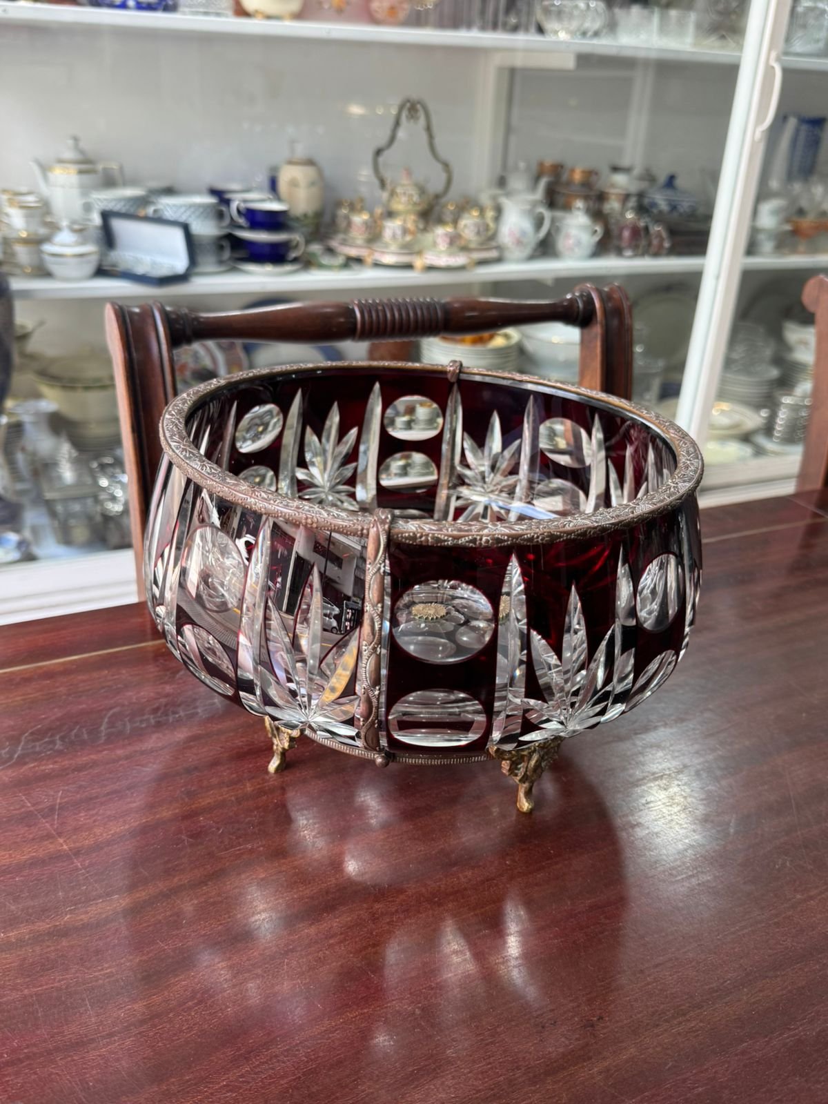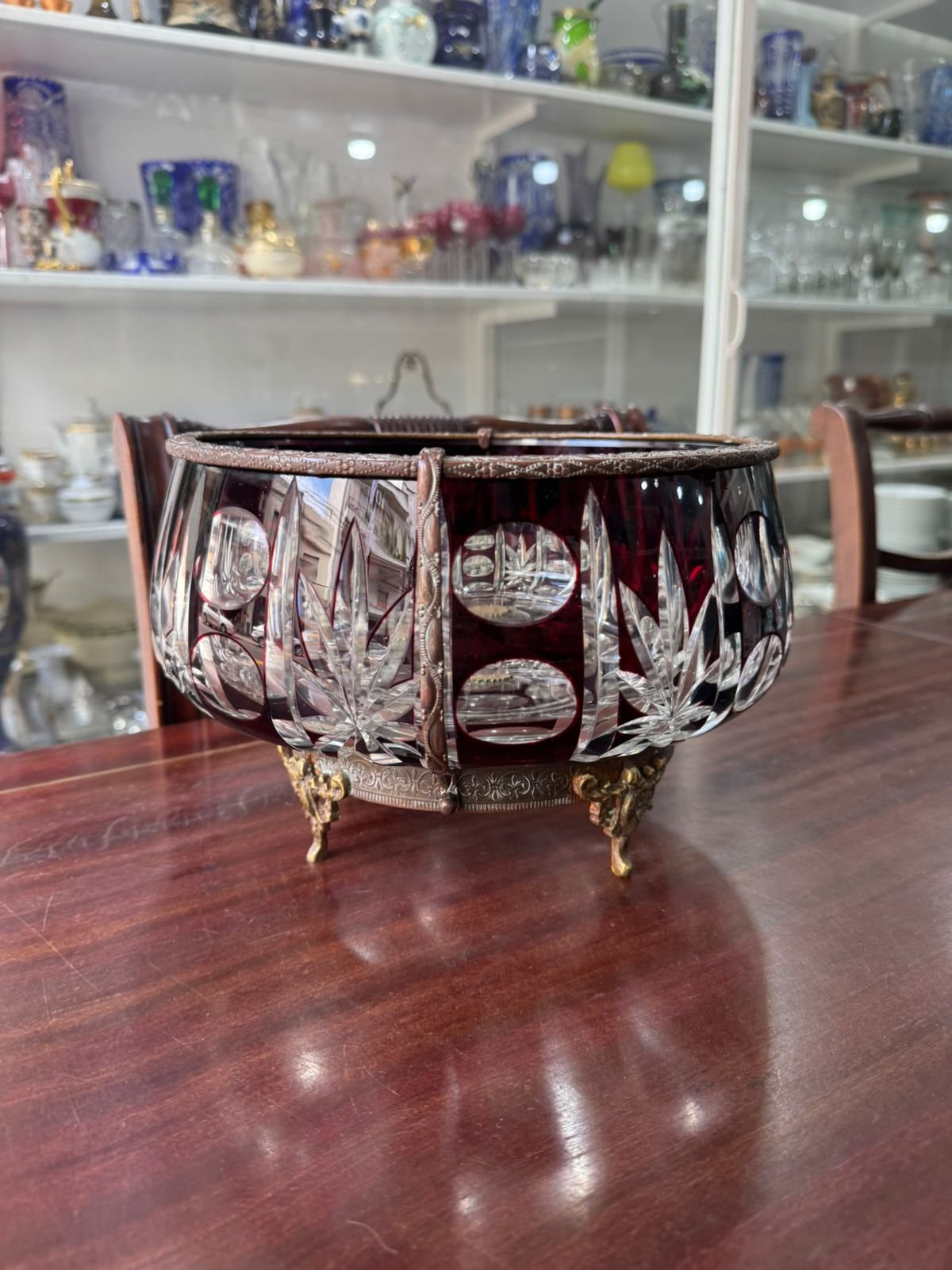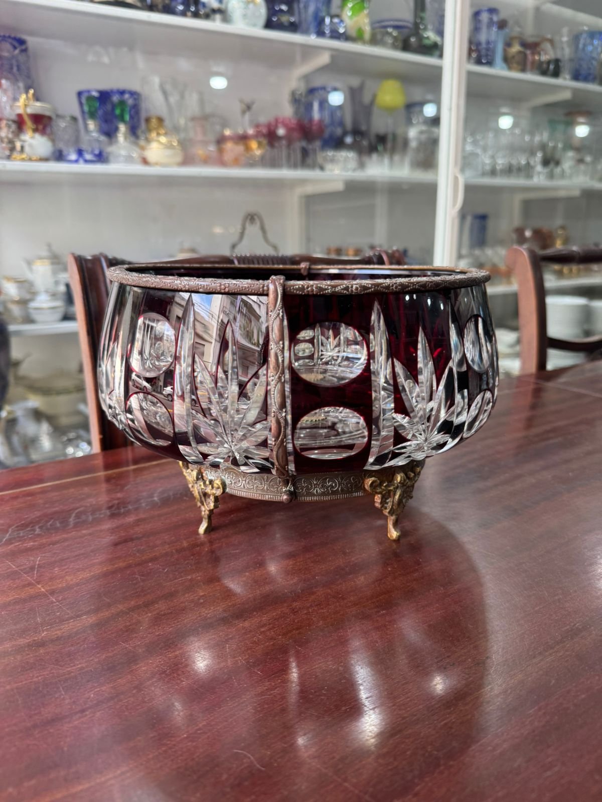 Cenicero de cristal súper tallado rubi con monturas de bronce