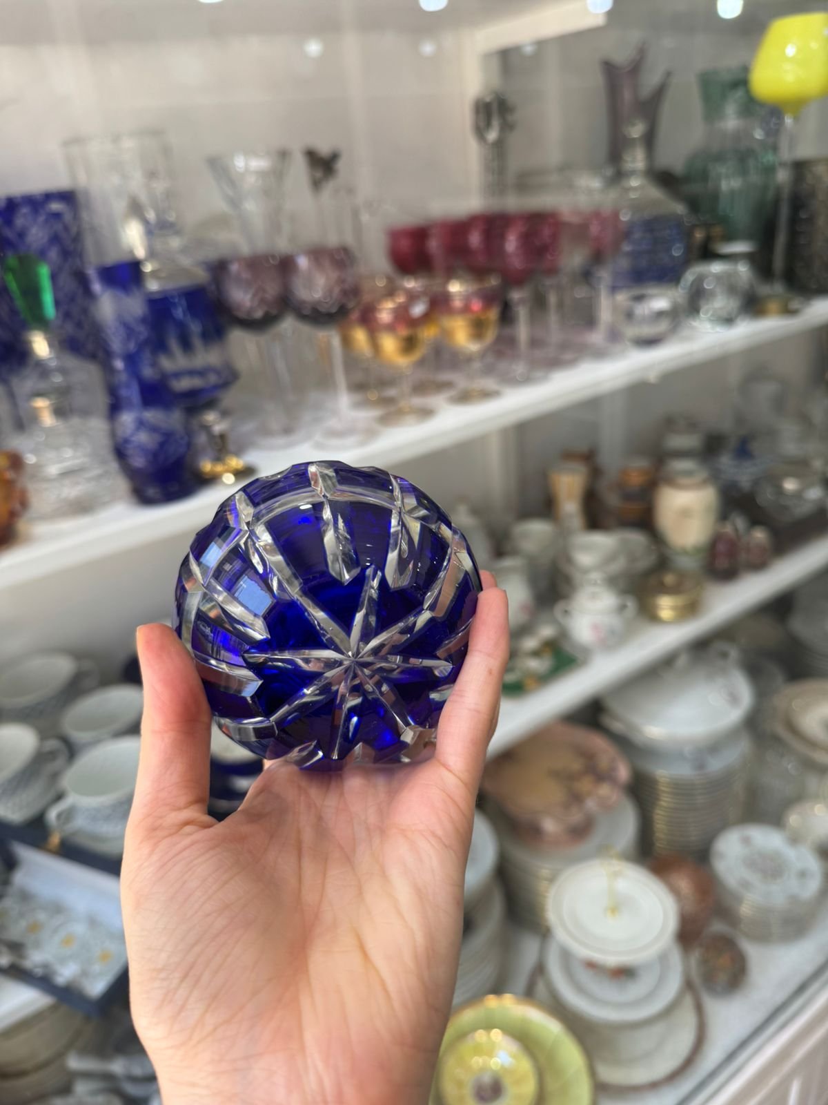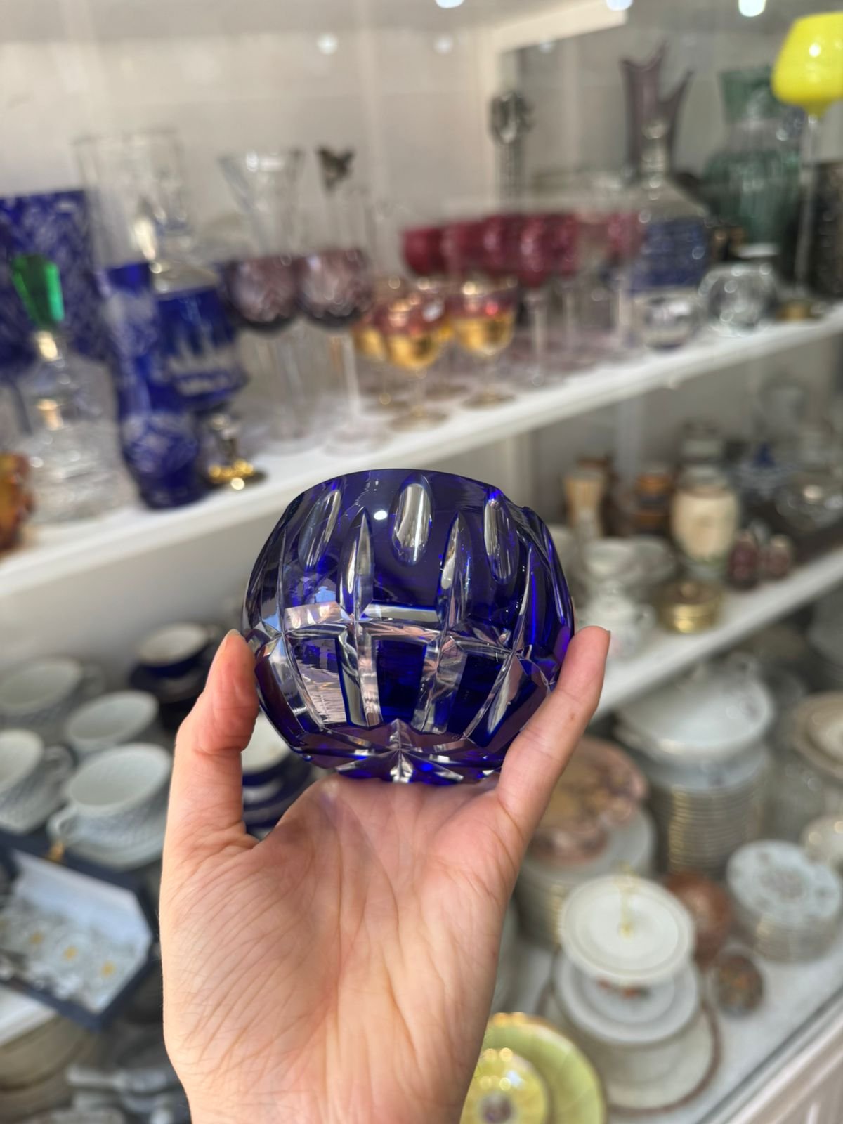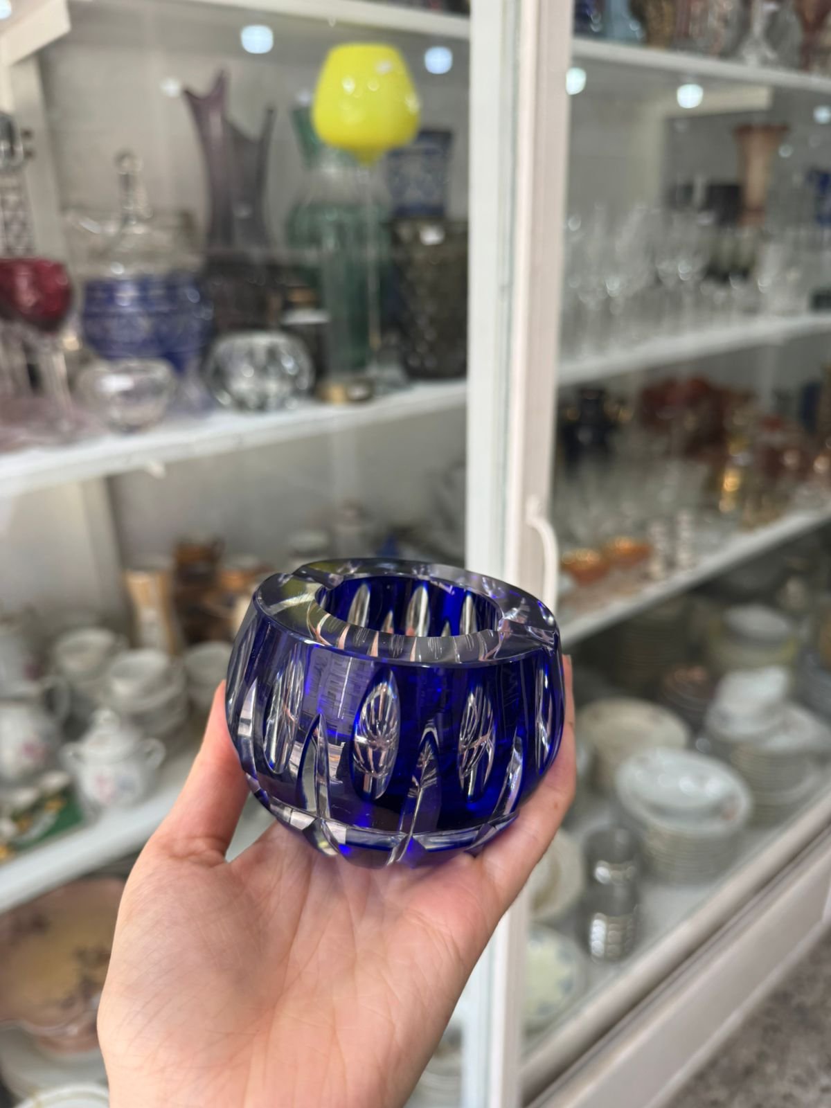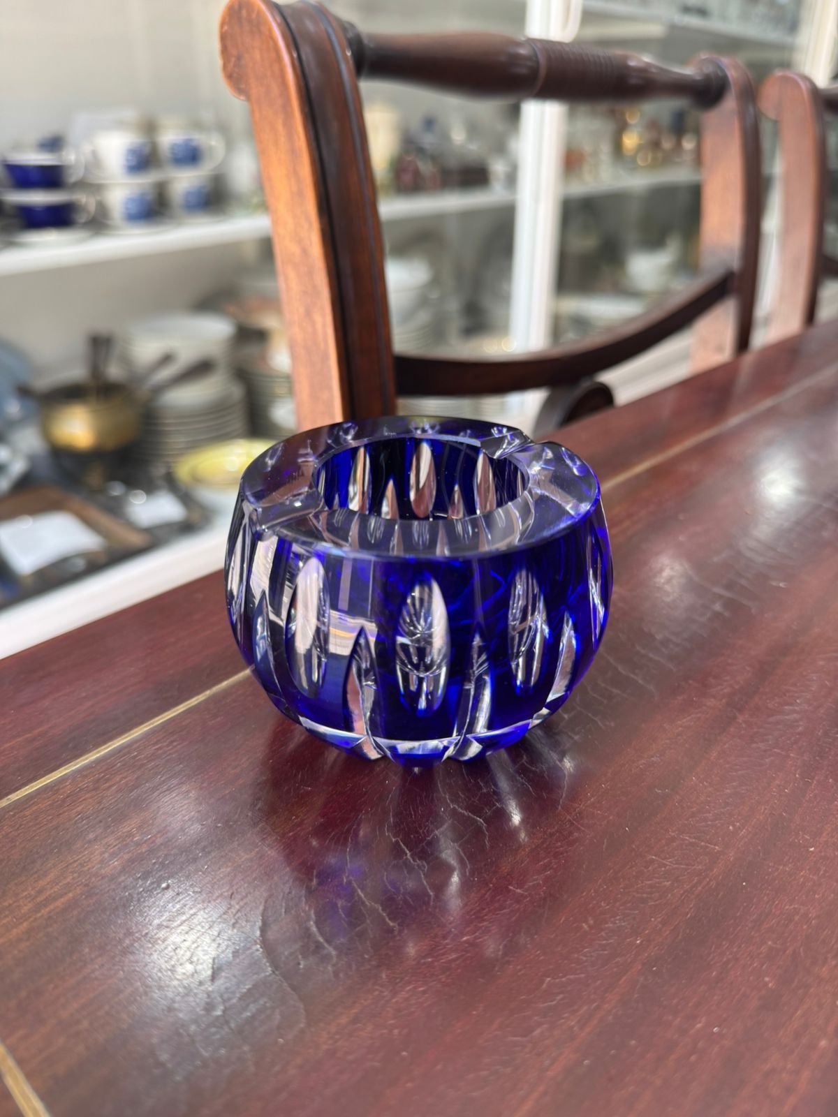 Cenicero de cristal tallado azul