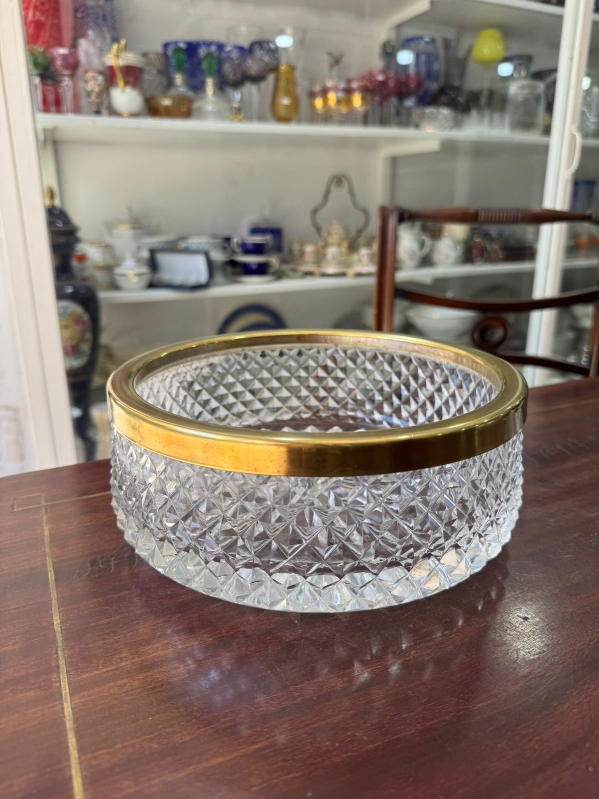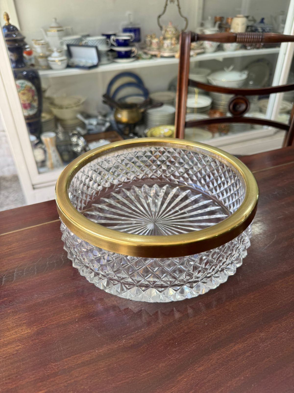 Centro de mesa de cristal súper tallado con bronce