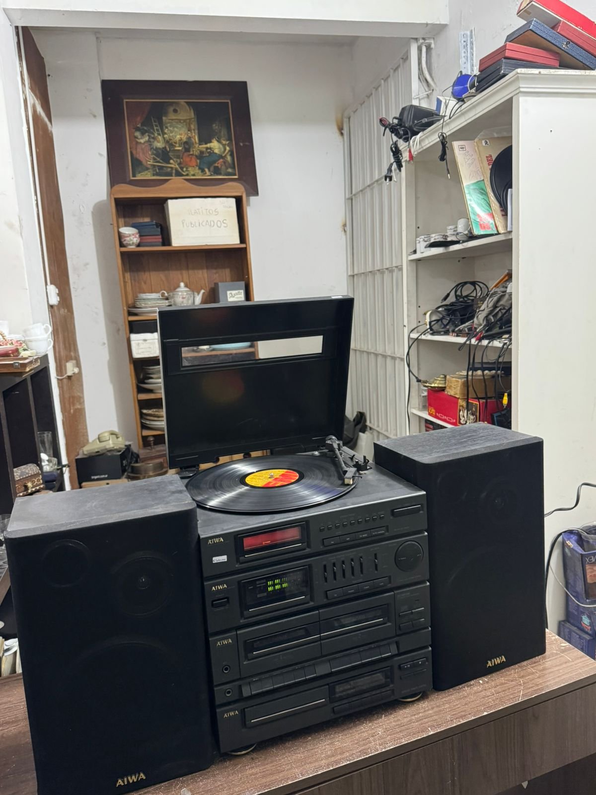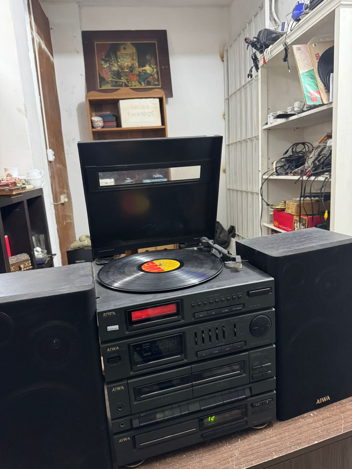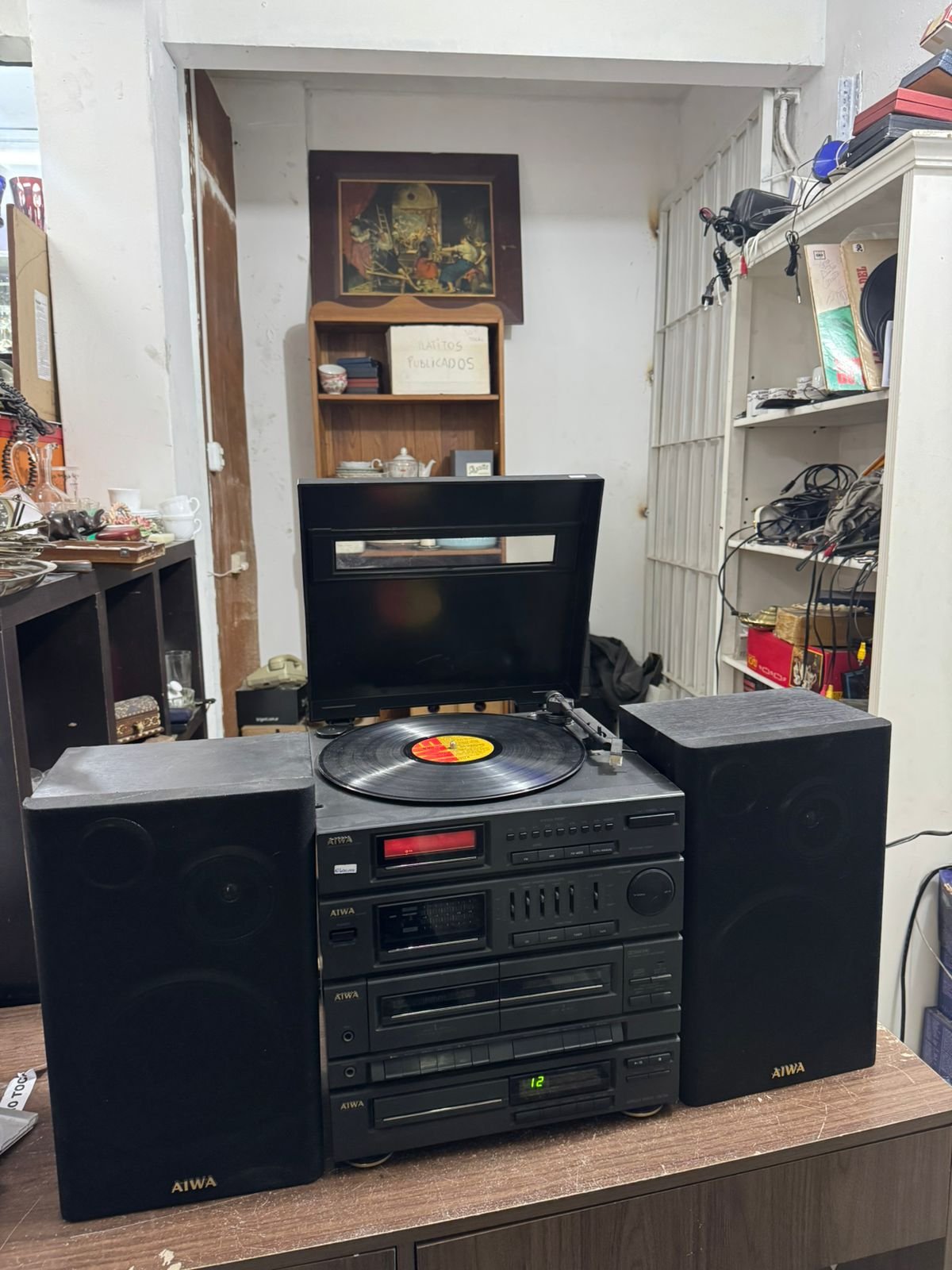 Centro musical AIWA bandeja giradiscos, radio AM FM, cd, cassette