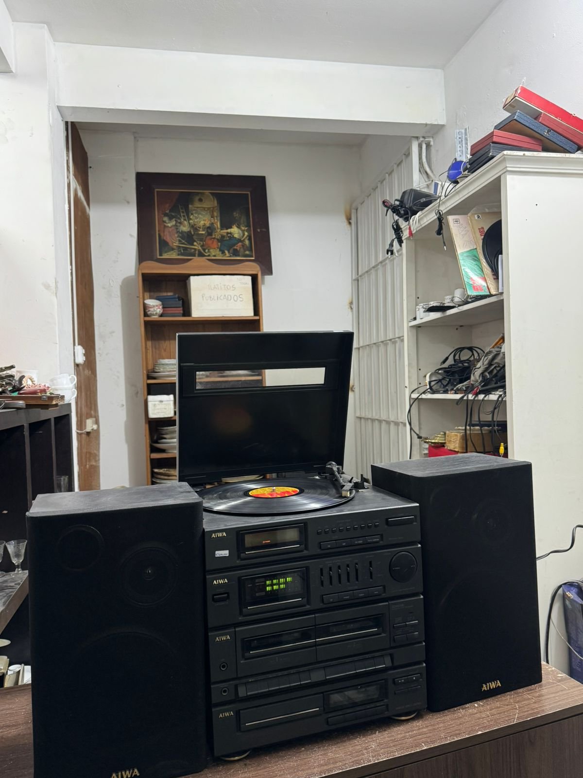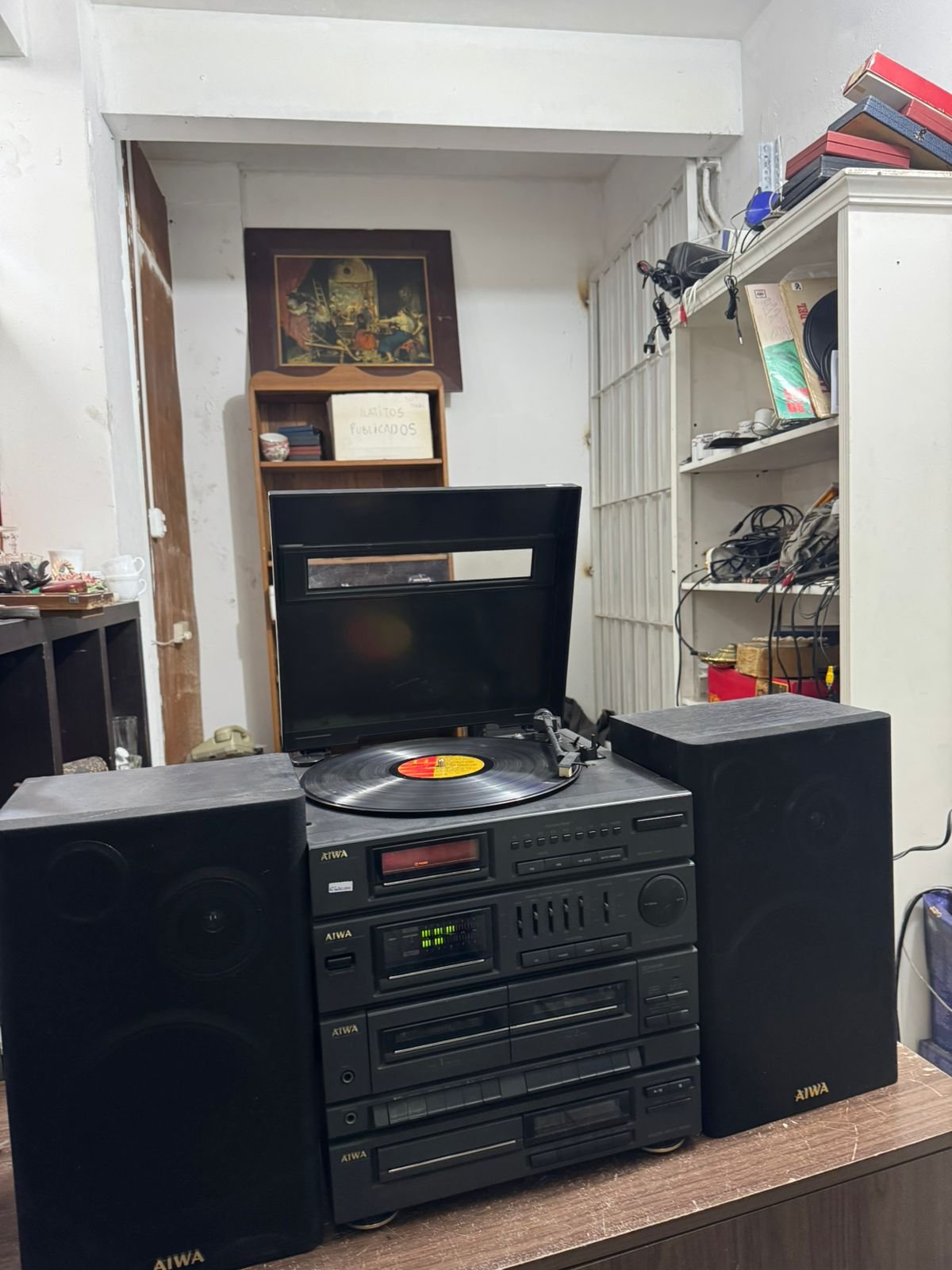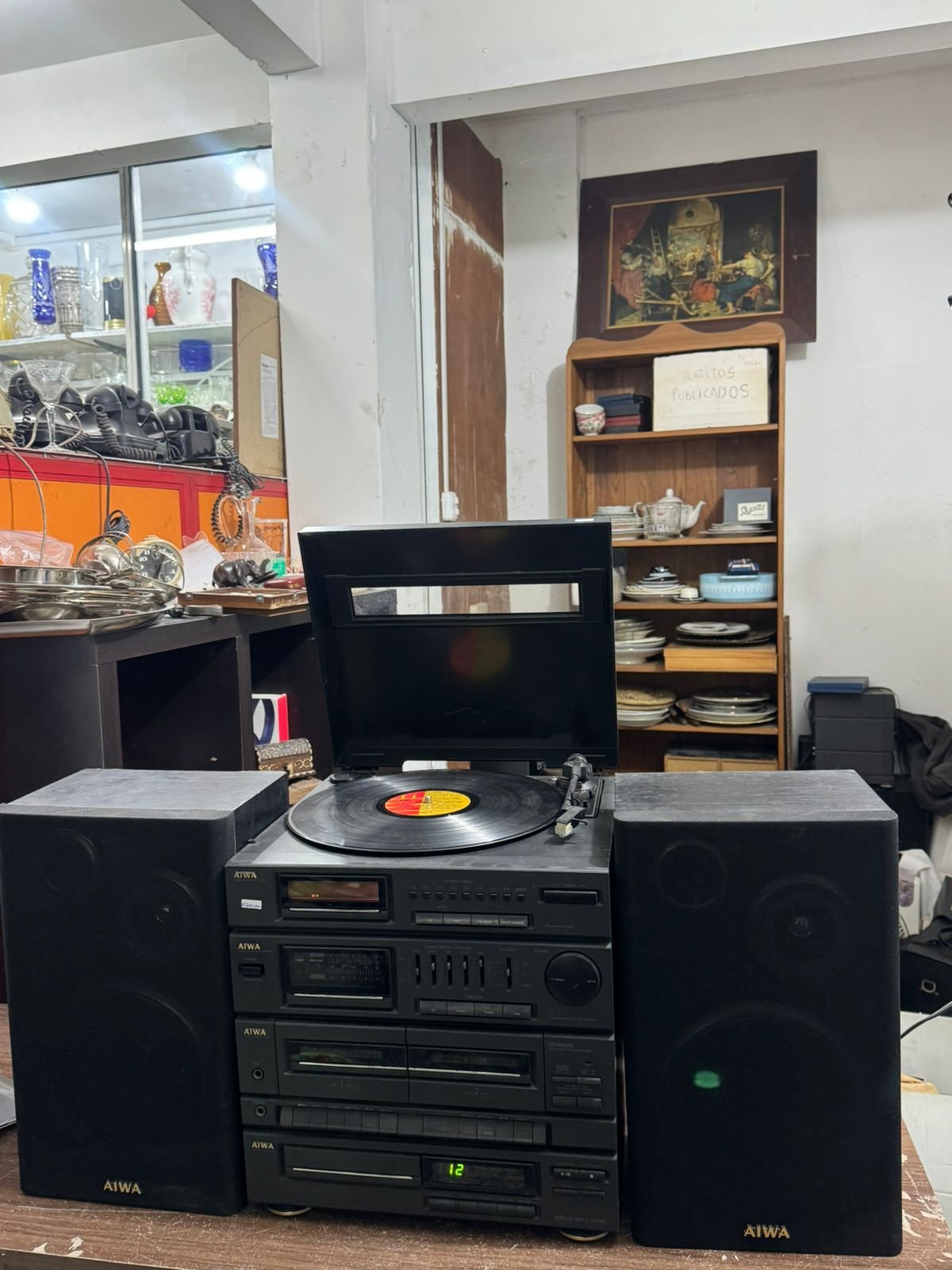Centro musical AIWA bandeja giradiscos, radio AM FM, cd, cassette