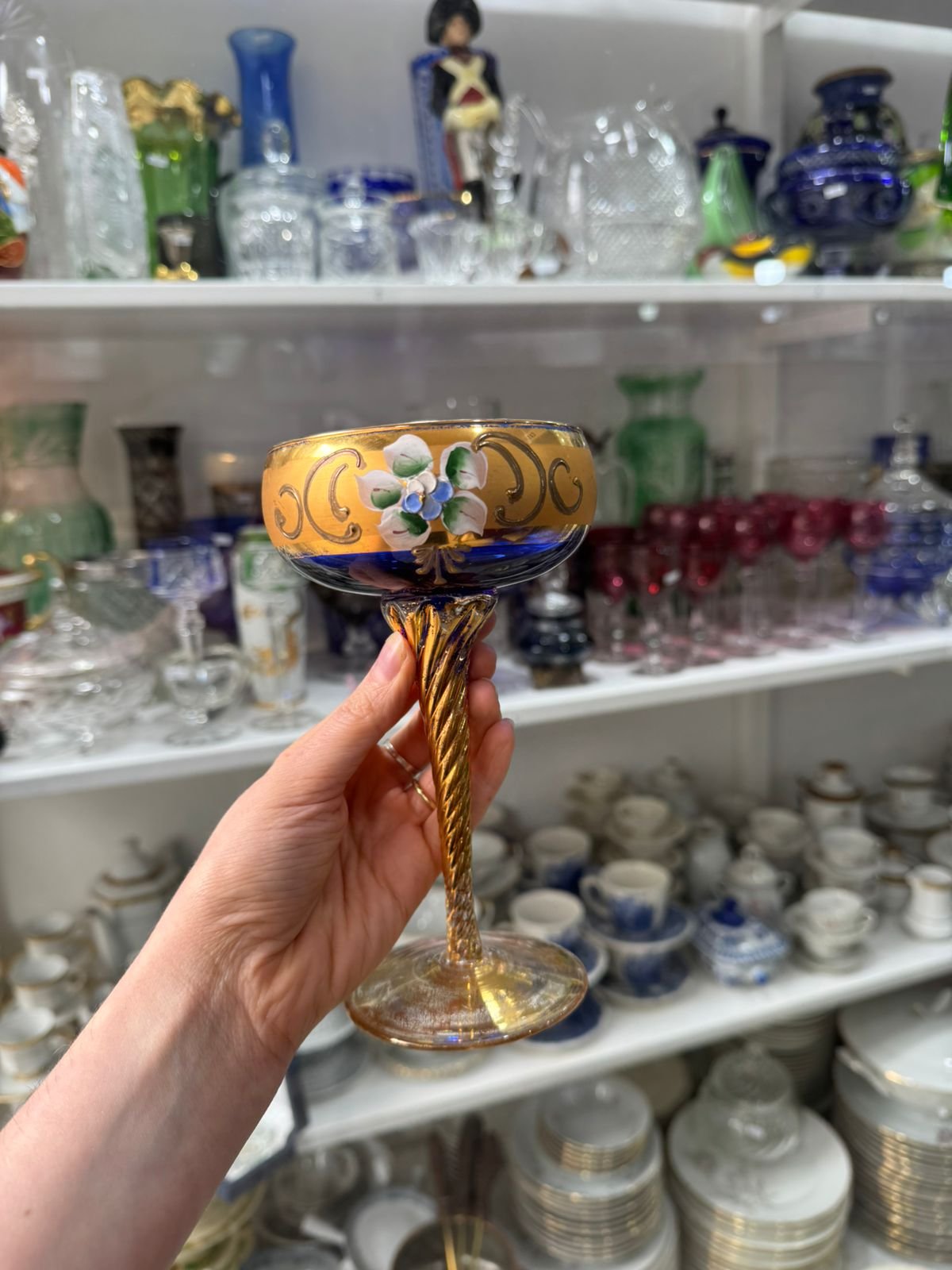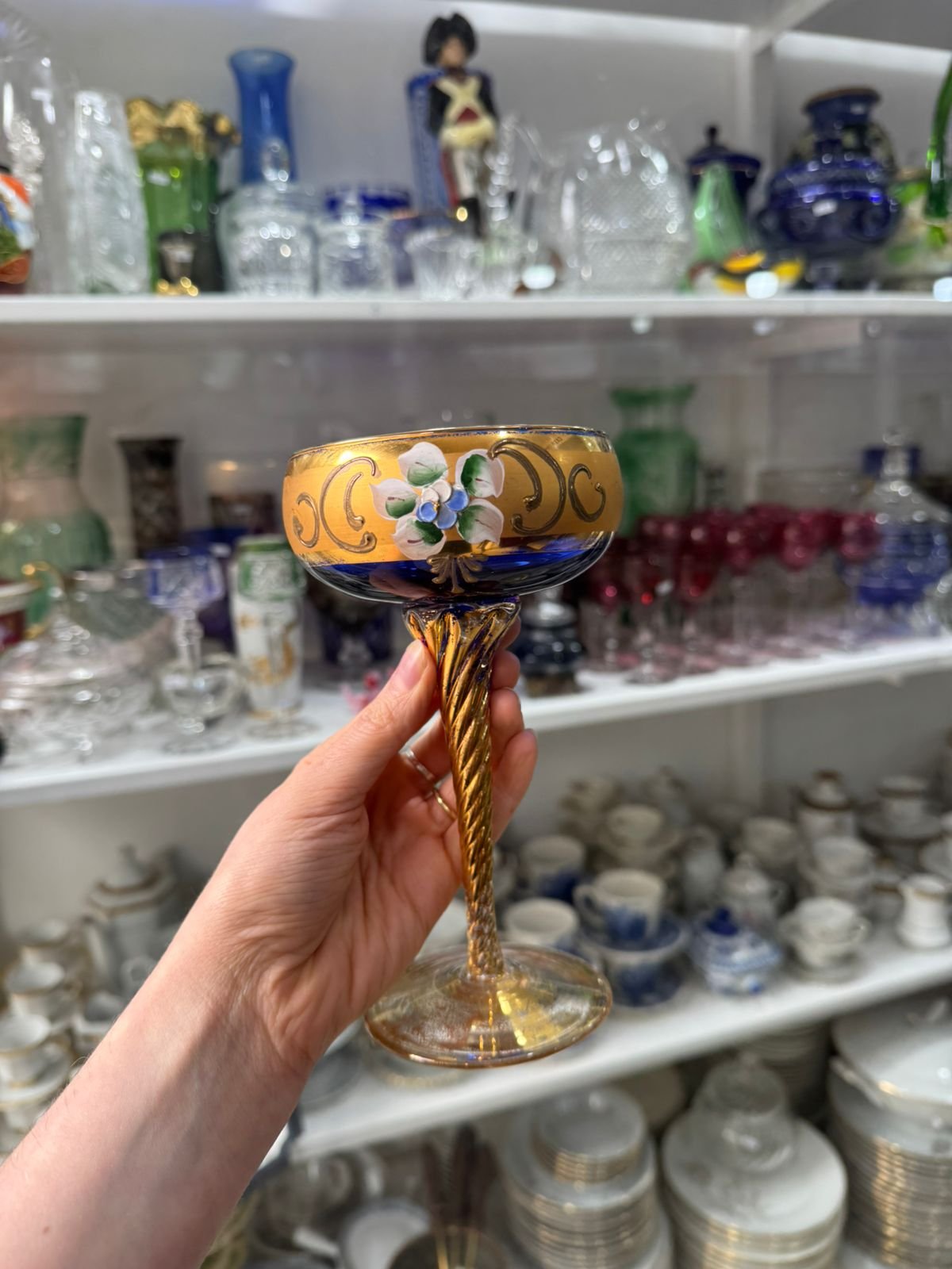Copón de cristal de murano veneciano pintado a mano con oro