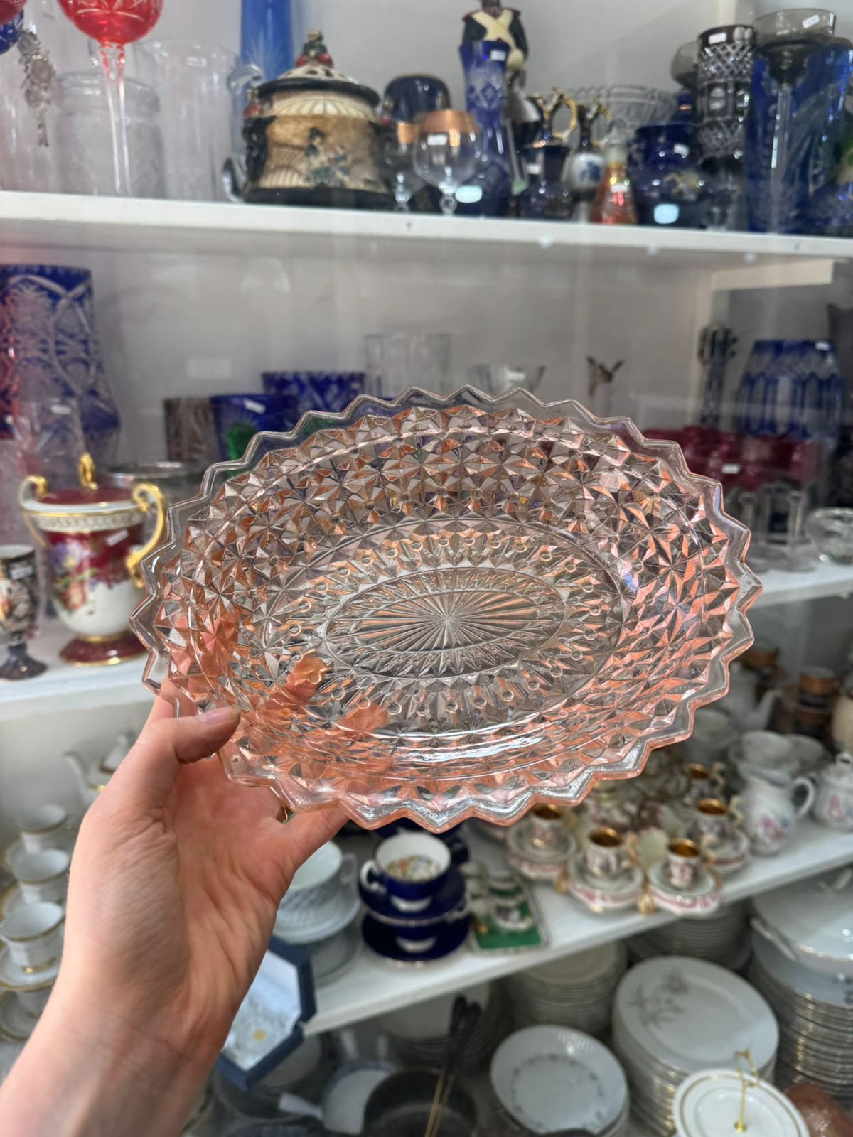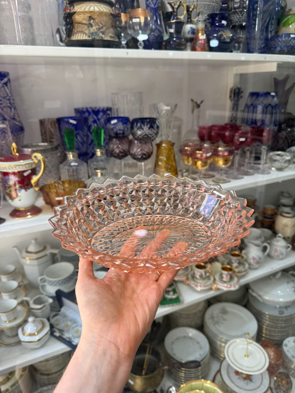 Ensaladera de vidrio prensado rosa