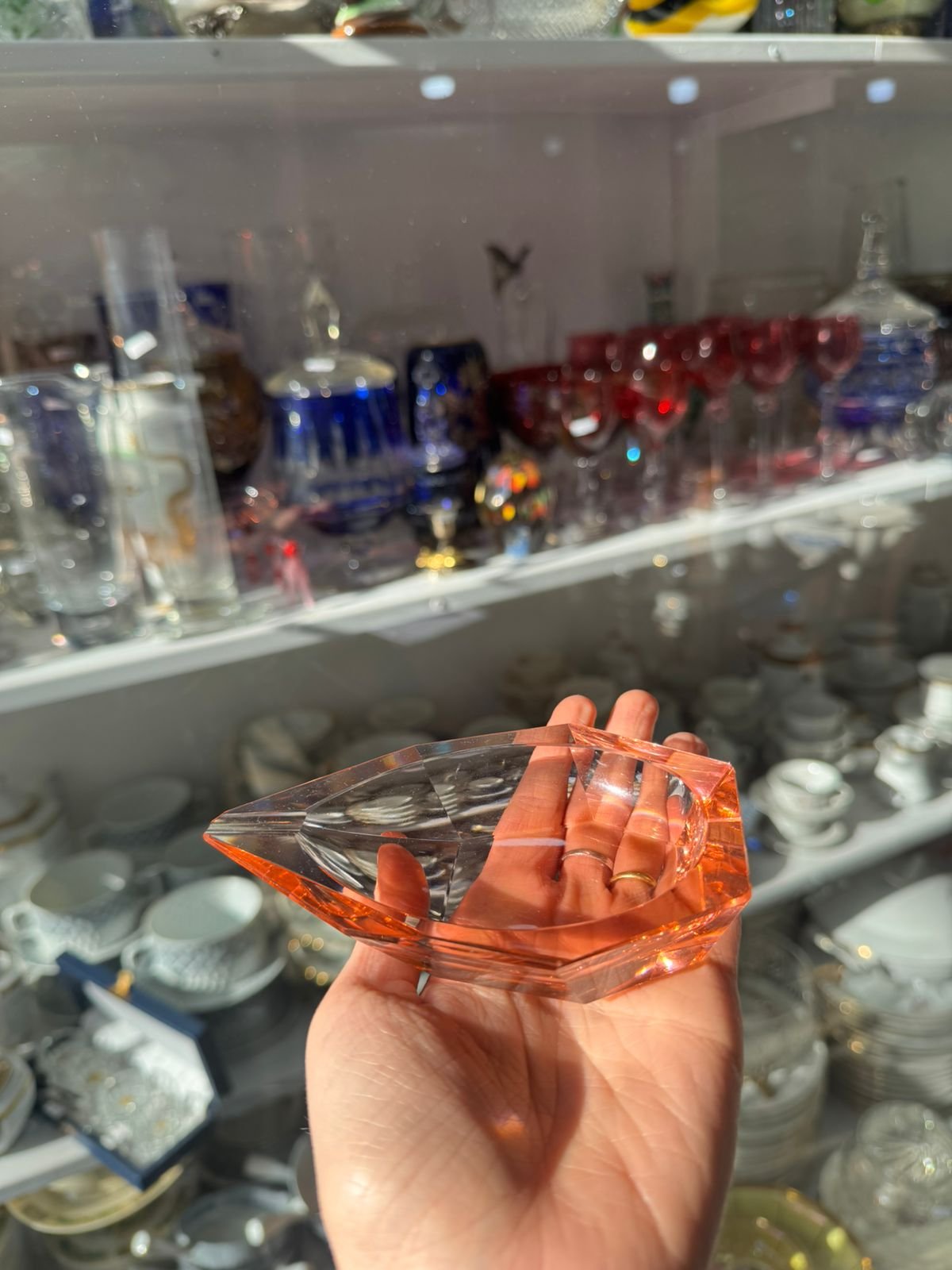 Exquisito cenicero en cristal rosa