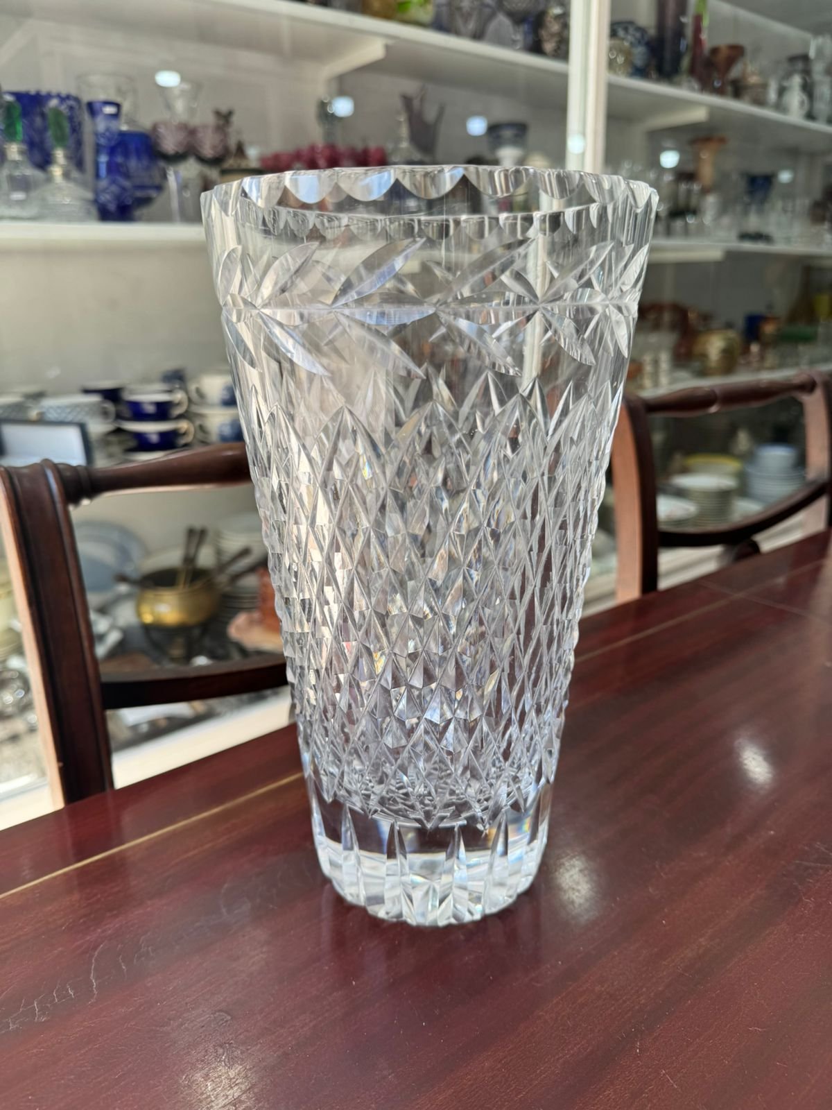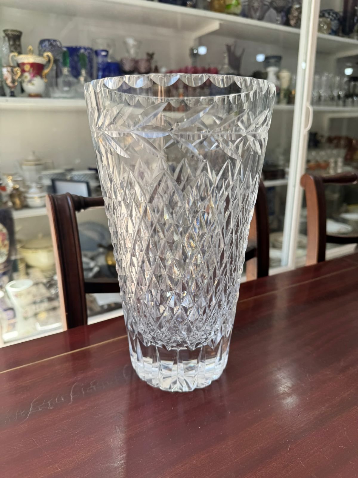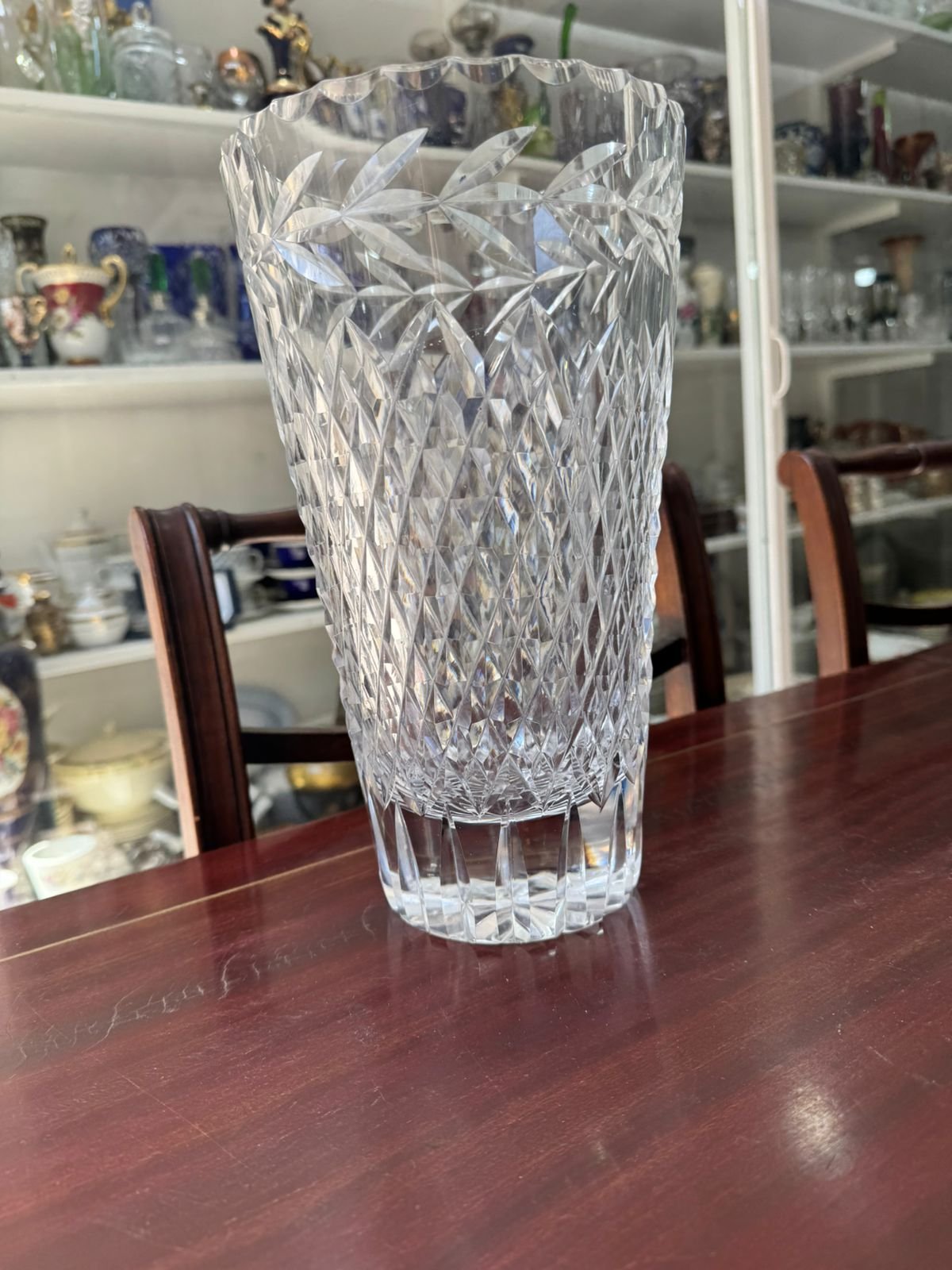 Exquisito florero grande de cristal súper tallado