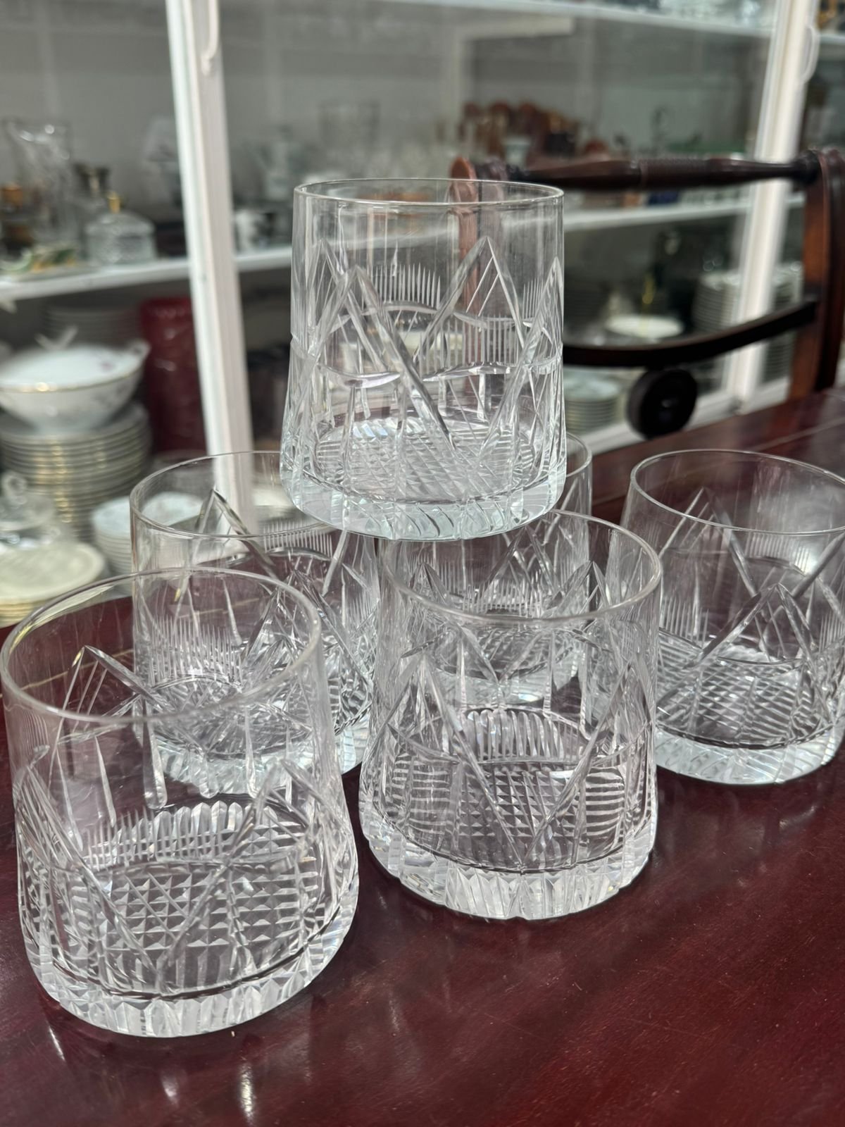 Exquisito juego de whisky hielera con 6 vasos cristal súper tallado