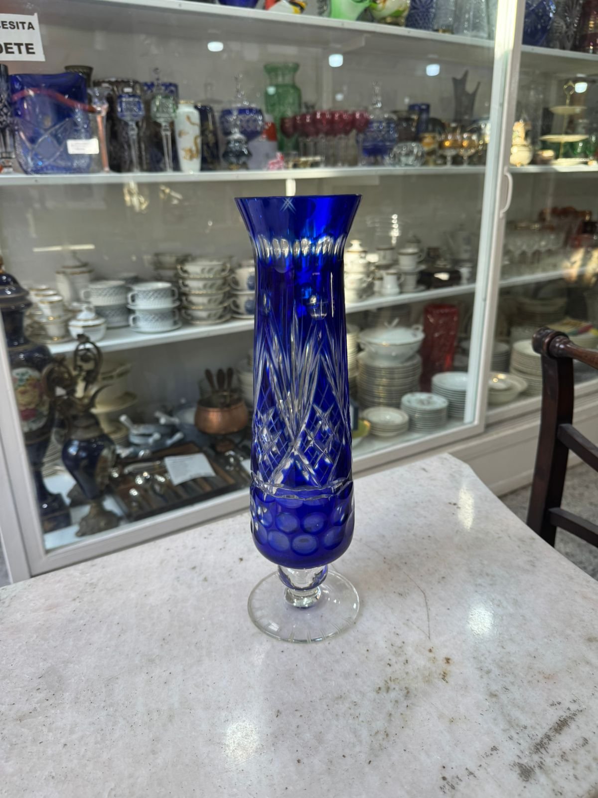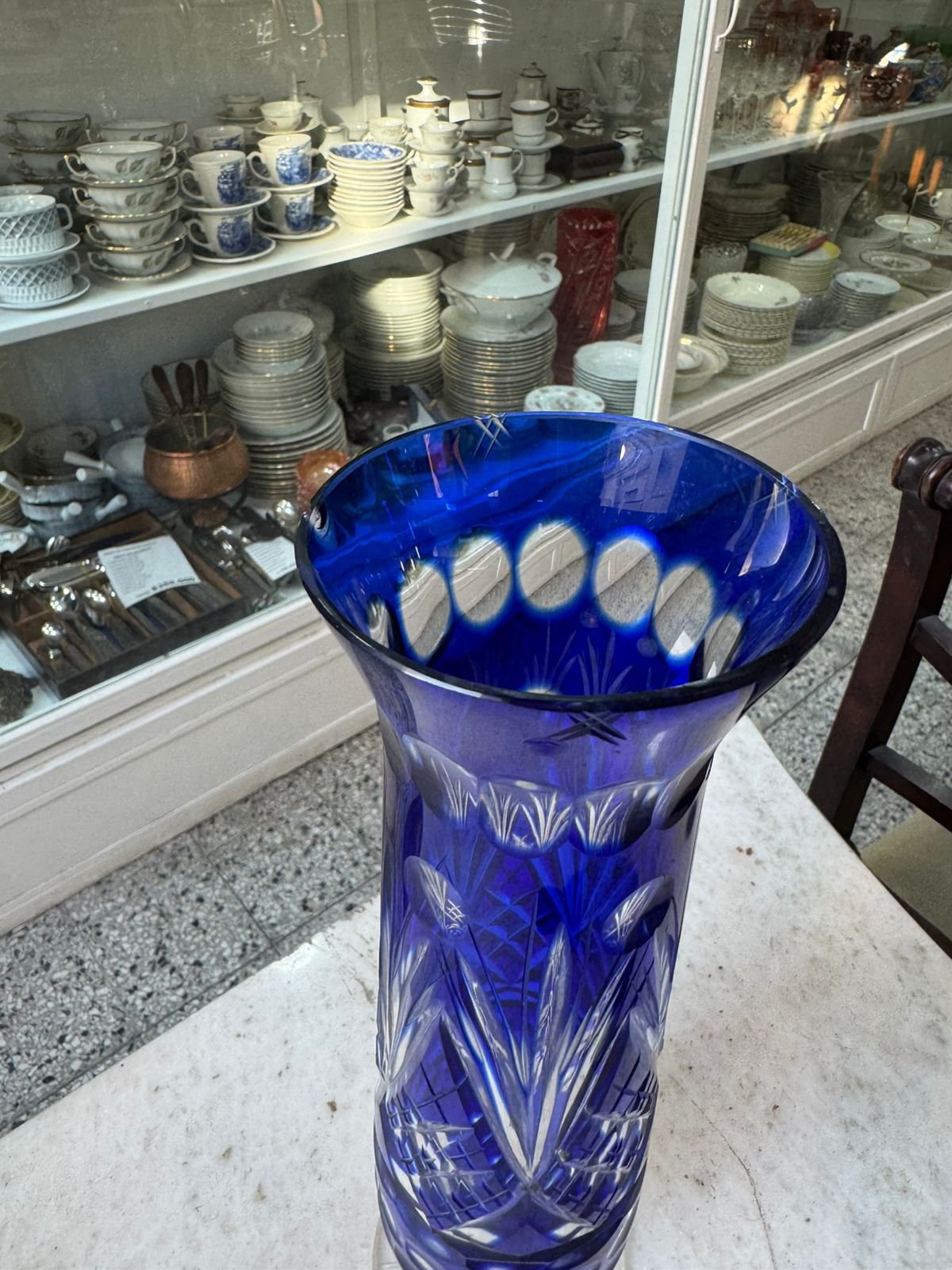 Florero cristal súper tallado azul