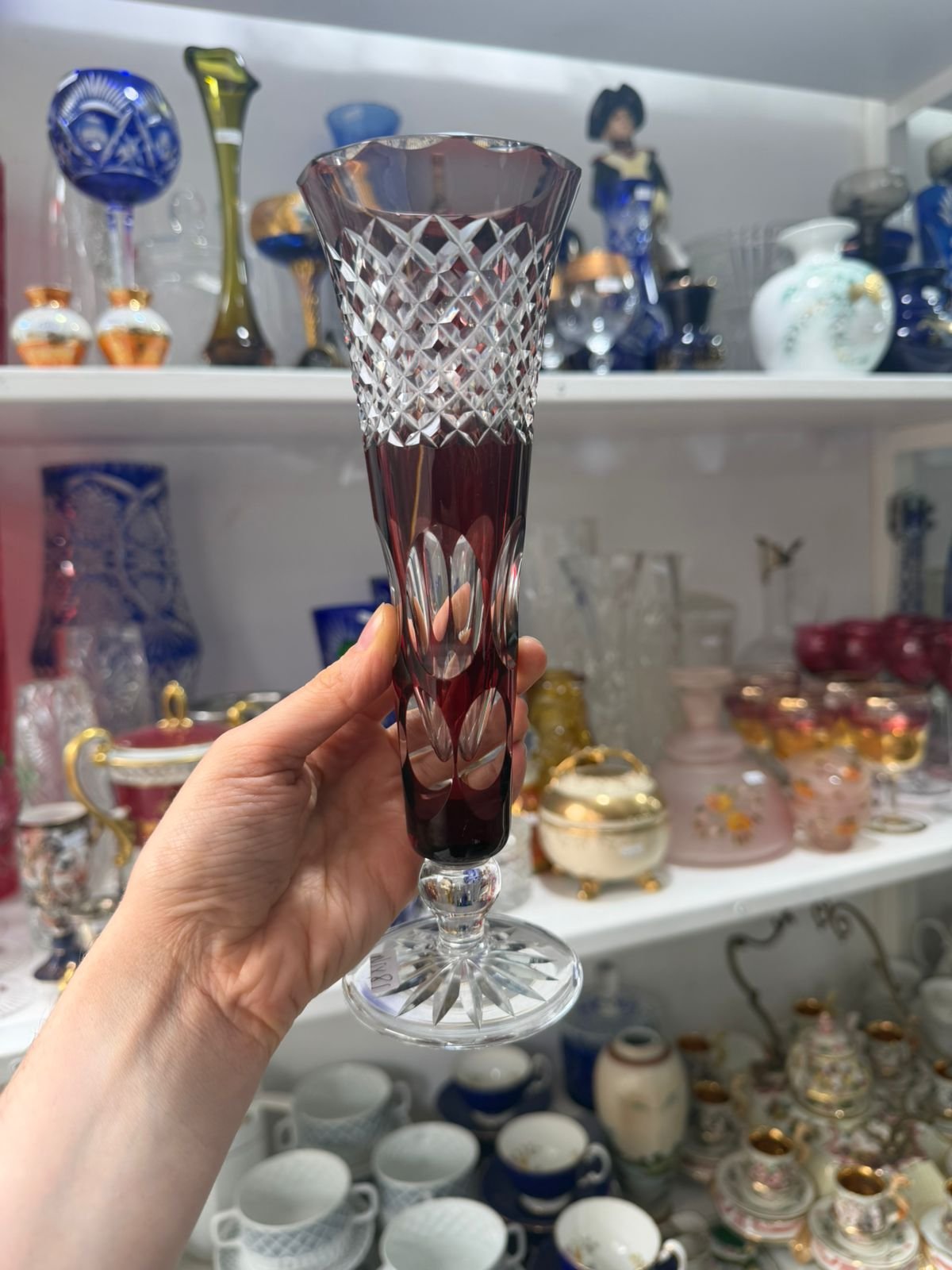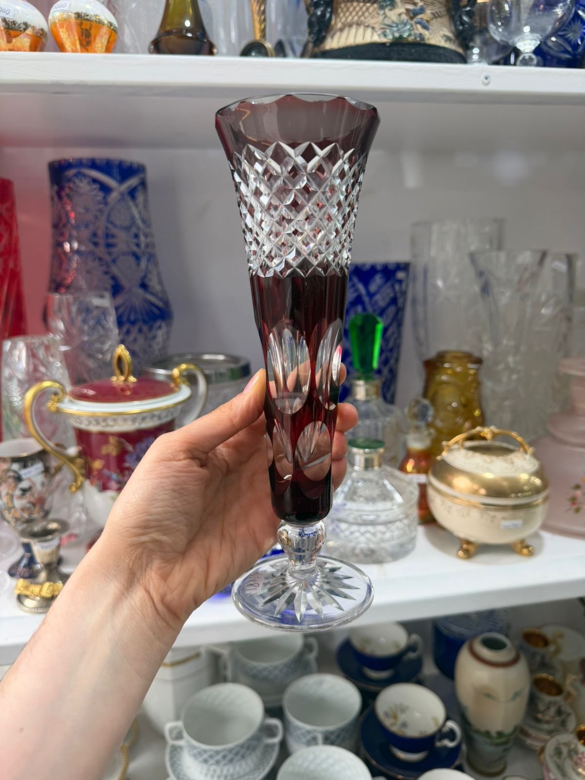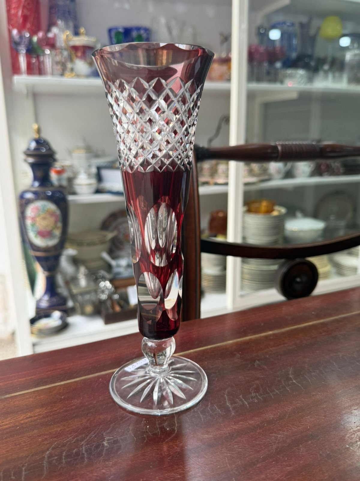 Sé el primero en valorar “Florero violetero de cristal super tallado rubi”
