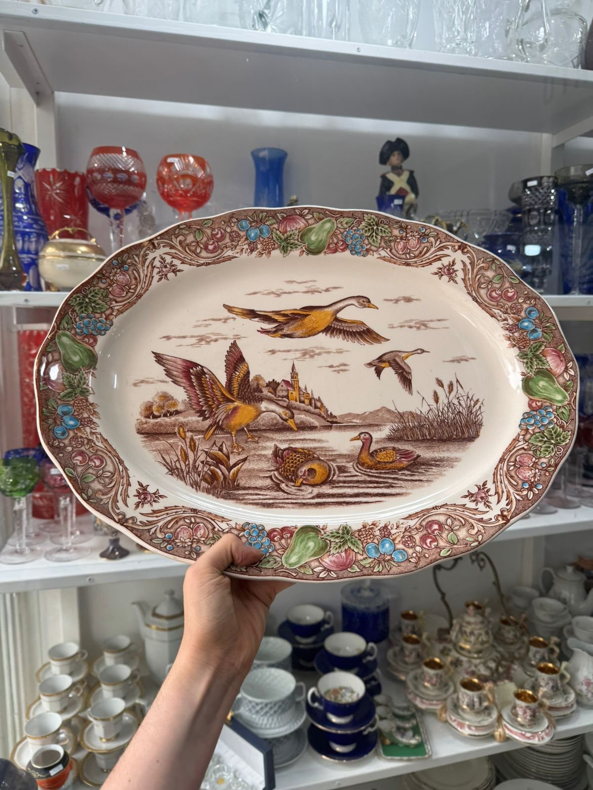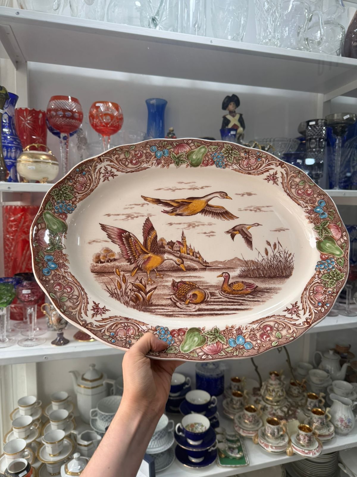 Fuente oval grande pintada a mano japonesa