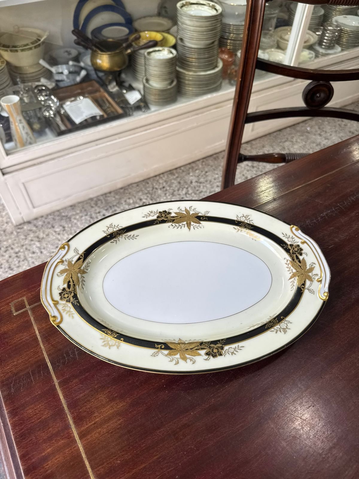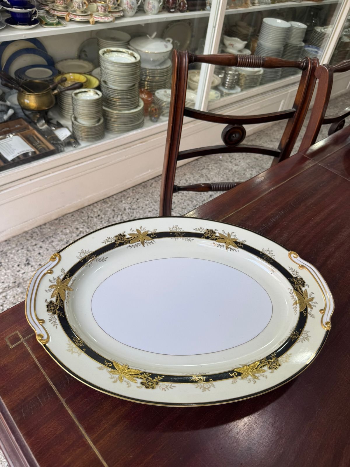 Fuente oval grande porcelana japonesa pintada a mano con oro