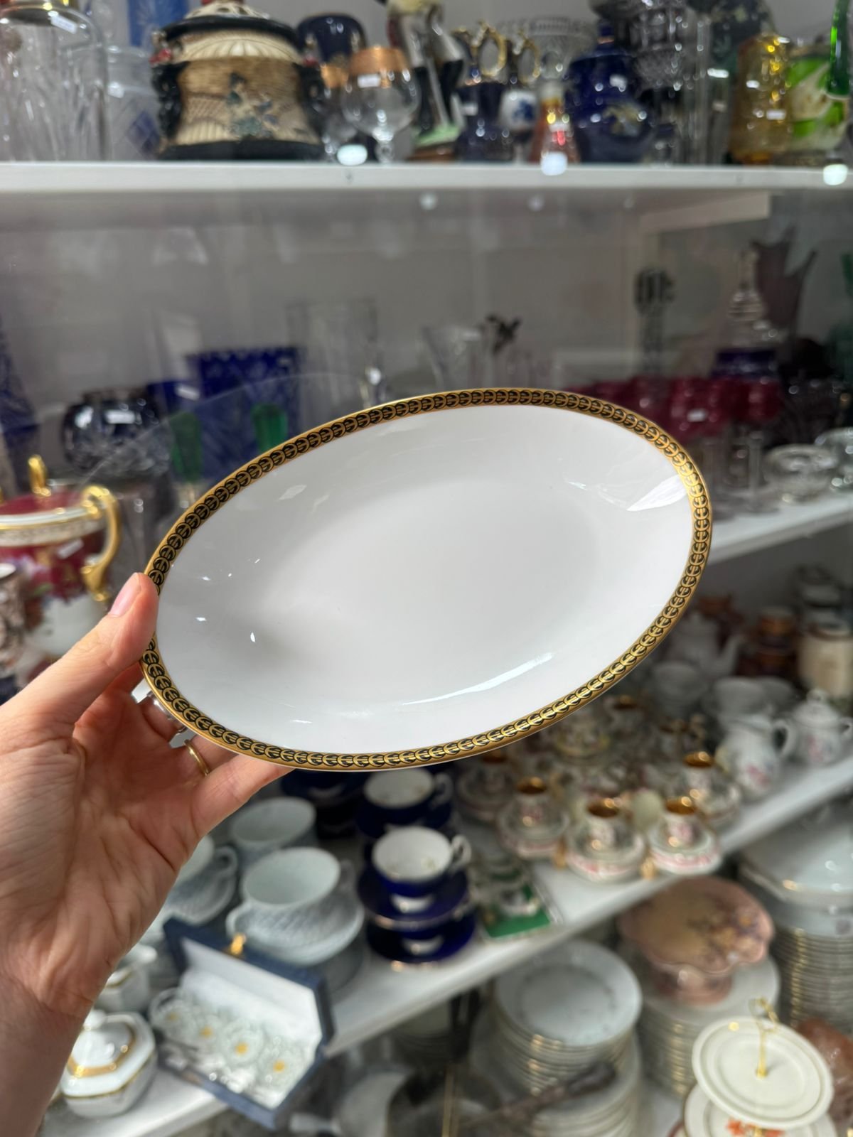 Fuente redonda porcelana verbano con oro