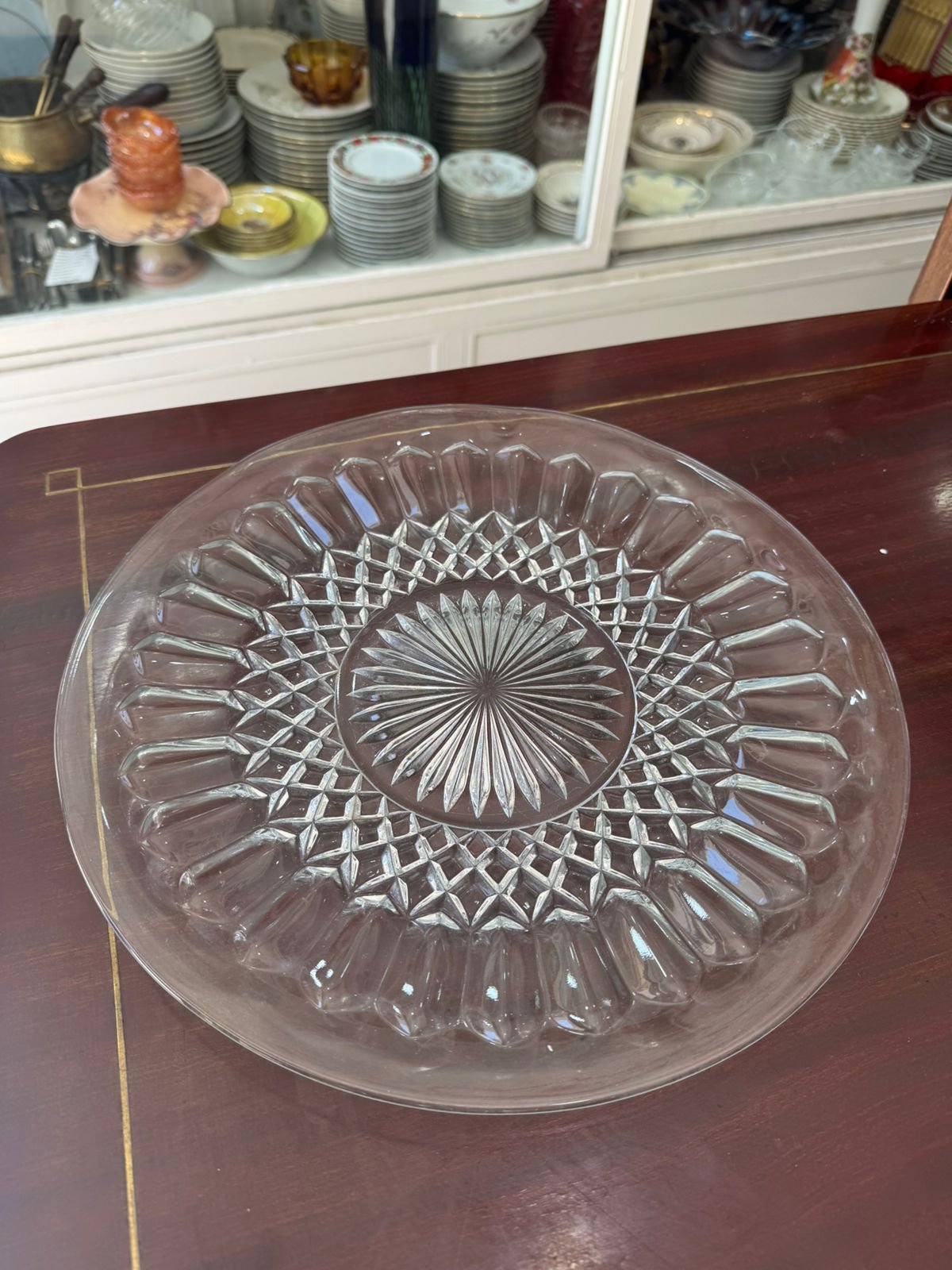 Fuente vidrio prensado antiguo