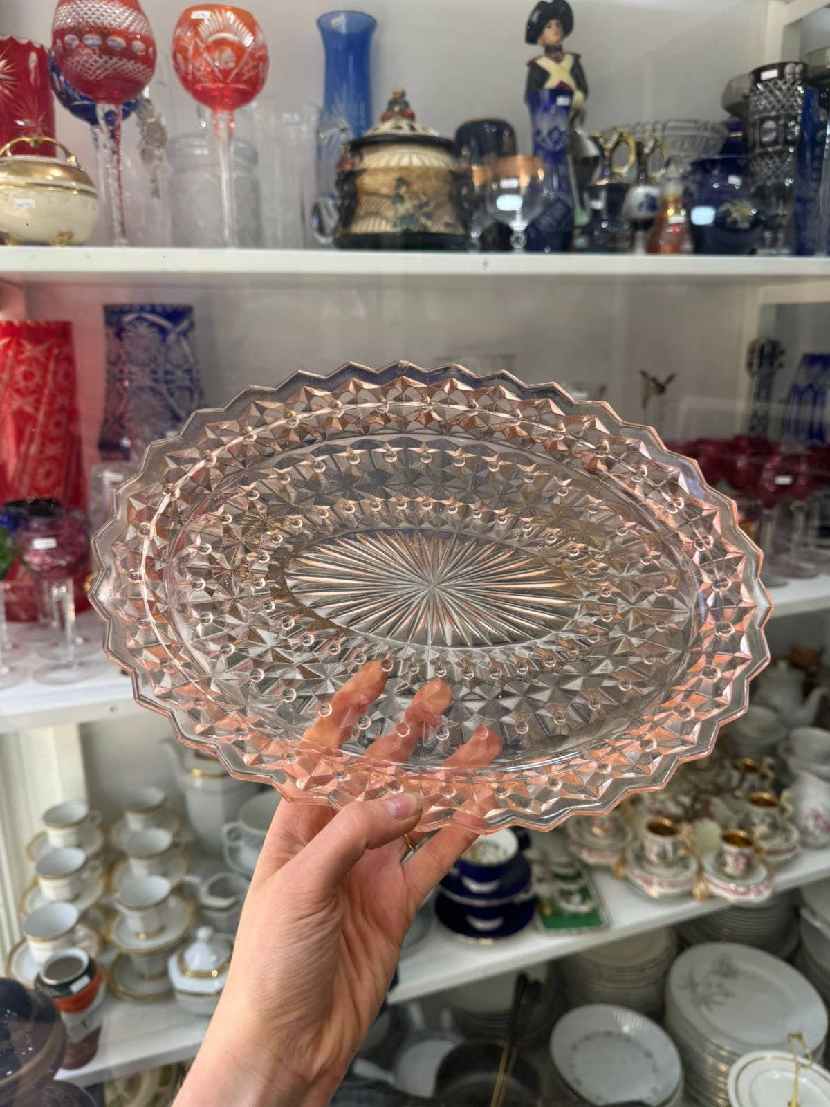 Sé el primero en valorar “Fuente vidrio prensado rosa”