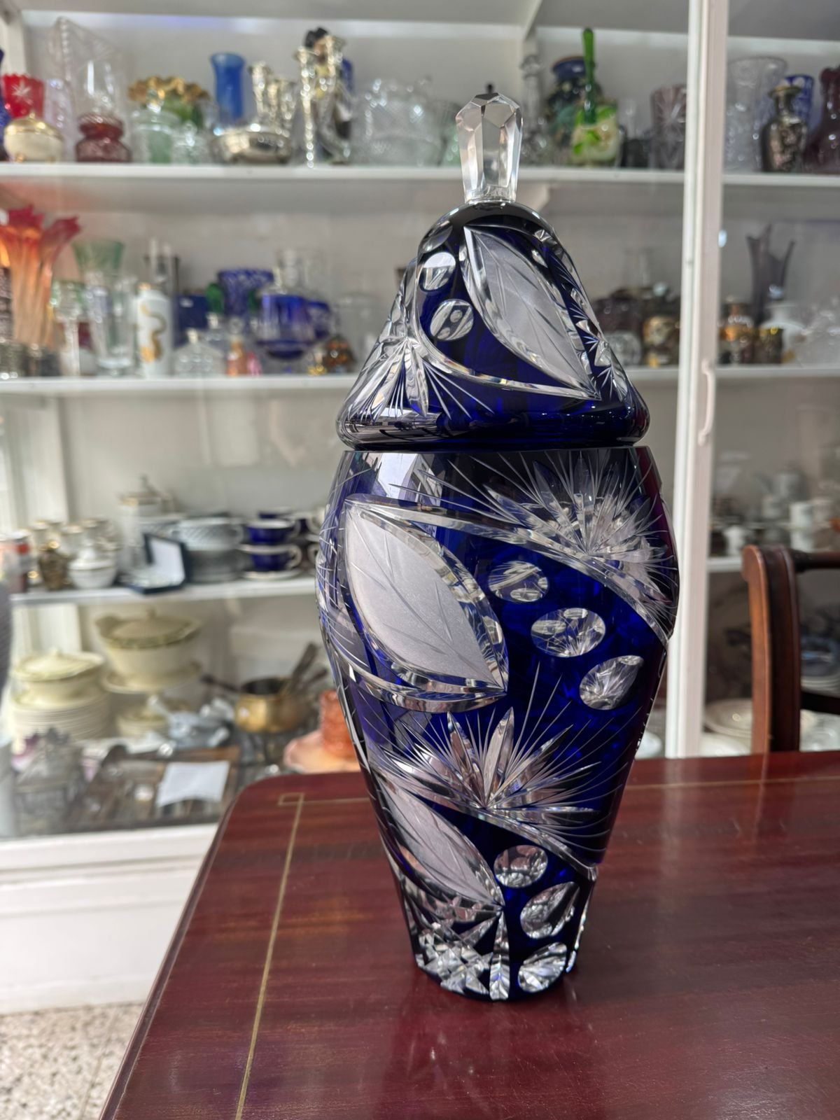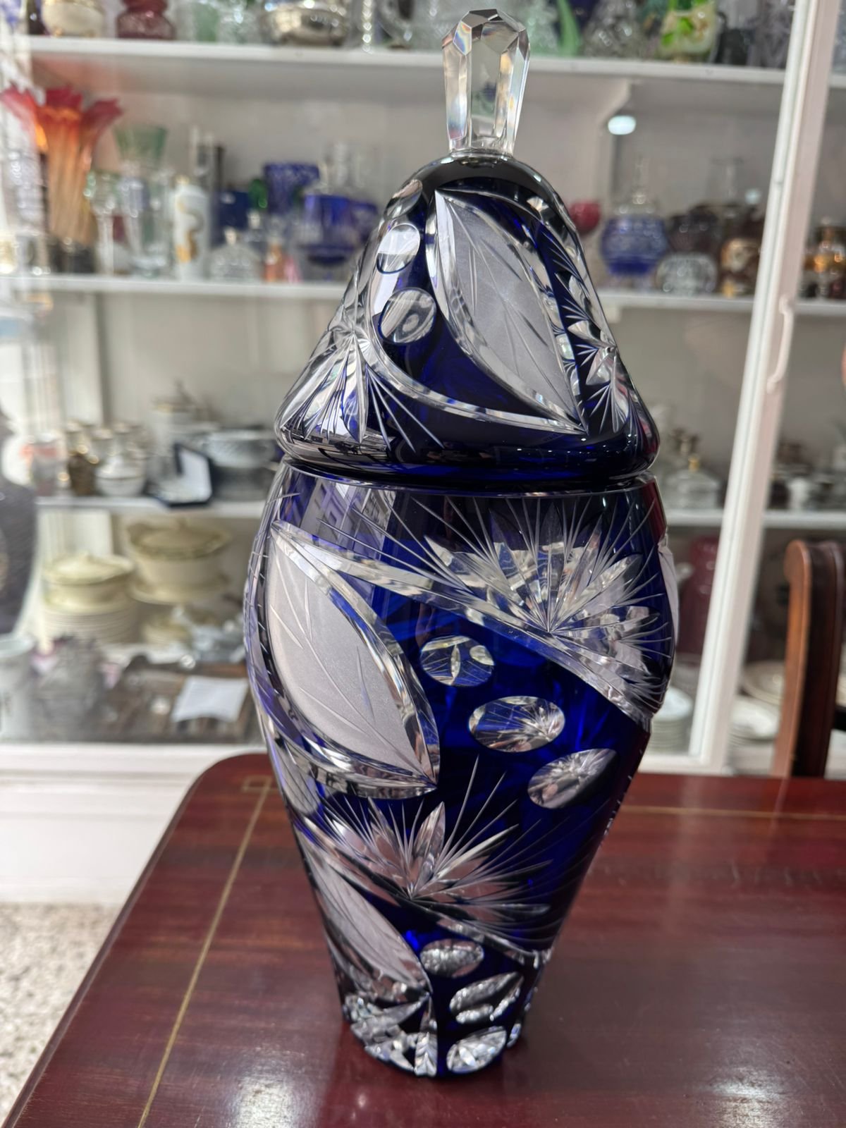 Gran potiche cristal tallado checoslovaco de tamaño grande