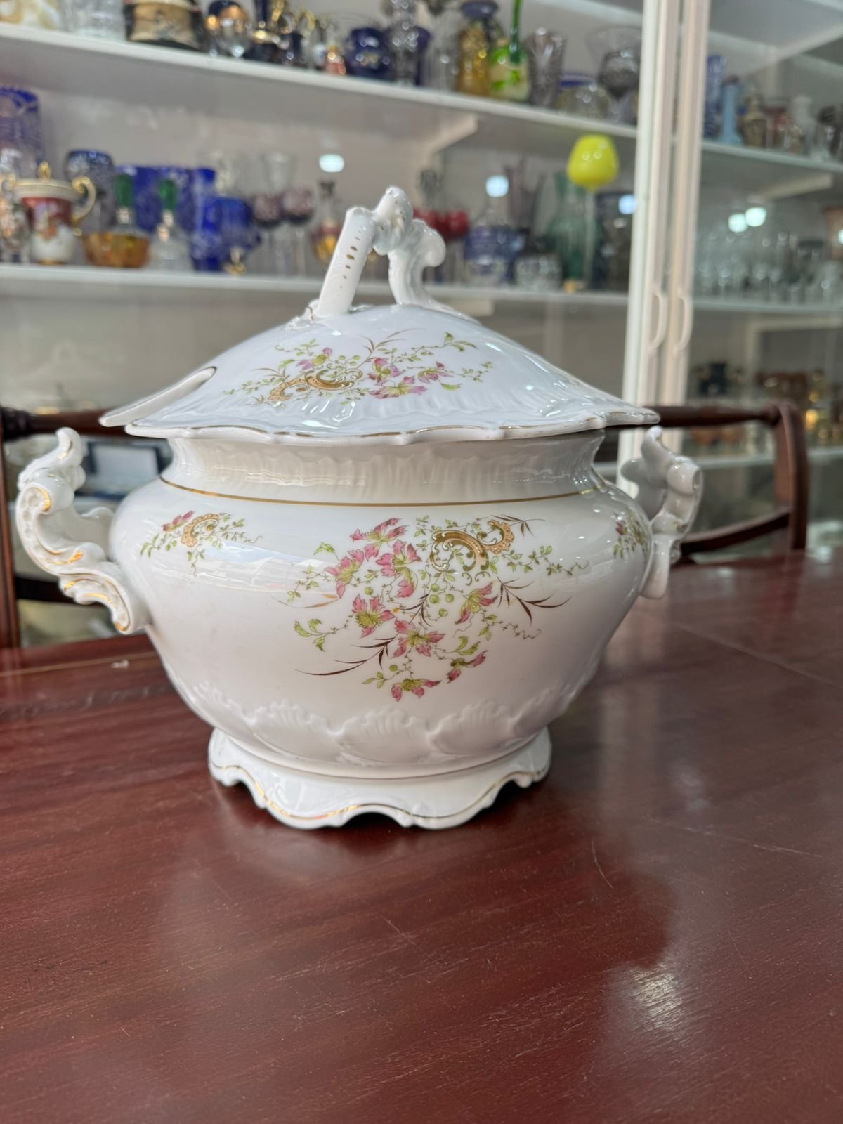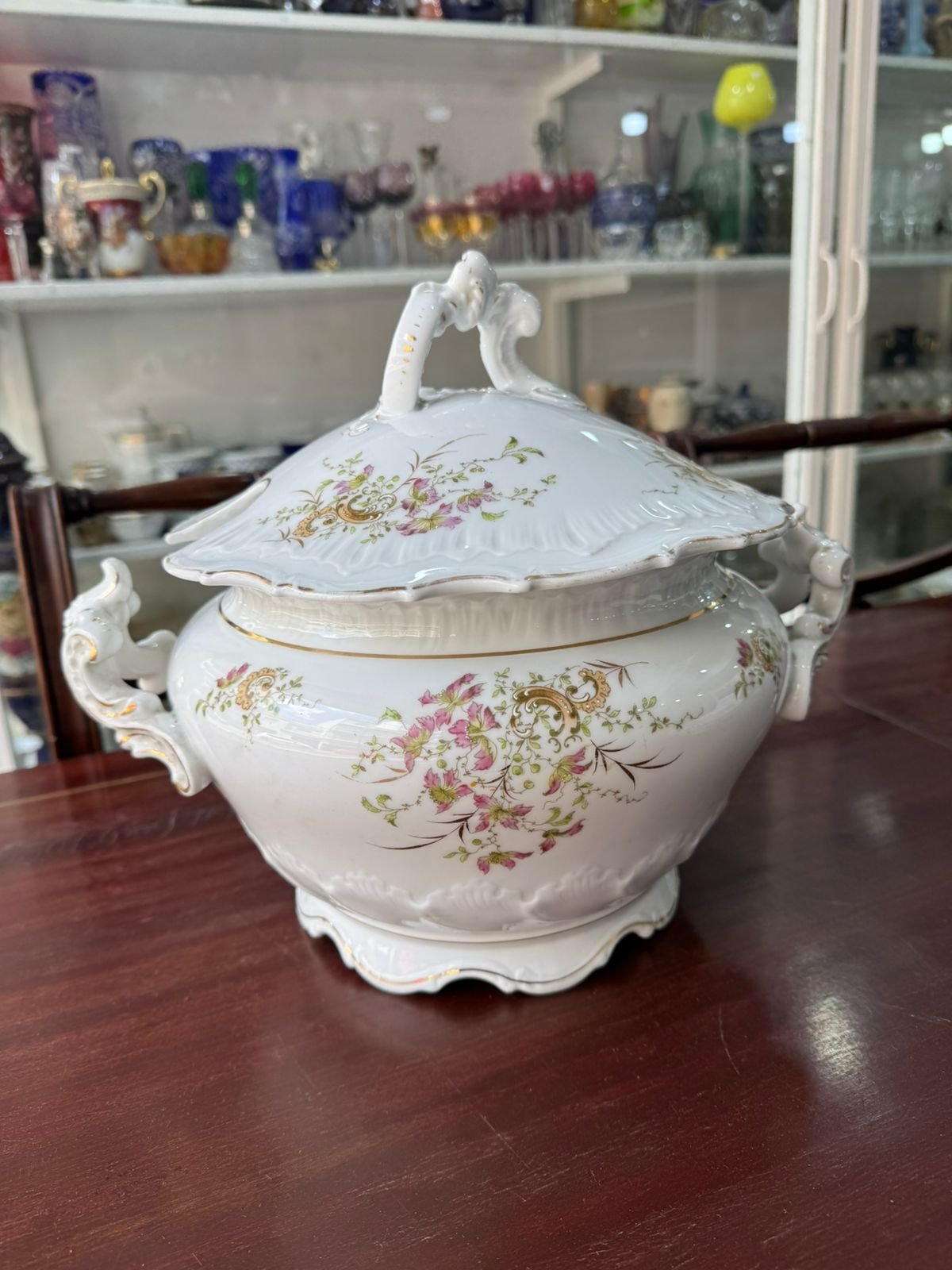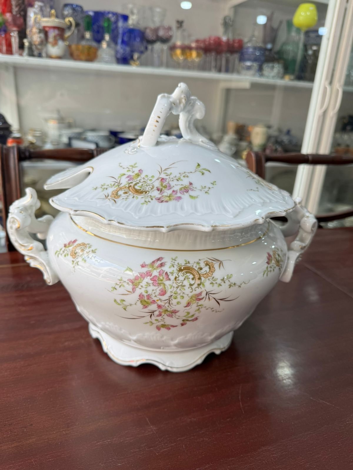 Gran sopera de porcelana pintada a mano con oro
