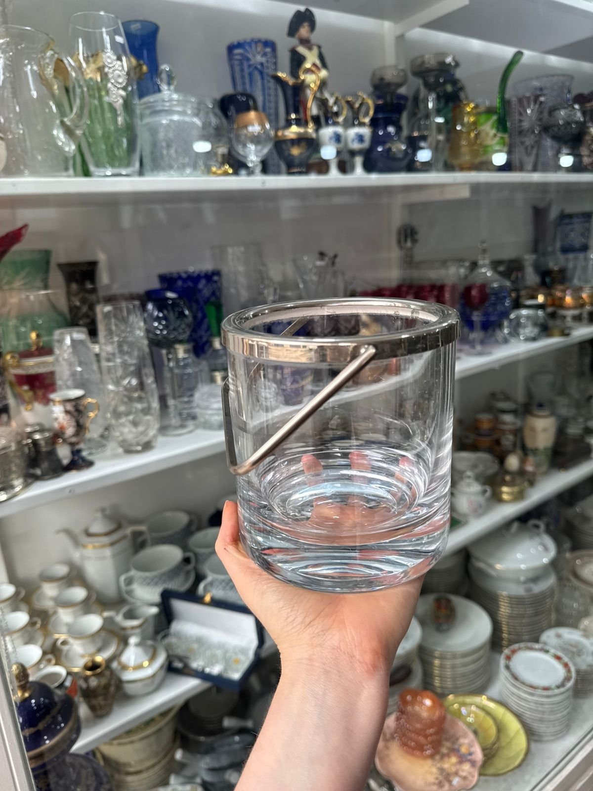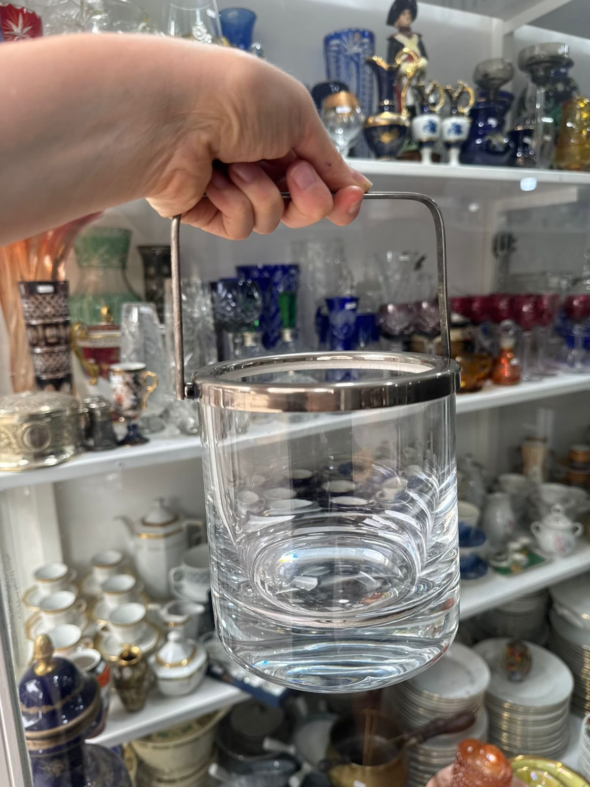 Hielera de cristal con platería