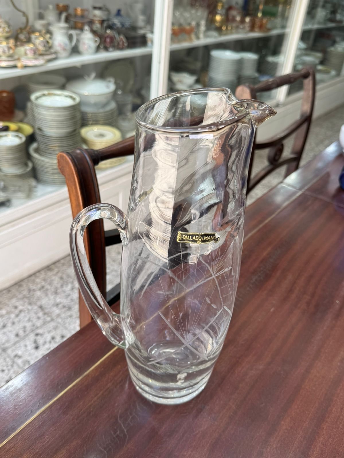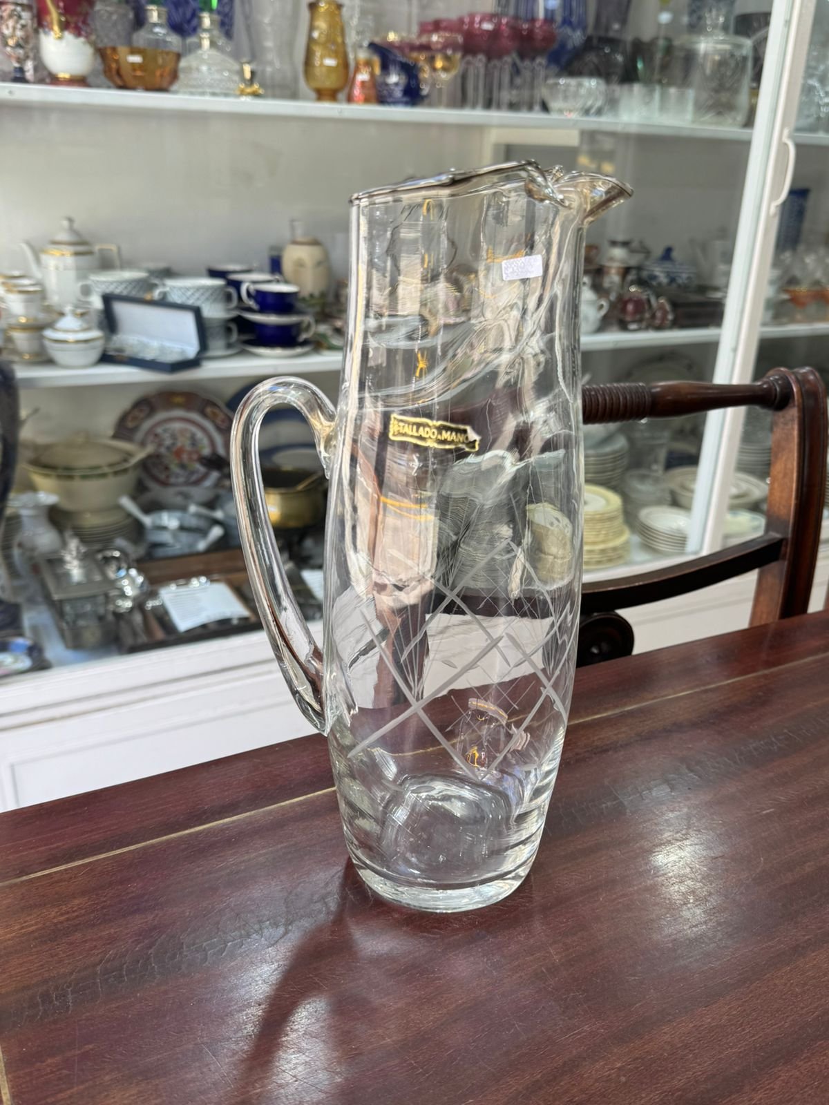 Jarra alta de vidrio tallada