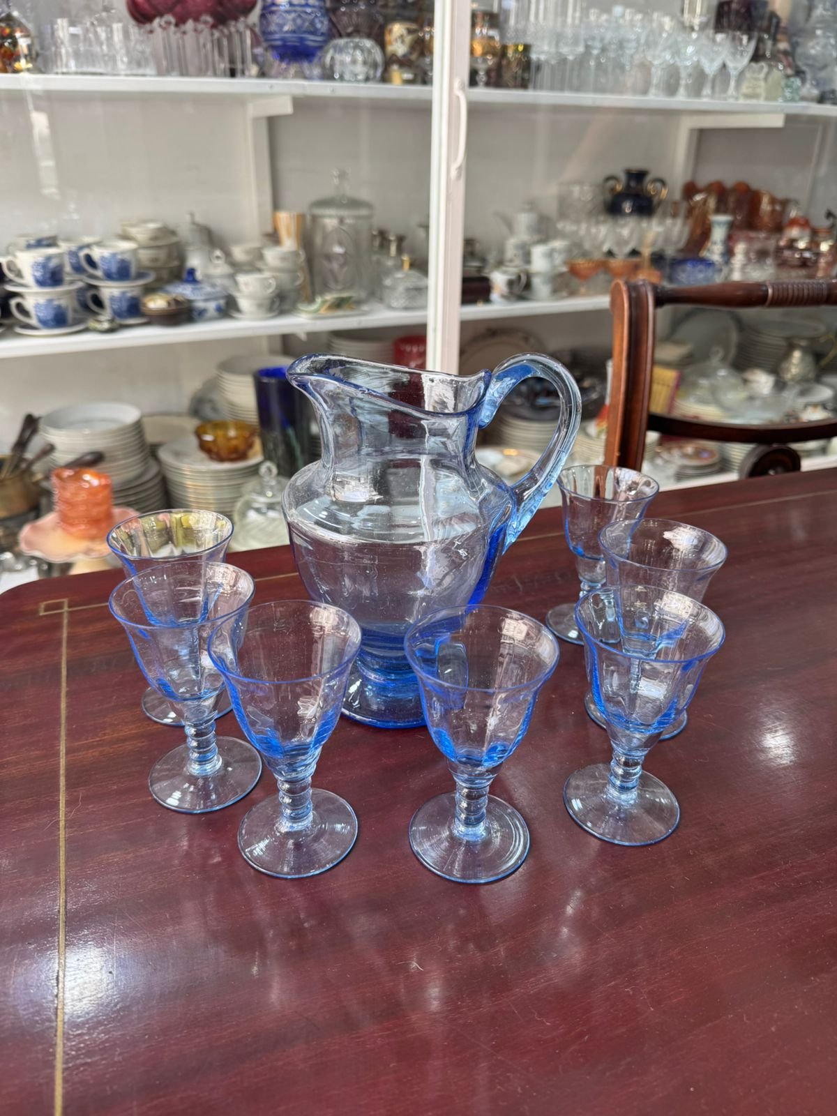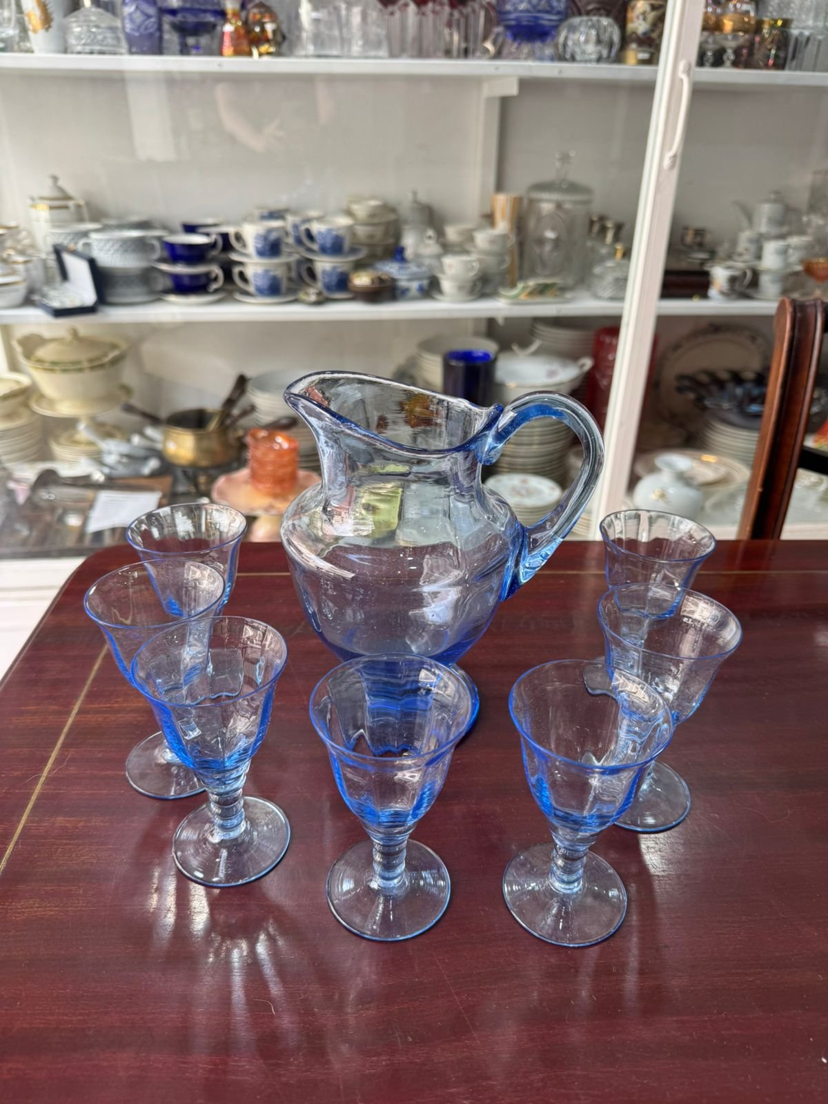 Jarra con 7 copas celeste