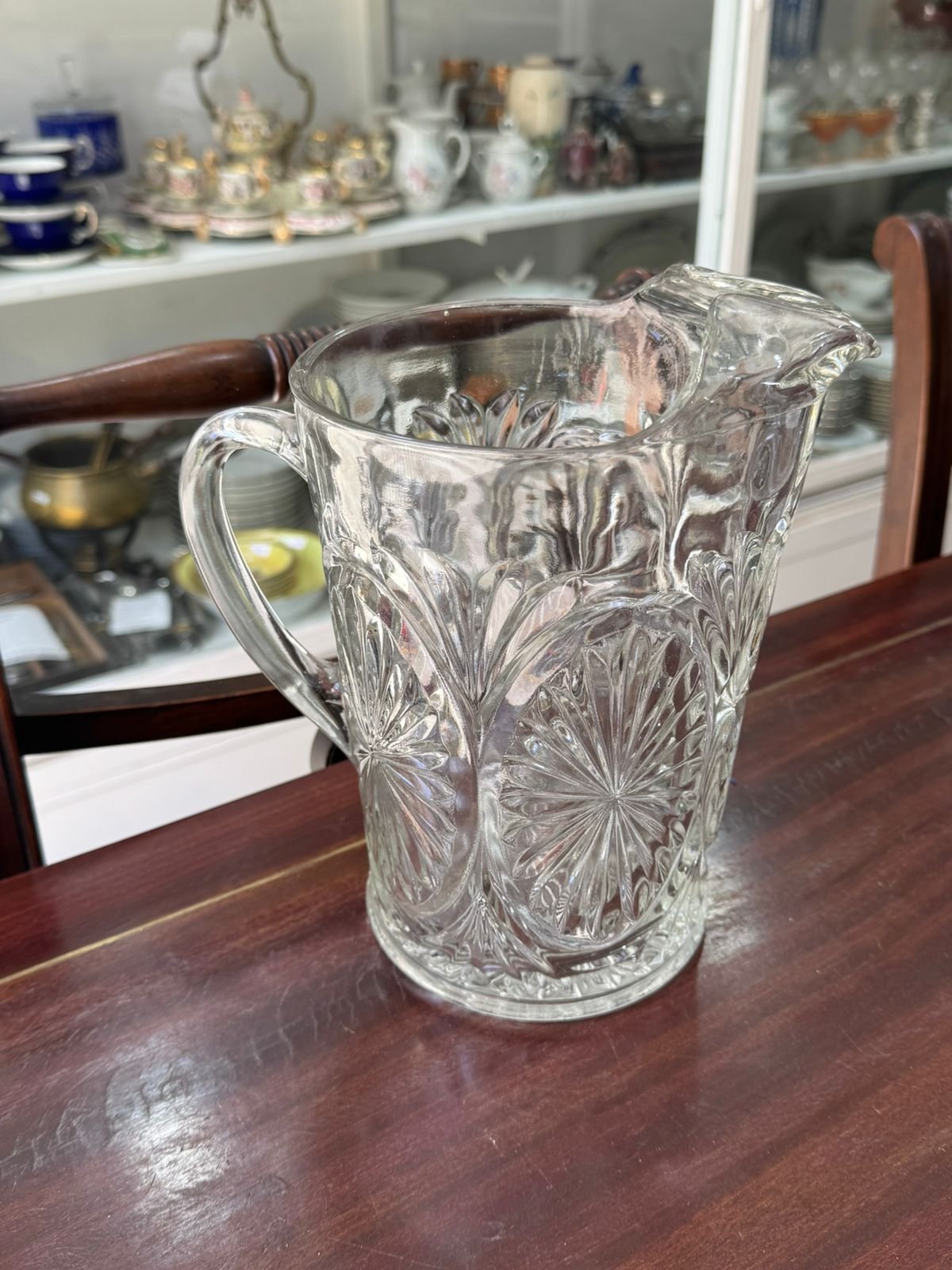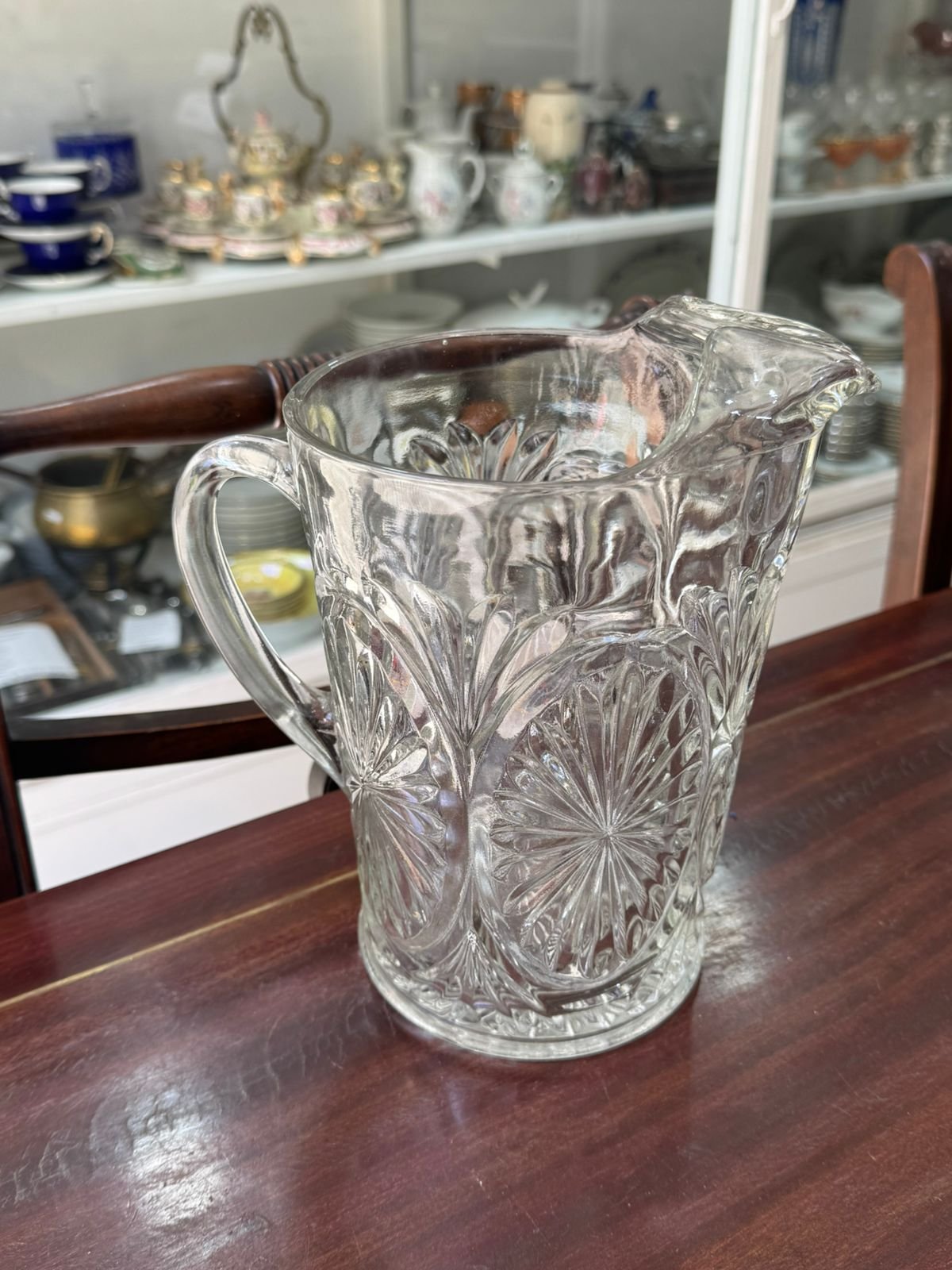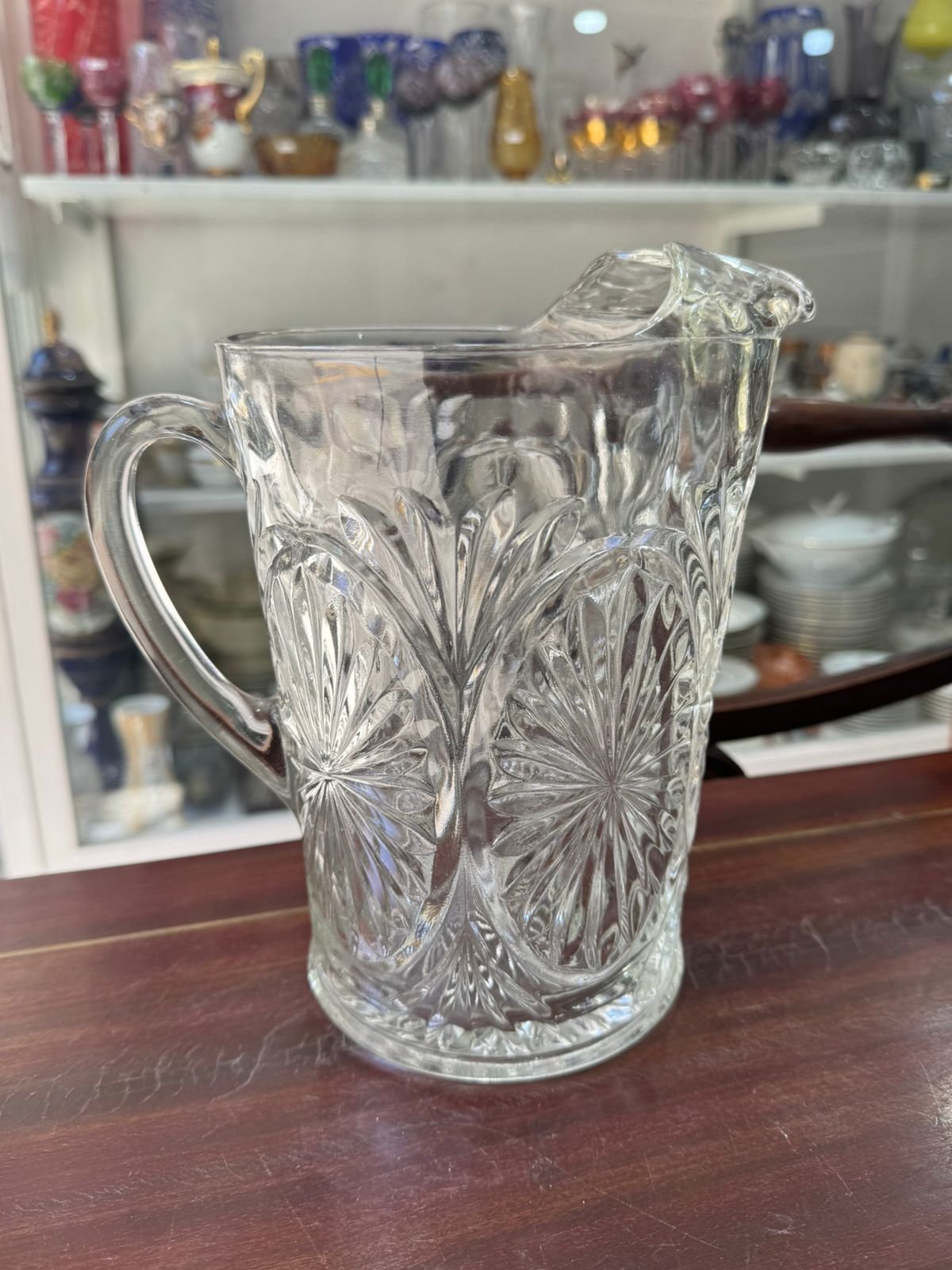 Jarra de vidrio tallado con pico vertedor