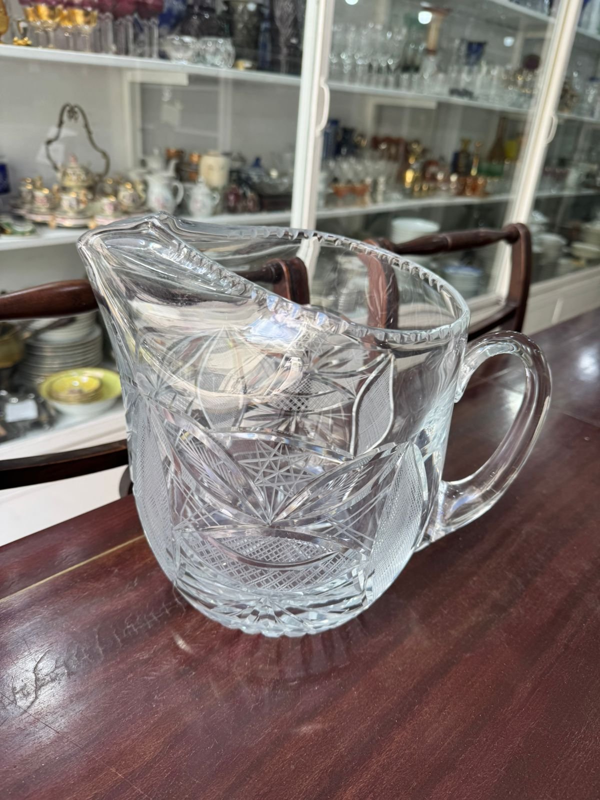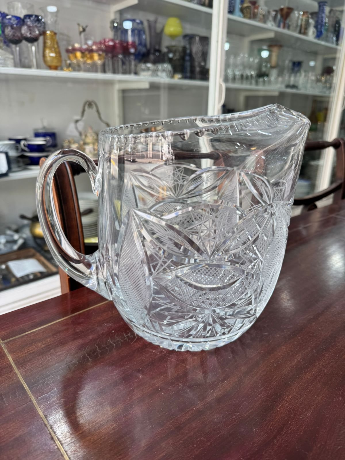 Jarra grande de cristal súper tallado con pico vertedor
