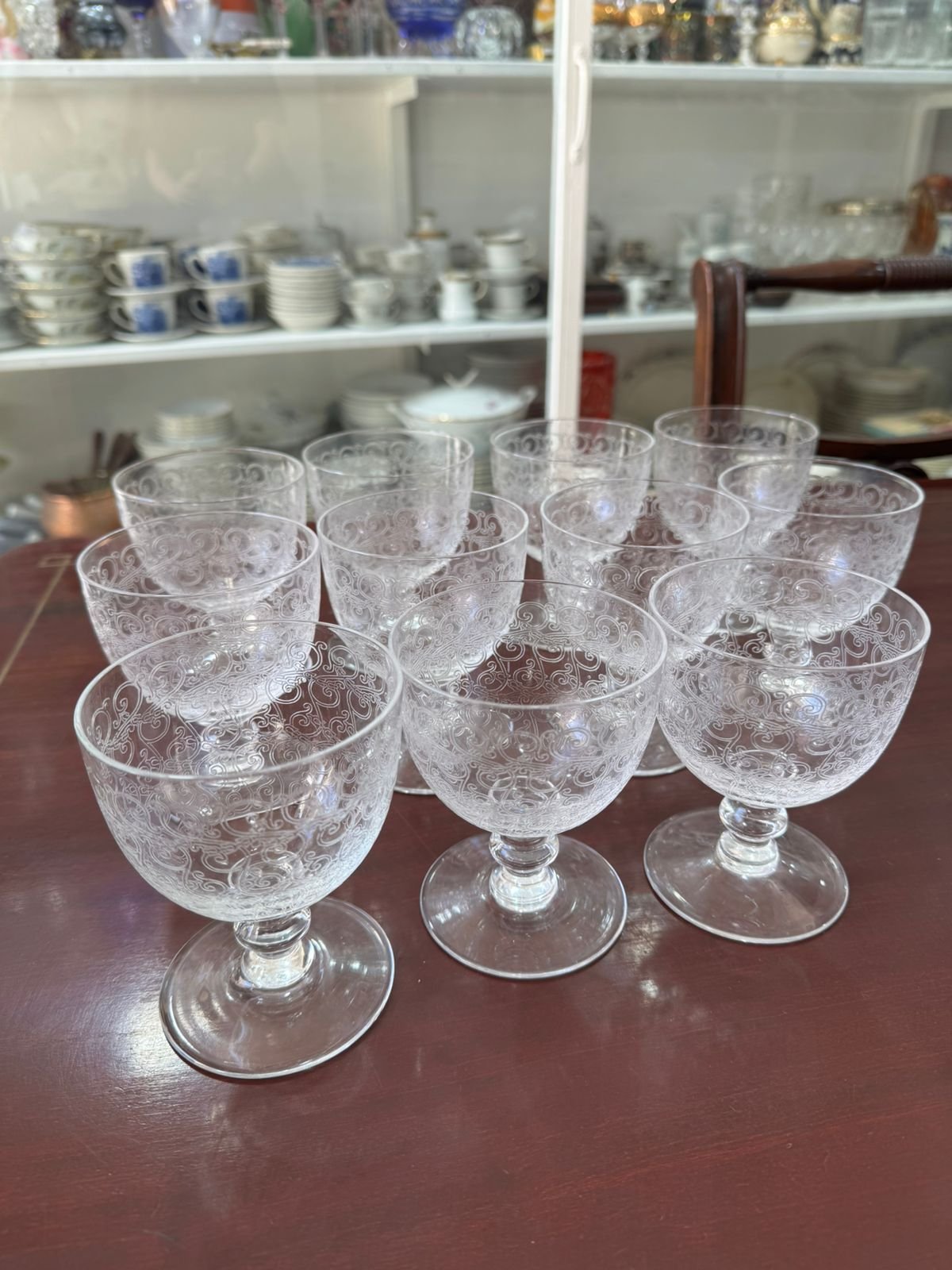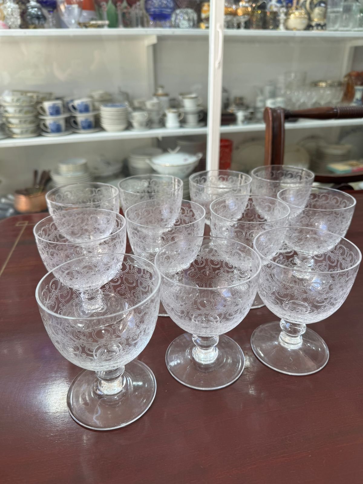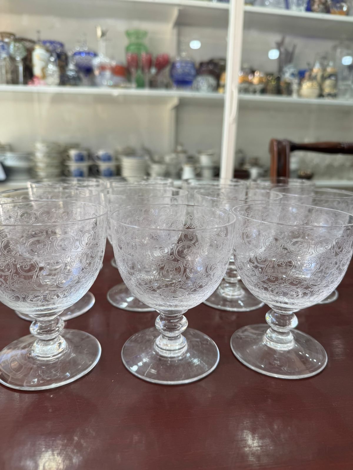 Juego de 10 copas para agua o vino cristal grabadas al acido