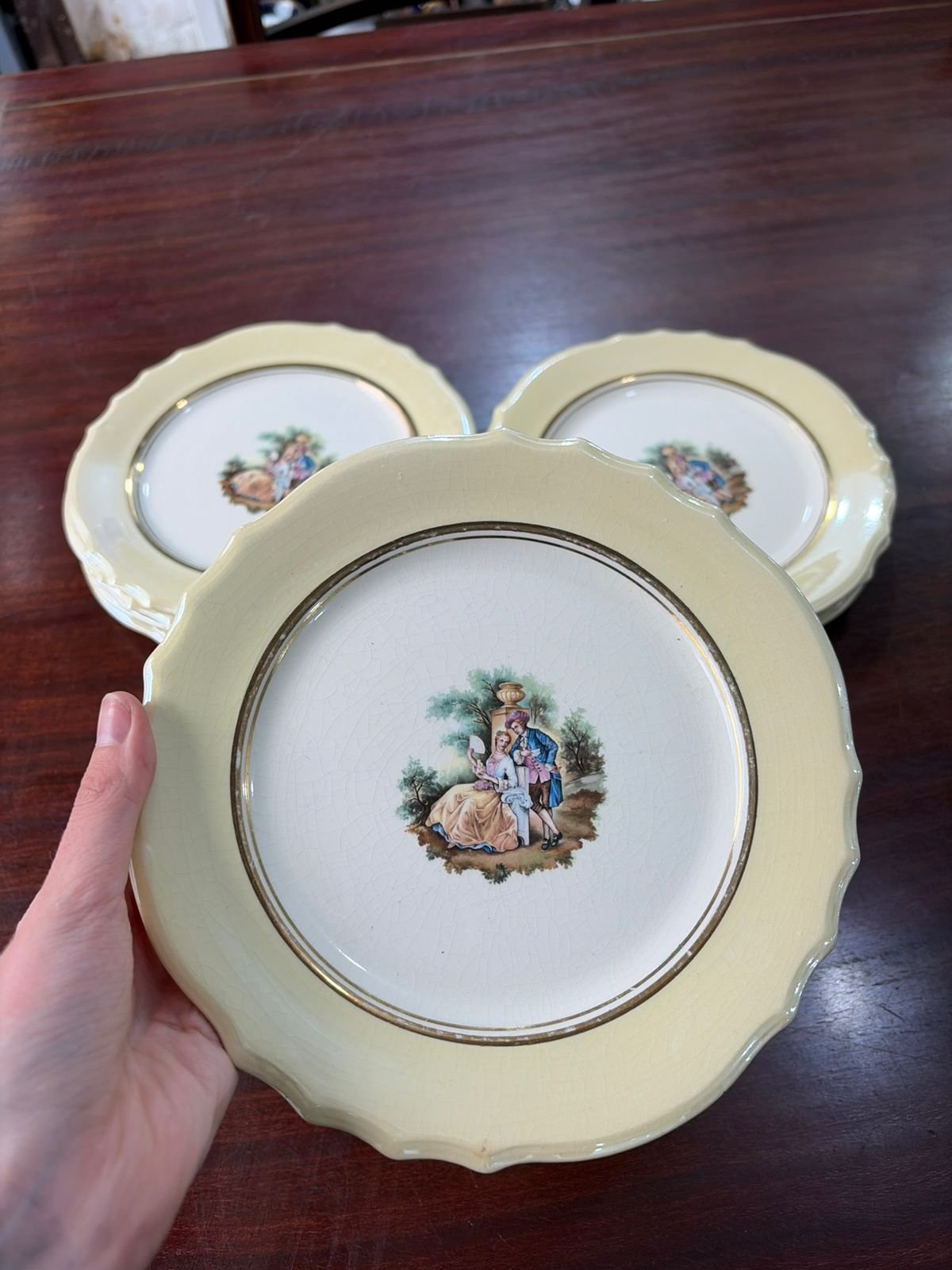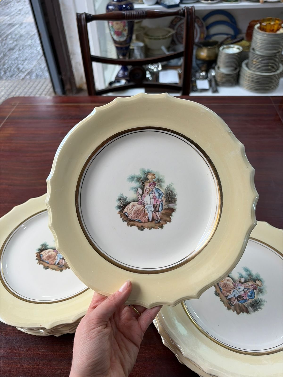 Sé el primero en valorar “Juego de 10 platos de postre con escena galante”