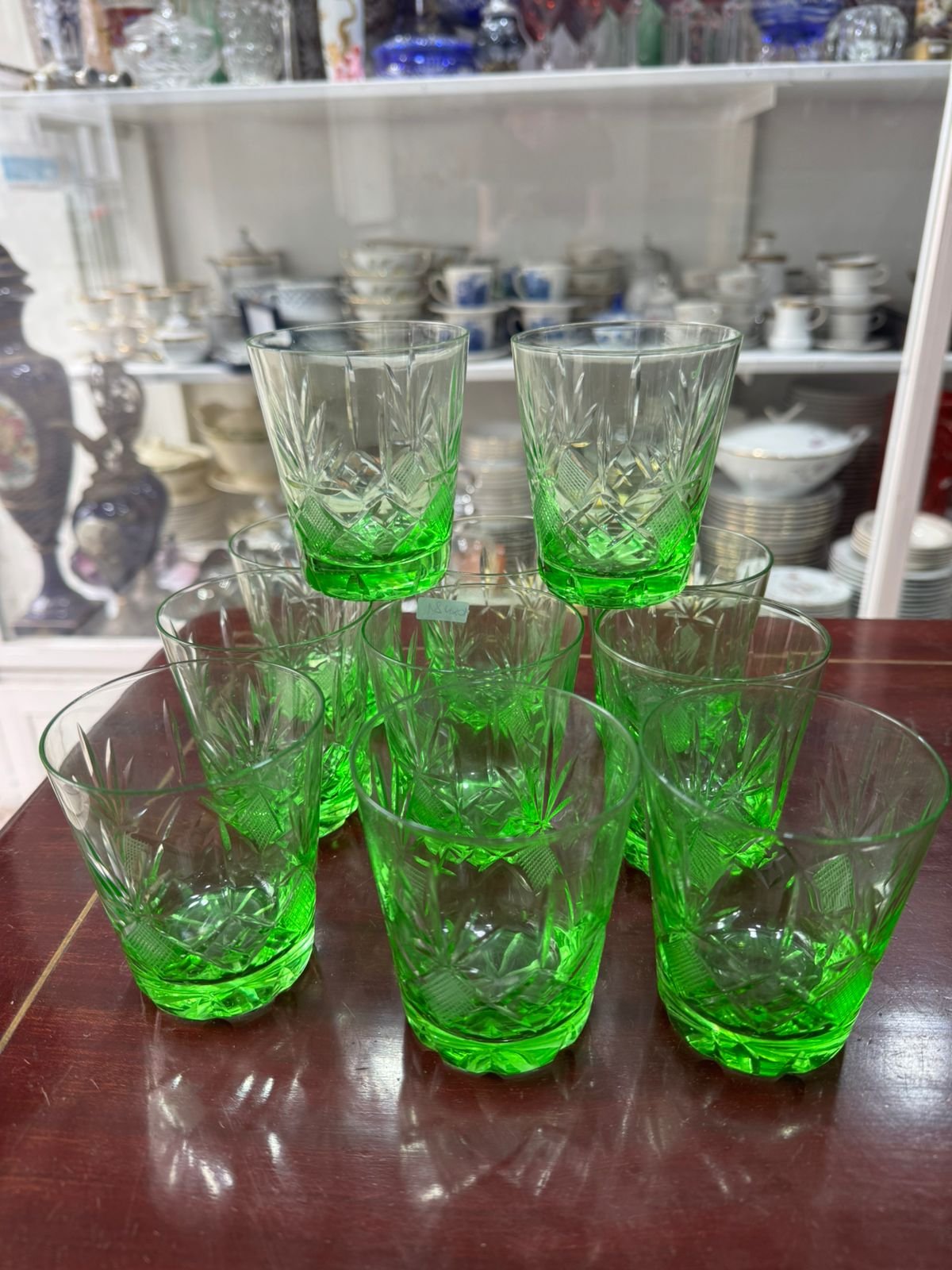 Juego de 10 vasos de cristal súper tallado verde