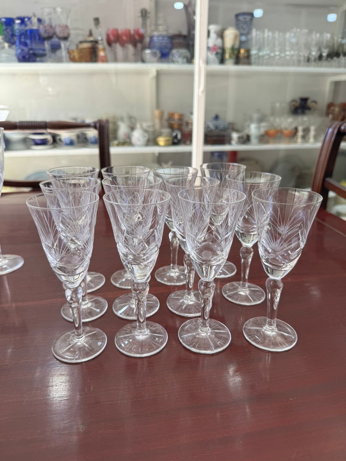 Juego de 12 copas de cristal súper tallado para oporto o licor