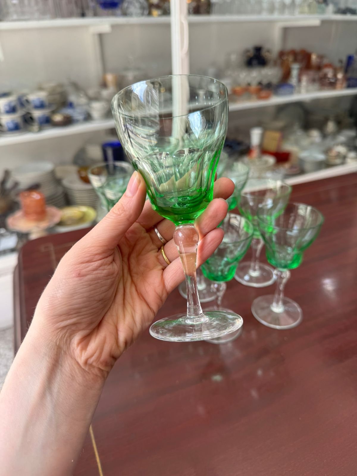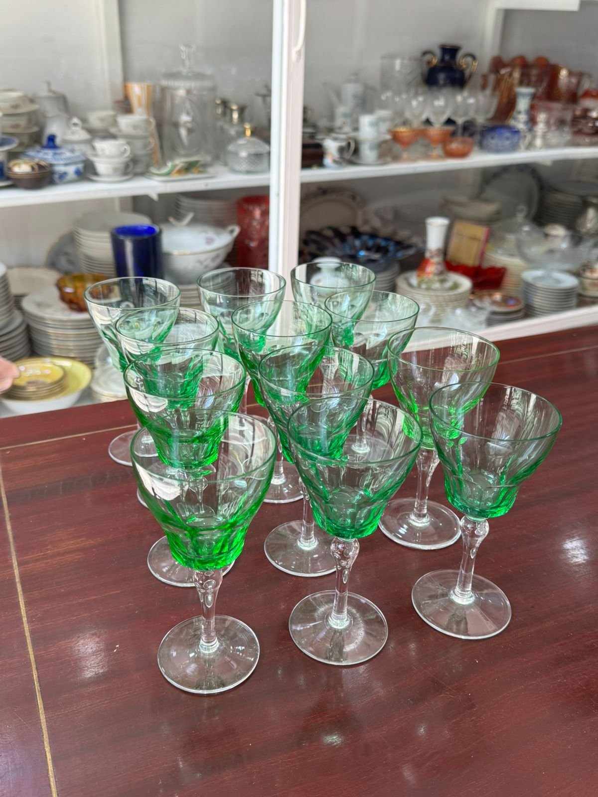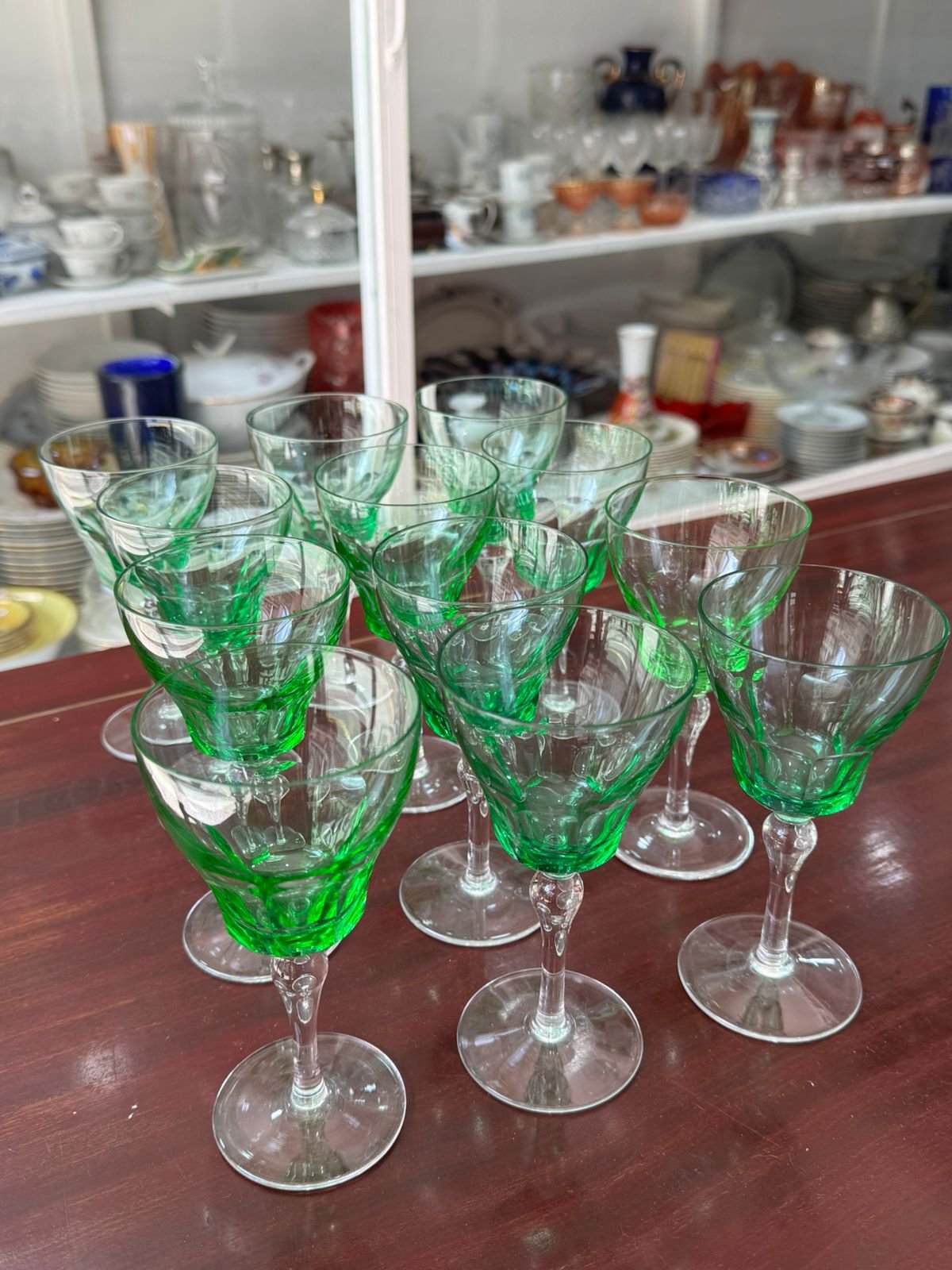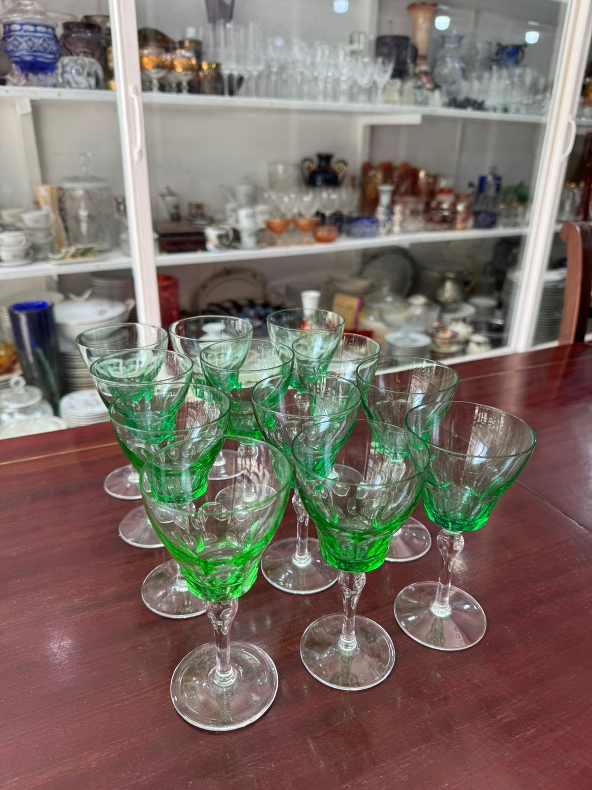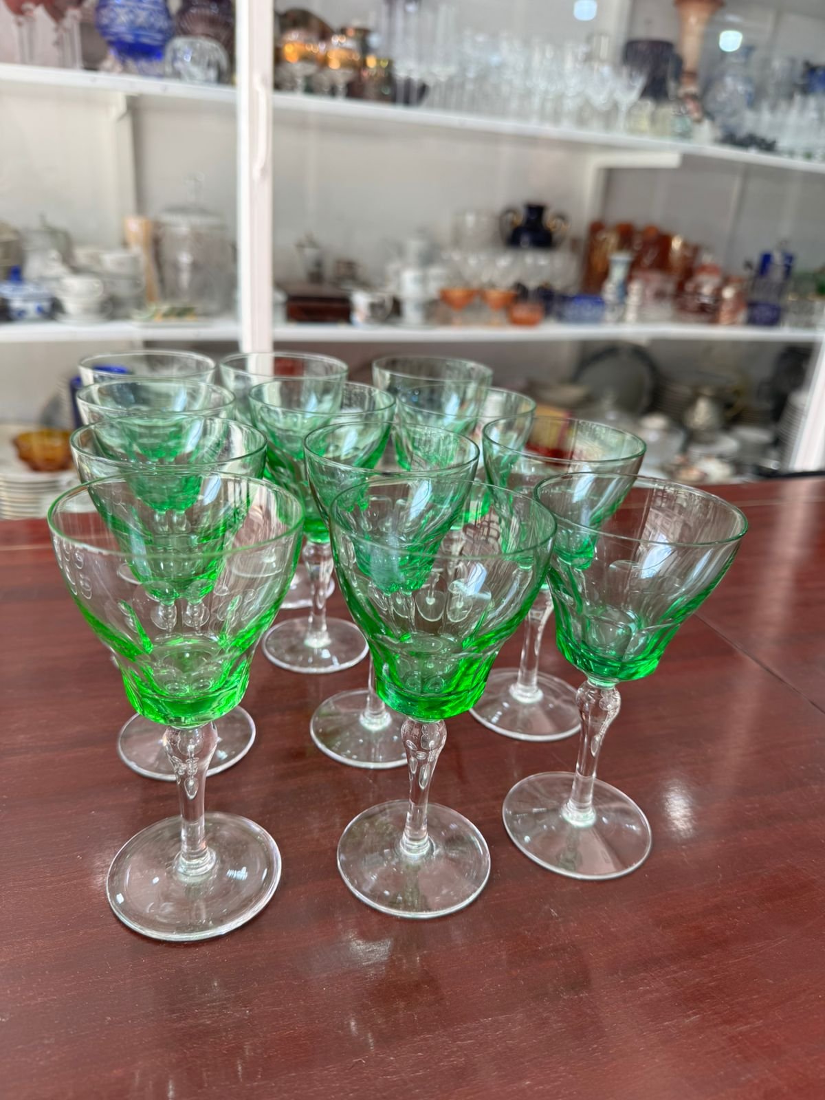 Juego de 12 copas verdes de cristal