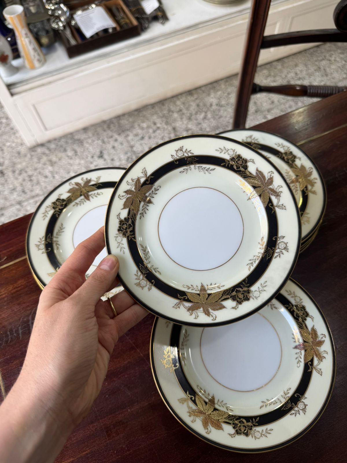 Juego de 12 platos de pan porcelana japonesa pintada a mano con oro