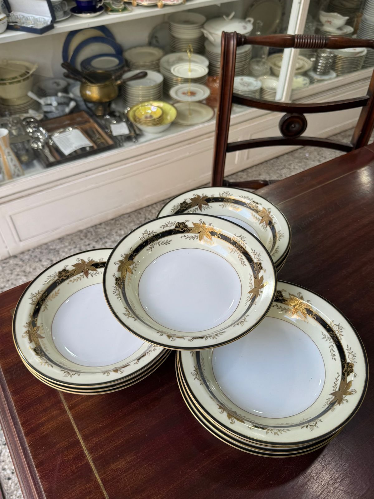 Juego de 12 platos hondos porcelana japonesa pintada a mano con oro