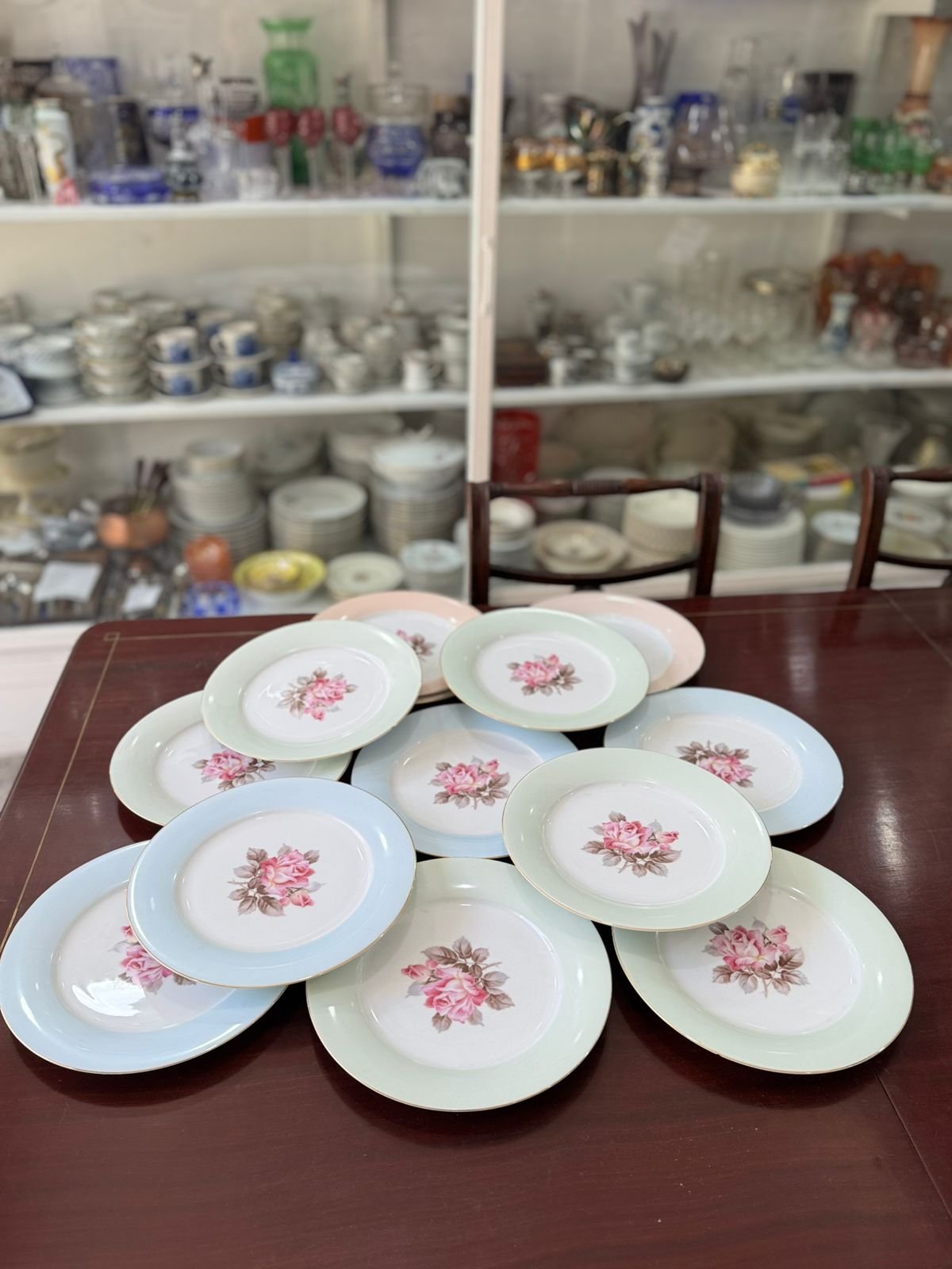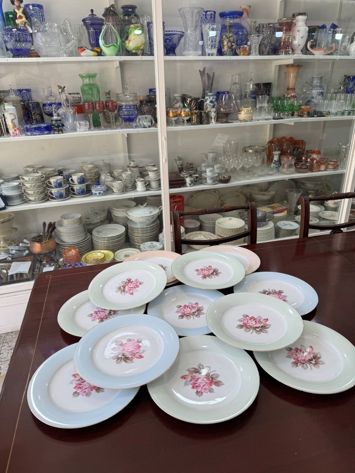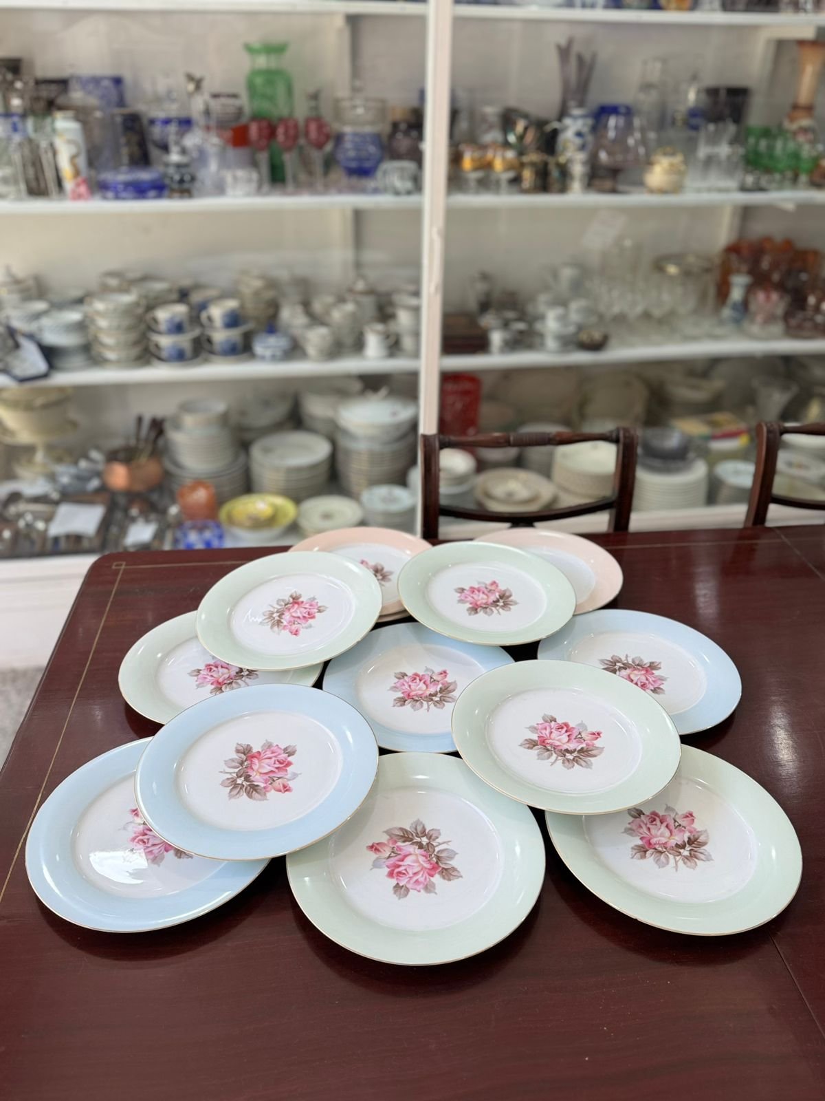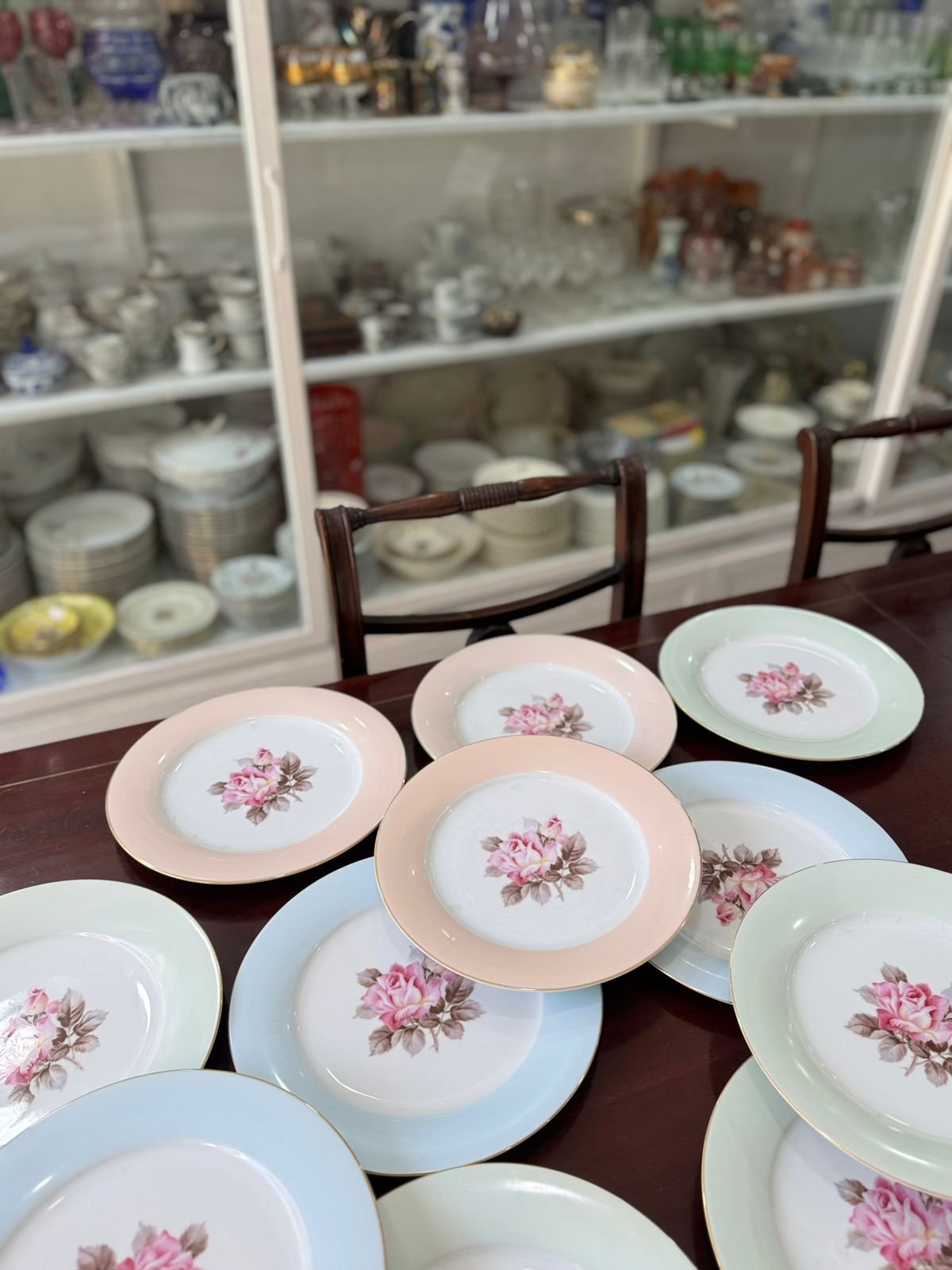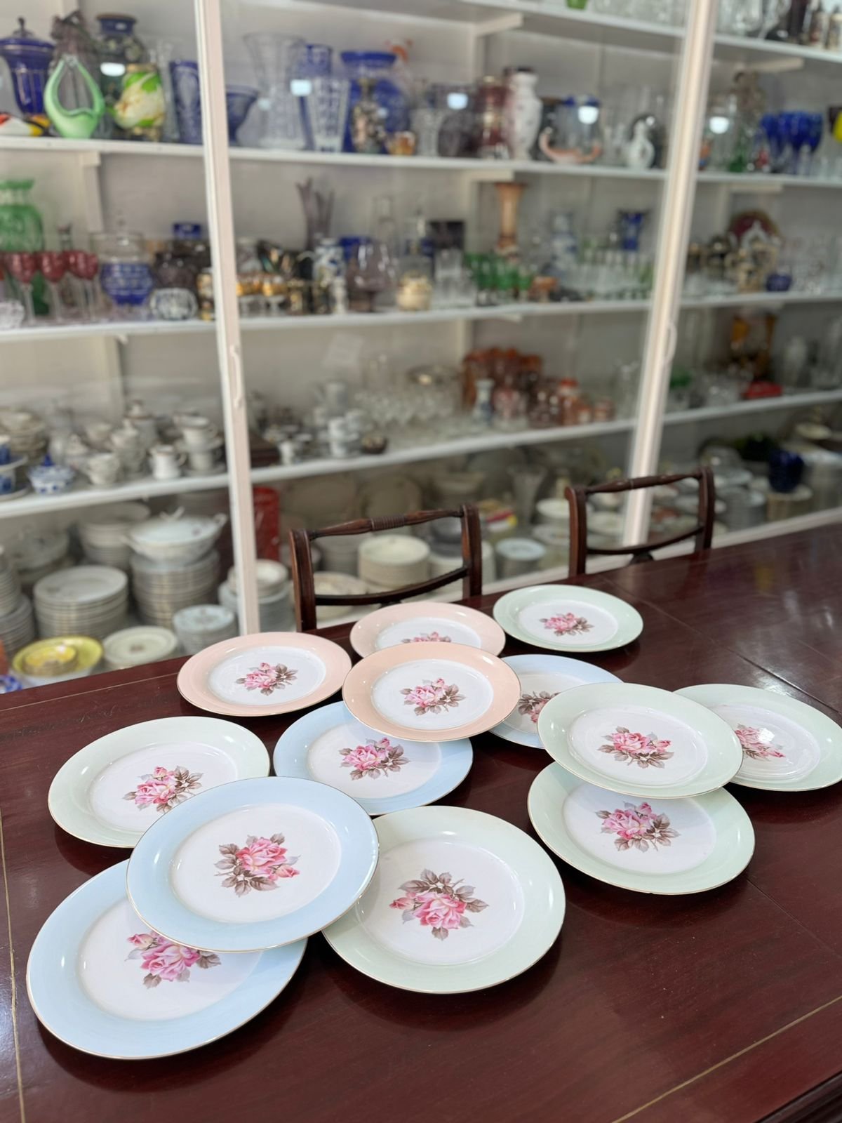 Juego de 12 platos playos porcelana de distintos colores