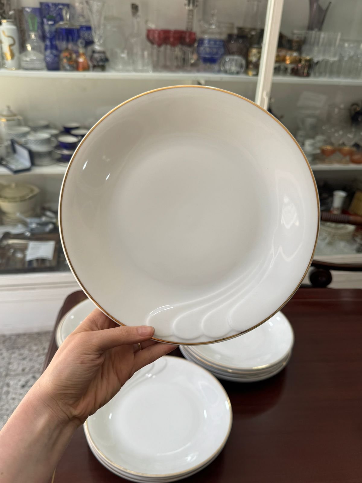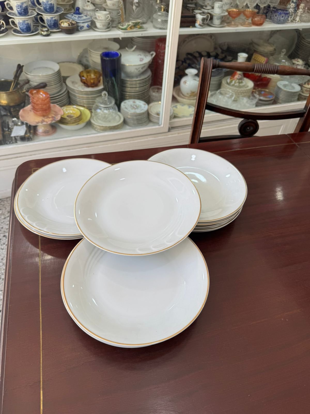 Juego de 12 platos playos porcelana polaca con guarda en oro