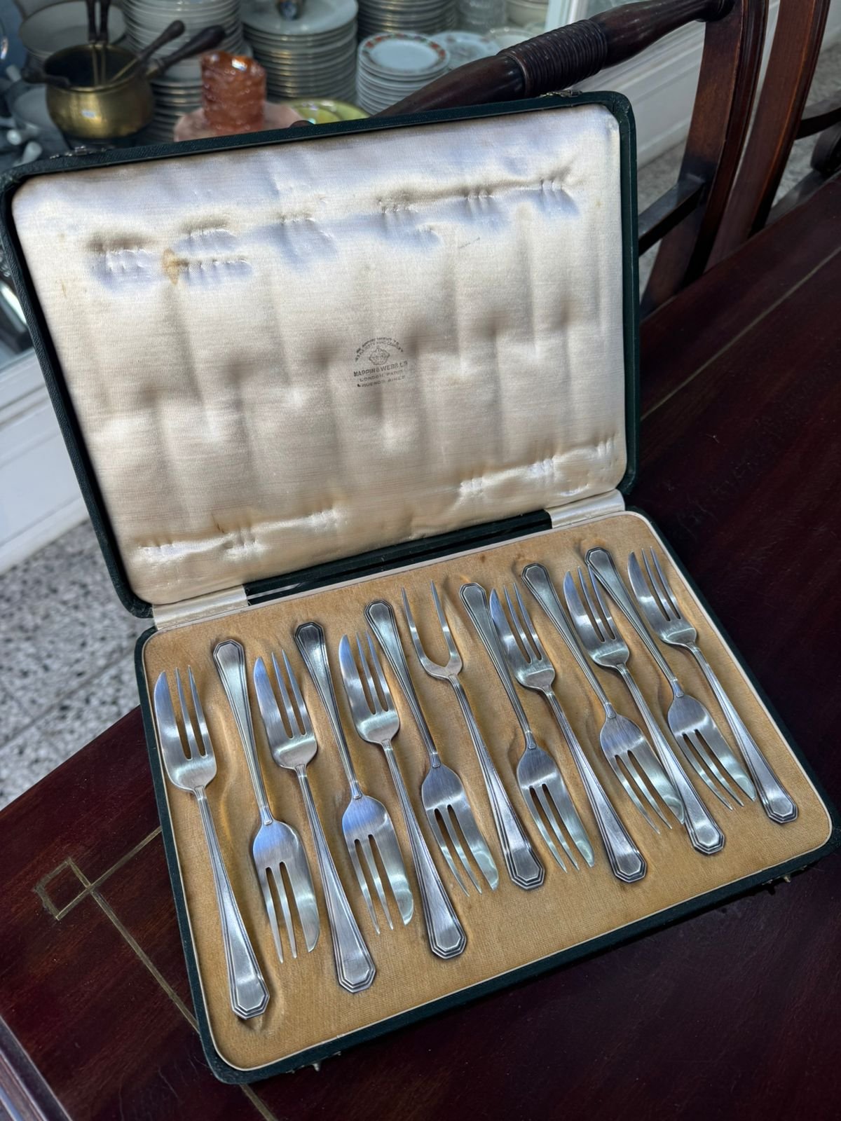 Juego de 12 tenedores de postre y tenedor de servir MAPPIN WEB “prince plate”