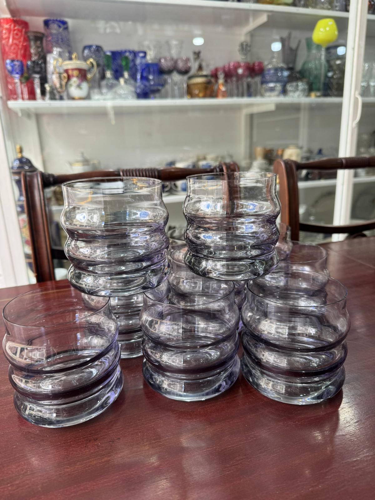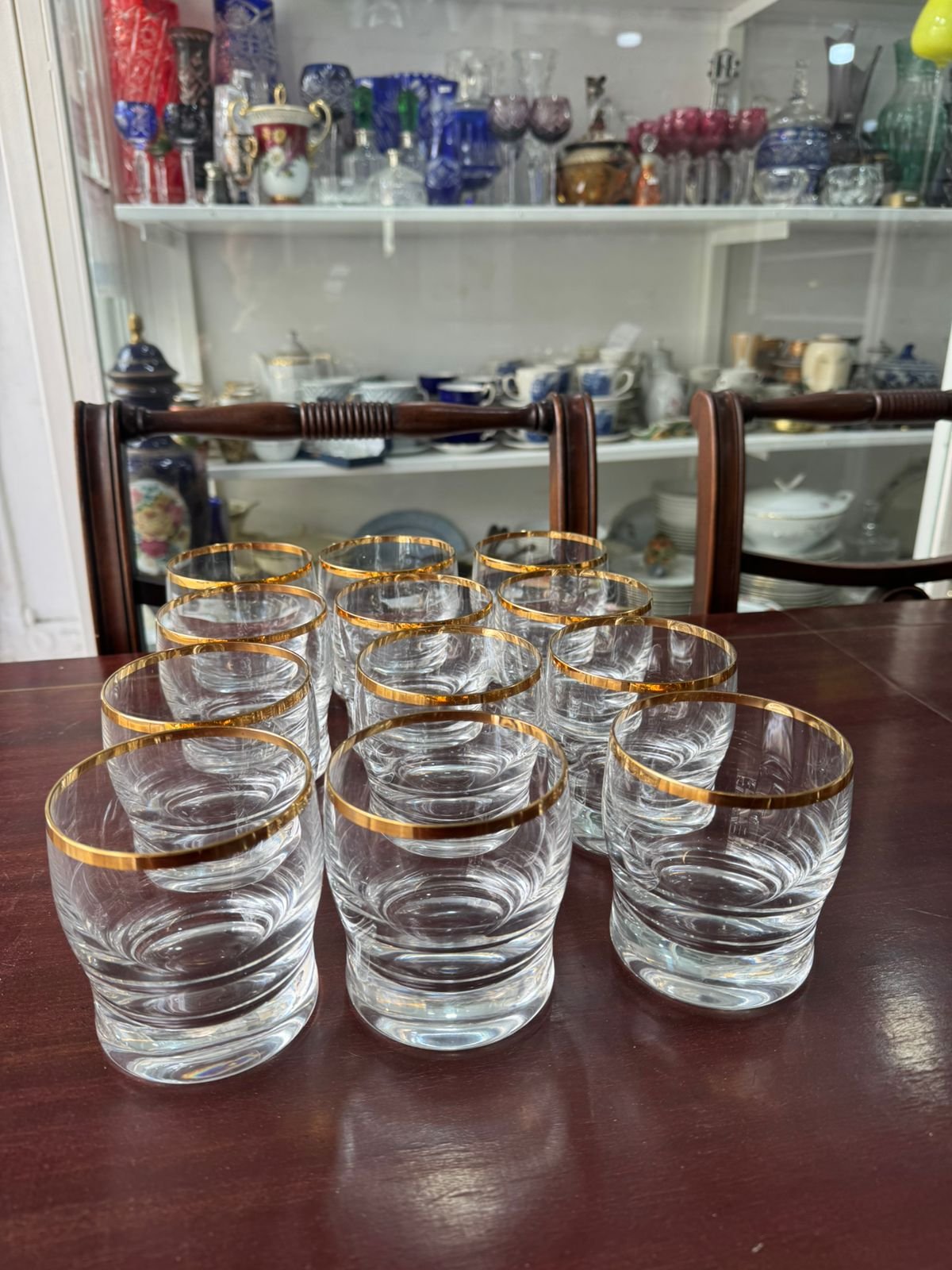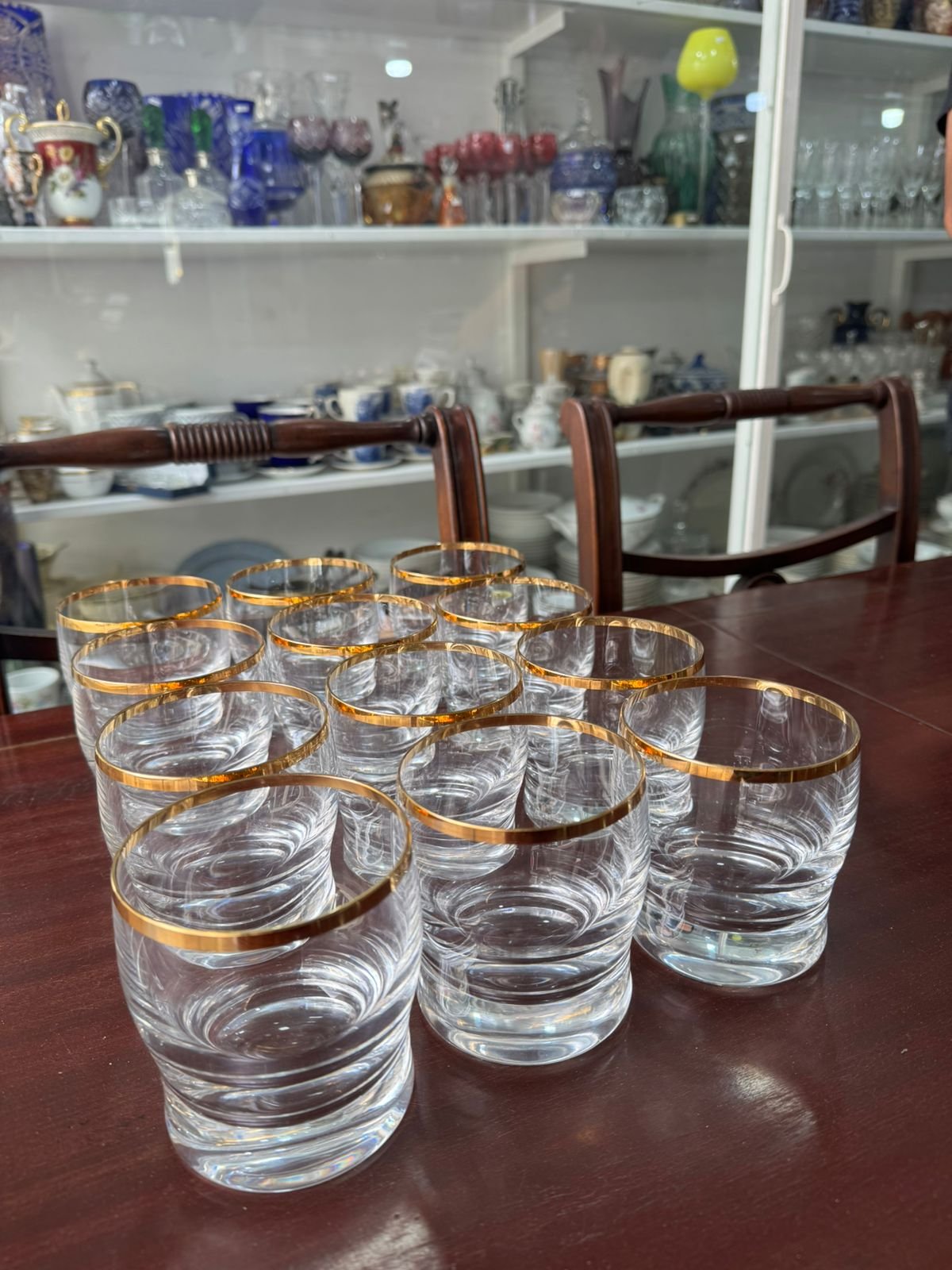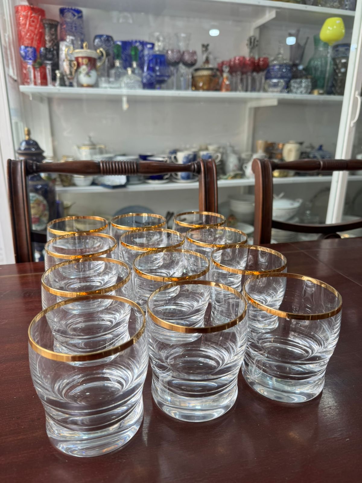 Juego de 12 vasos de cristal de diseño con guarda en oro