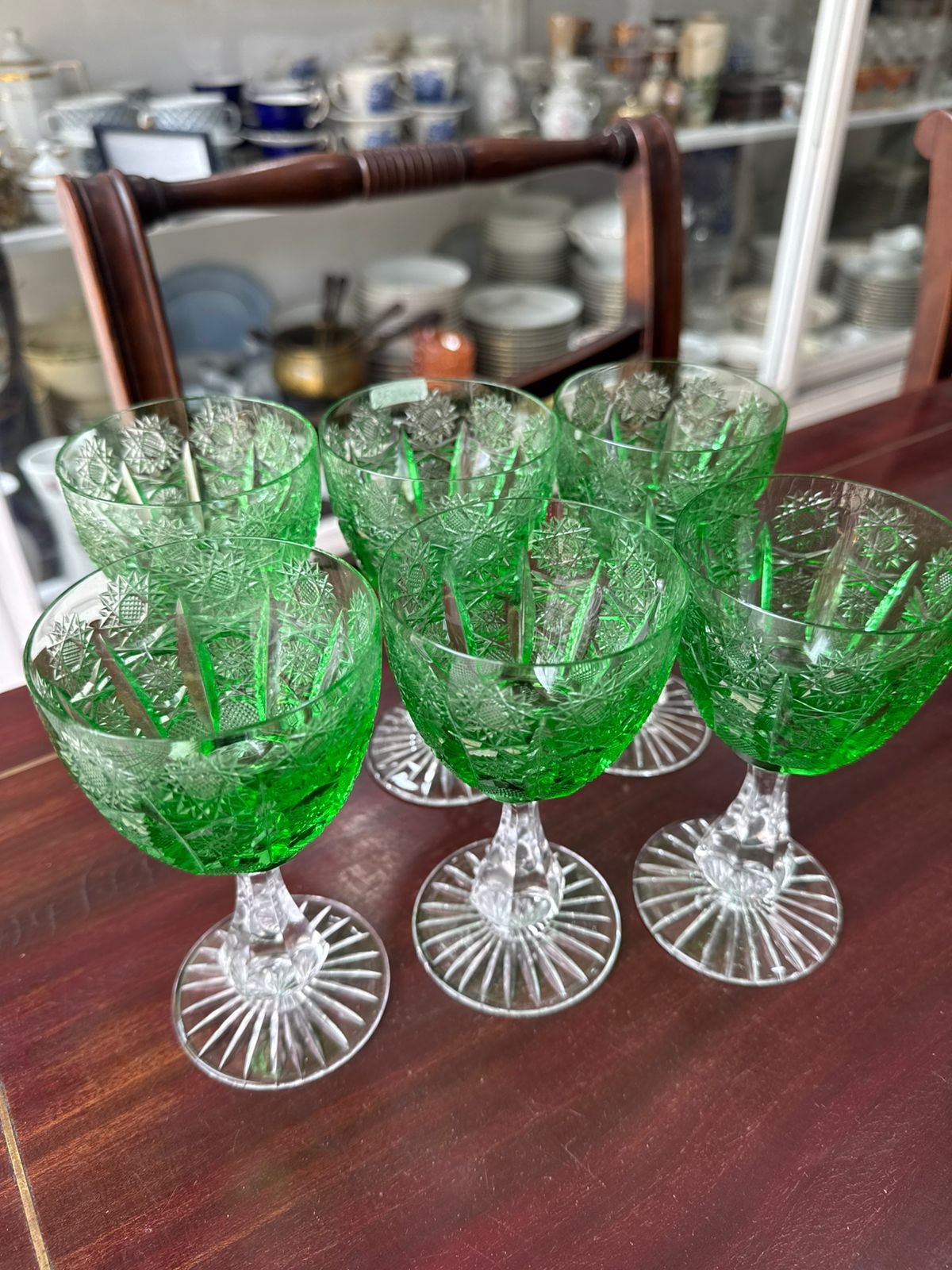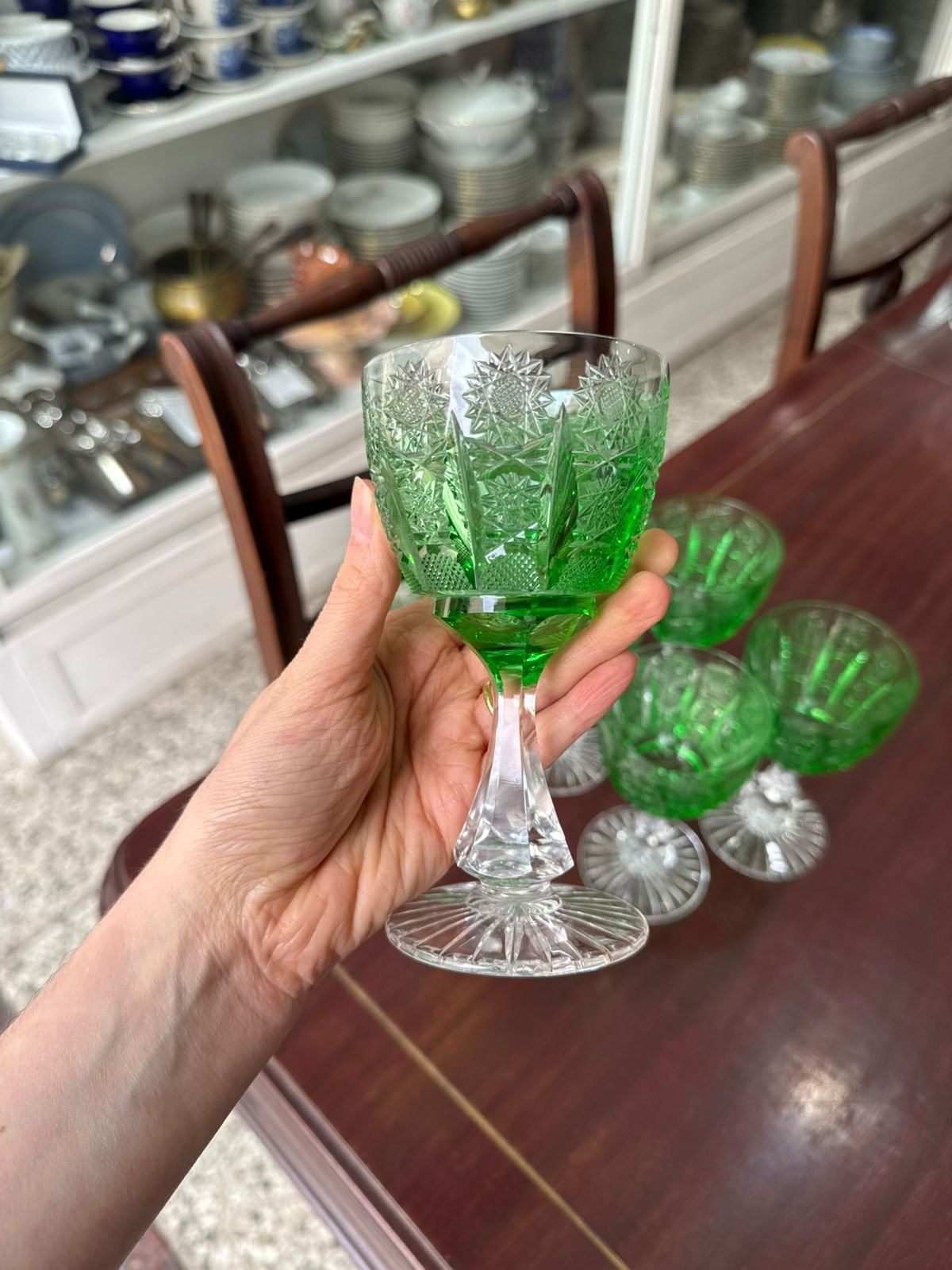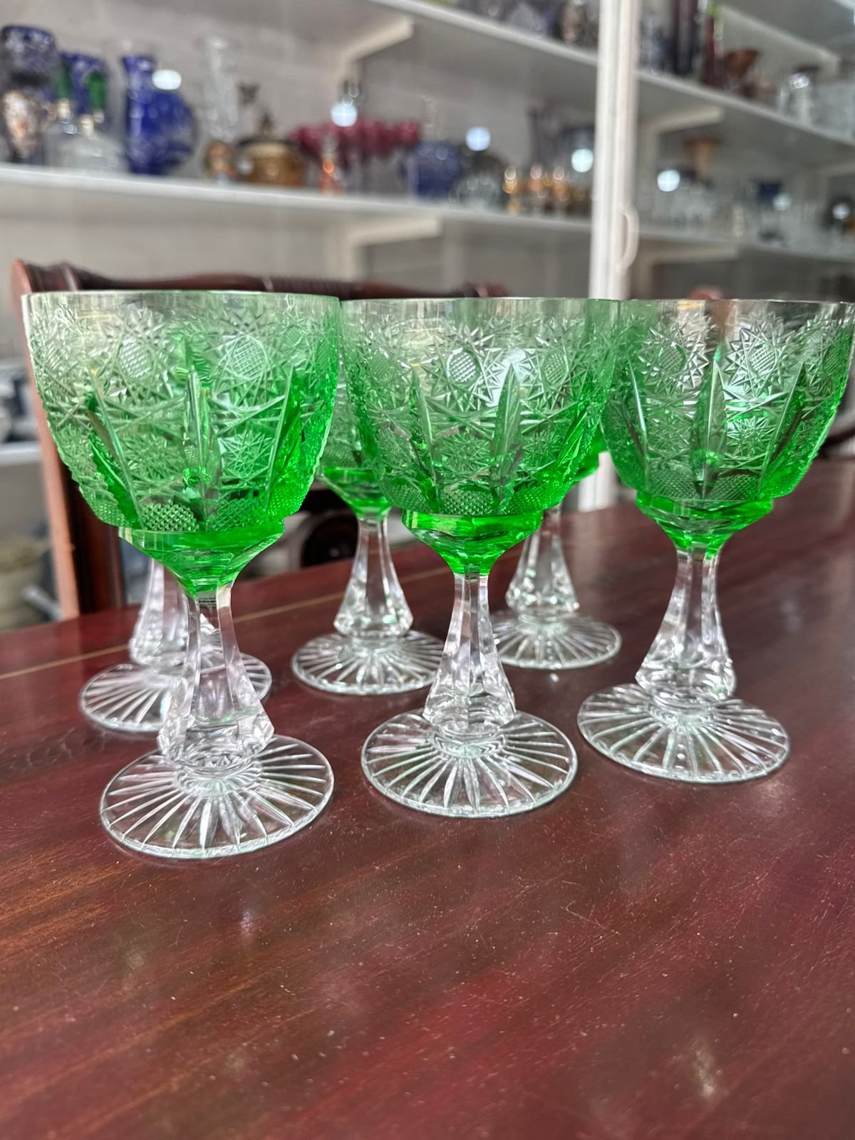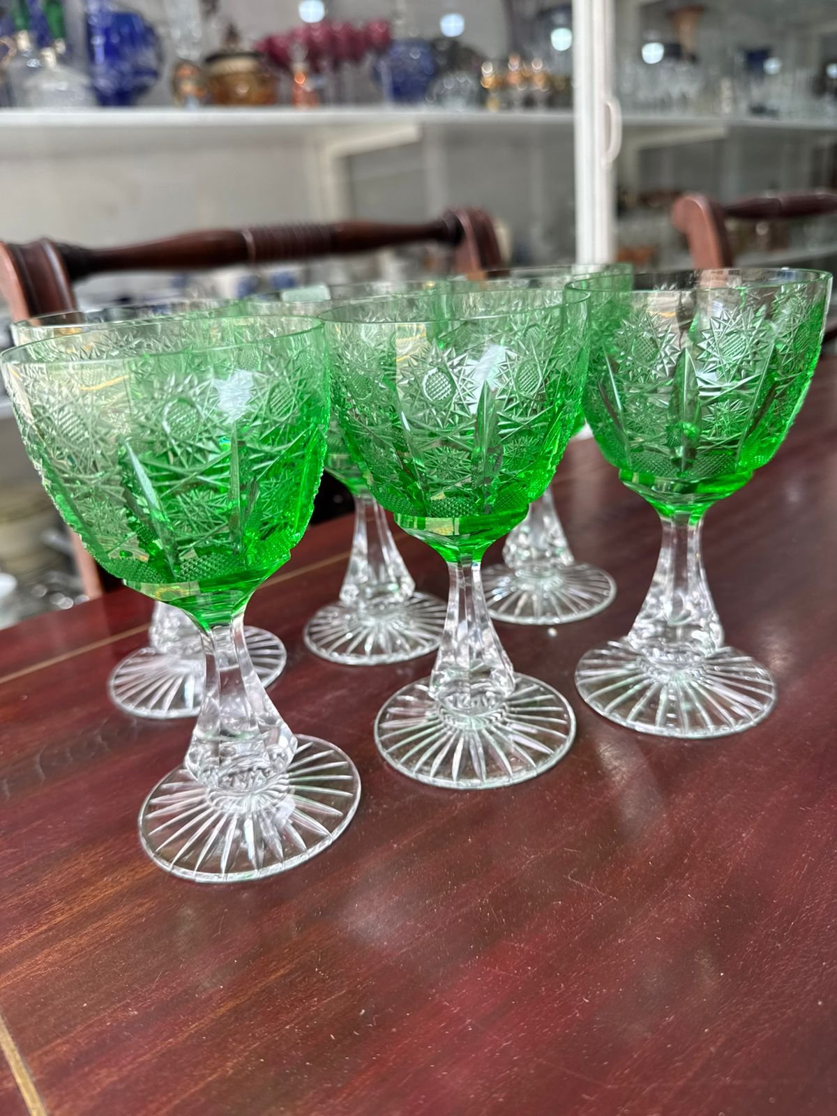 Juego de 6 copas verde cristal súper tallado estilo BACCARAT para vino