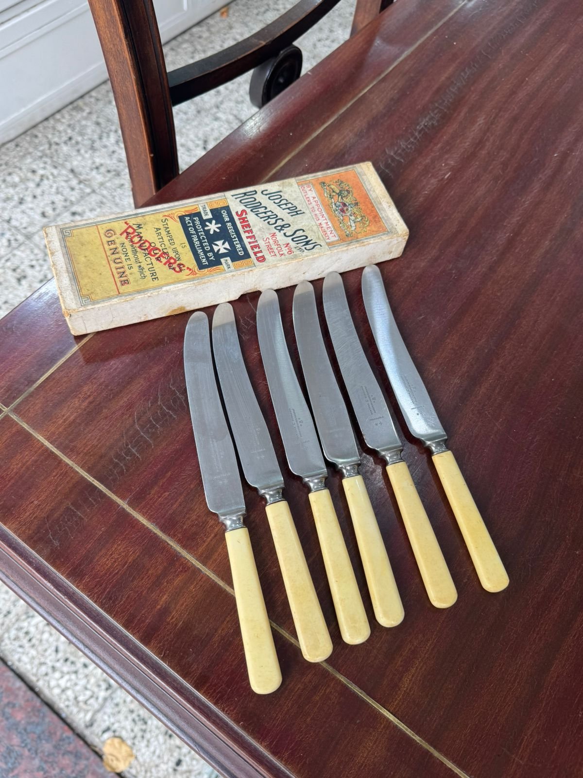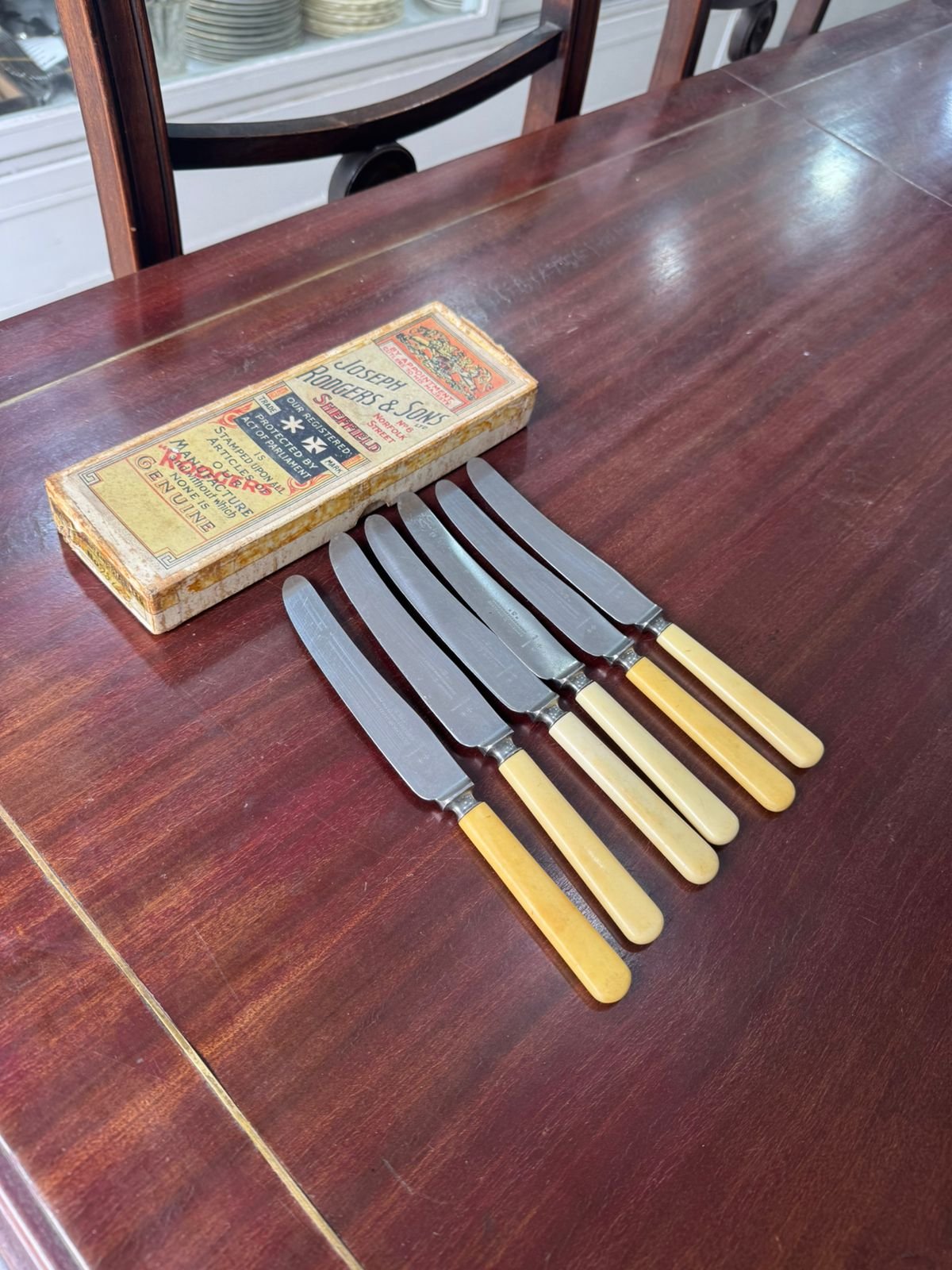 Juego de 6 cuchillos postre ingleses SHEFFIELD en caja