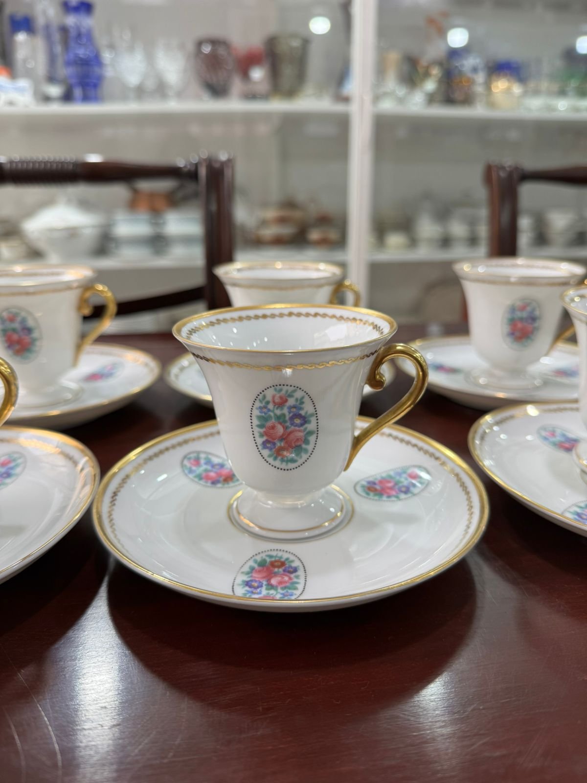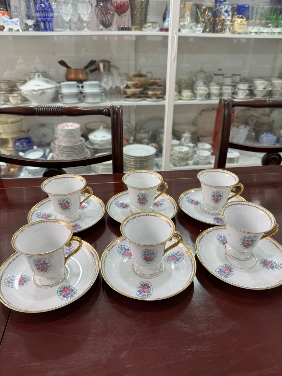 Juego de 6 dúos de porcelana checoslovaca para chocolate