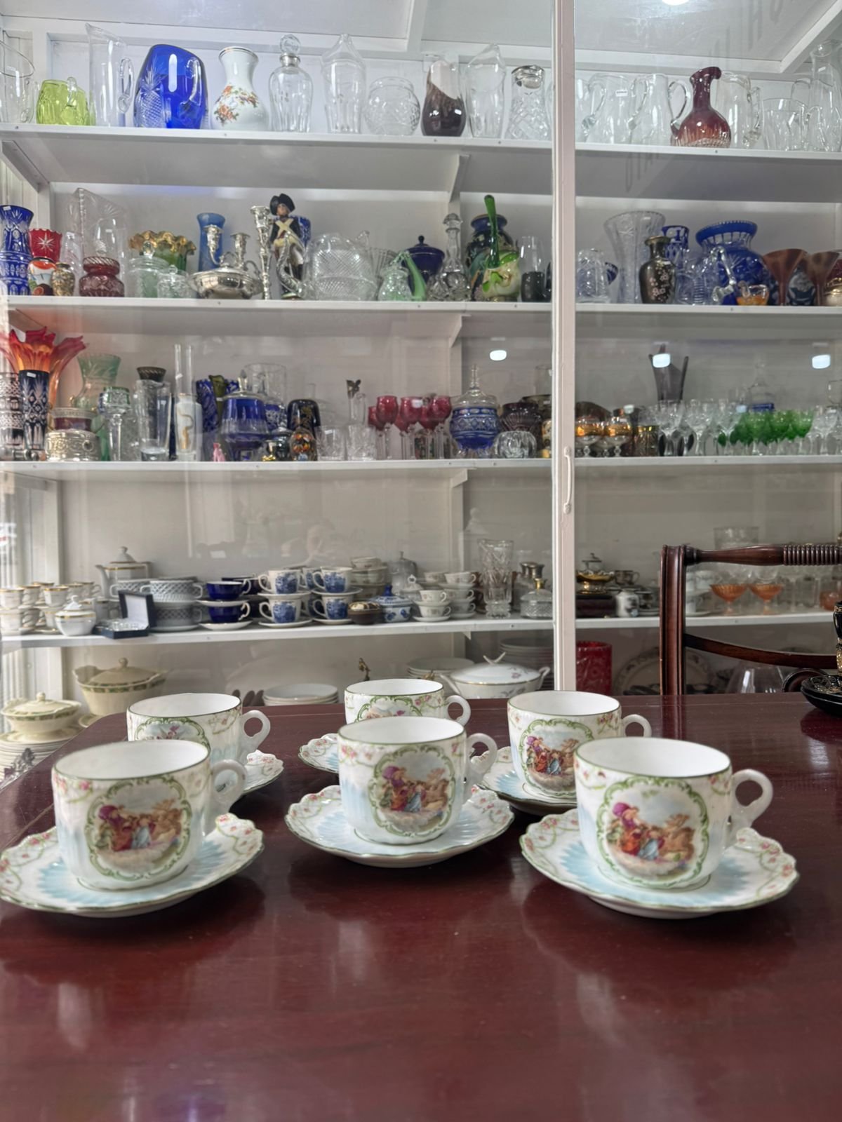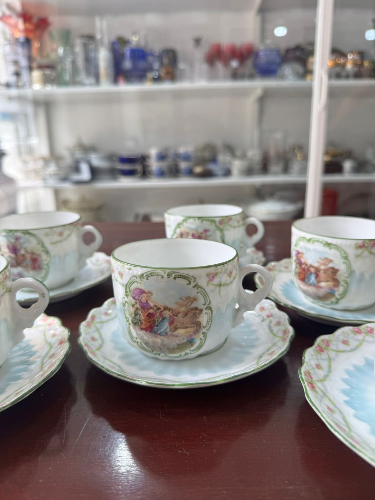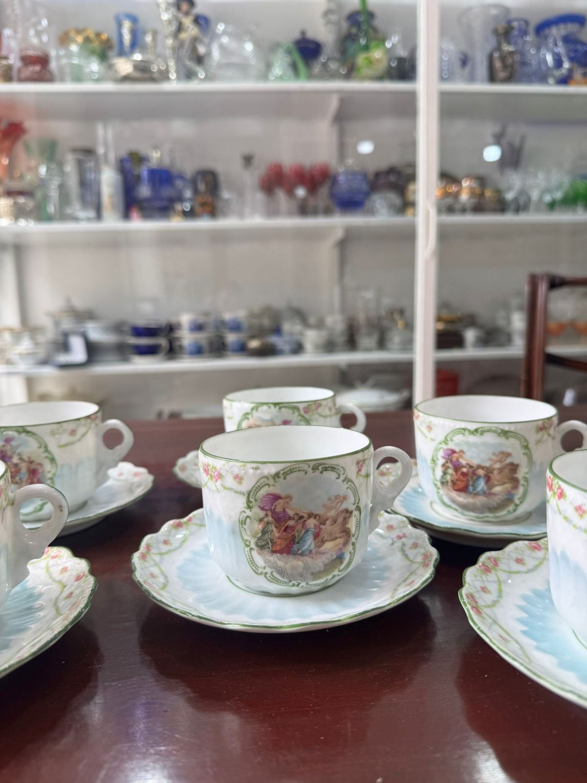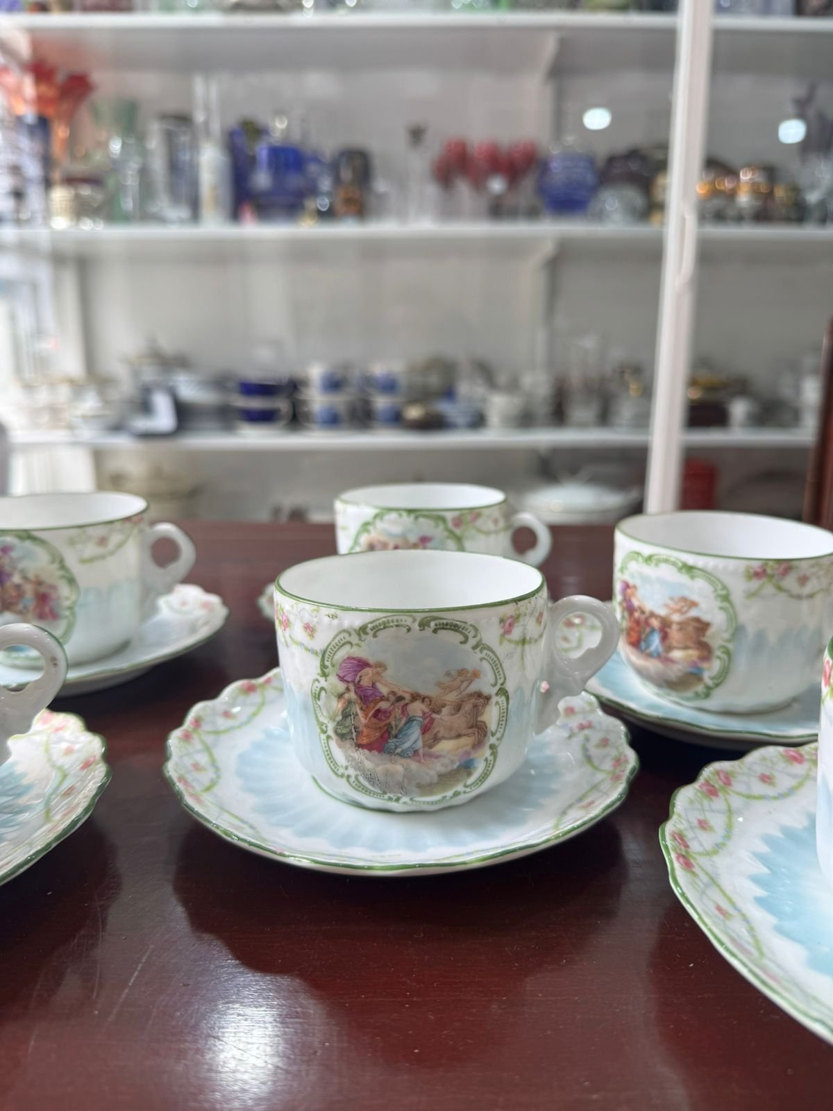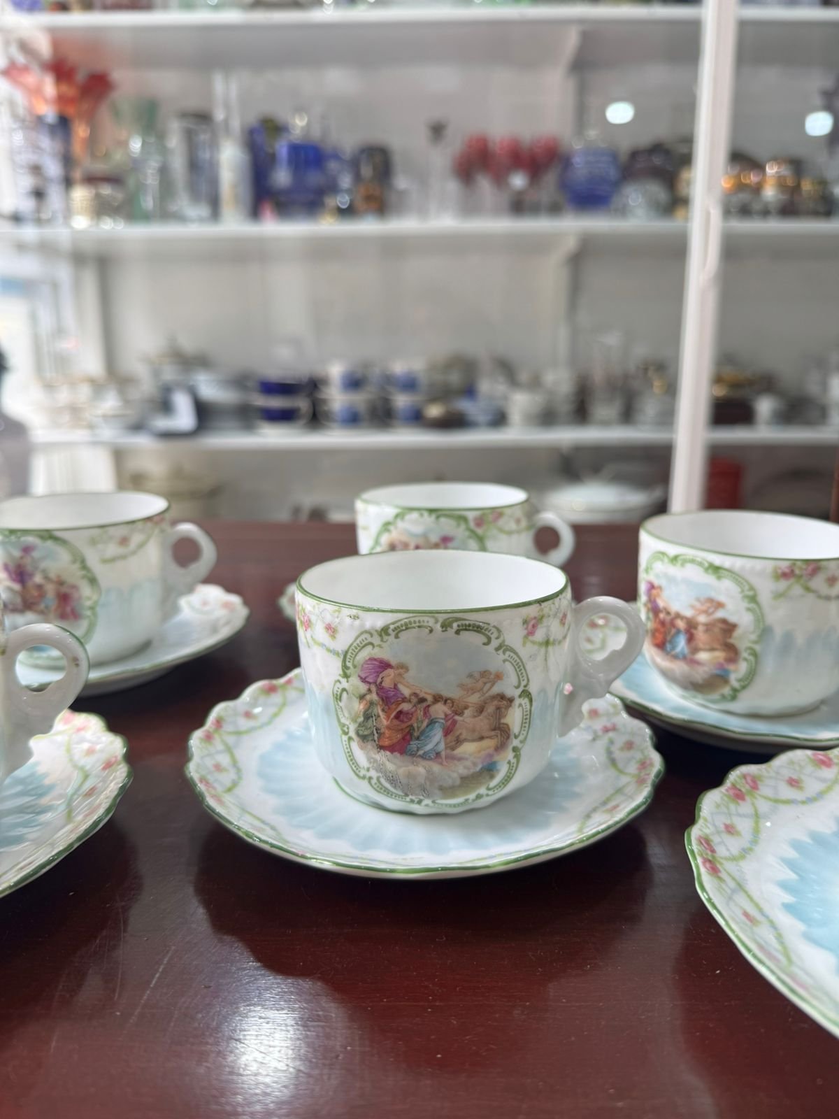 Juego de 6 dúos de té porcelana con escenas victorianas